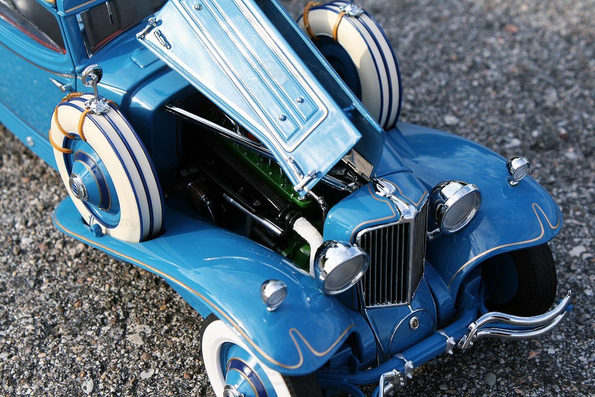 The original of the 1/16-scale miniature model described in this text, made by Danbury Mint, is the famous Cord L-29 Special Coupe. This model has its origins in the late 1920s, specifically in 1929. The Cord L-29 Special Coupe was a trailblazer of its time as it was one of the first American production cars with front-wheel drive. The Cord Corporation automaker was founded by Errett Lobban Cord, and the L-29 was one of his outstanding innovations. Cord seized the opportunity to develop a vehicle that was not only stylish but also technologically advanced.