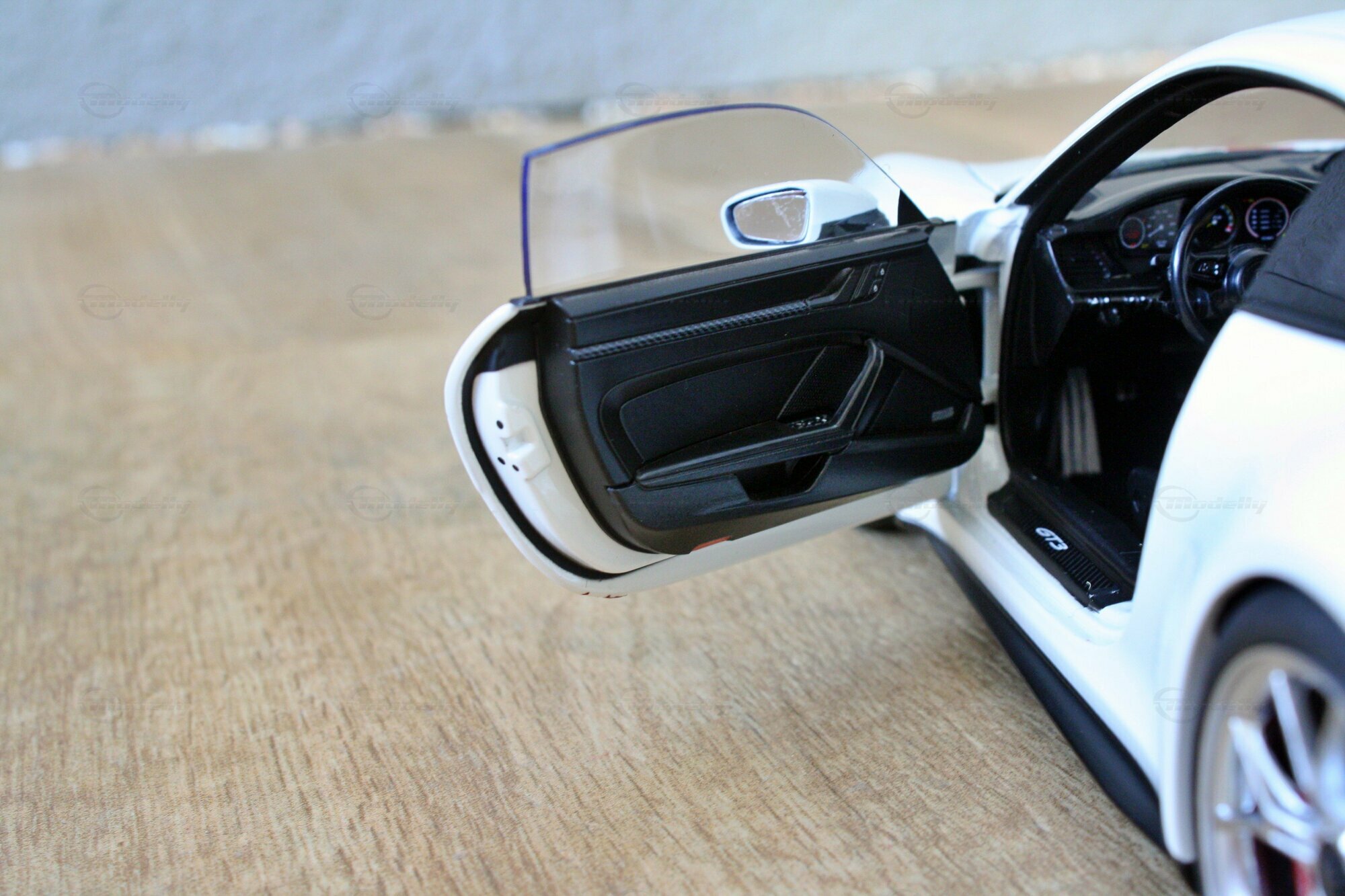 The model shown here in 1/18 scale is a precise replica of the original vehicle crafted by Norev. Particularly striking is the material from which the model is made: Robust diecast ensures a durable and premium feel. The model impressively showcases the details of the original, including the distinctive front bumper and the sporty rear wing. Collecting model car enthusiasts from around the world, like the Modelly user "Play-X," appreciate the intricacies and high accuracy of this replica. The white paint with red accents and the iconic Porsche lettering on the hood make it a standout piece in any collection.