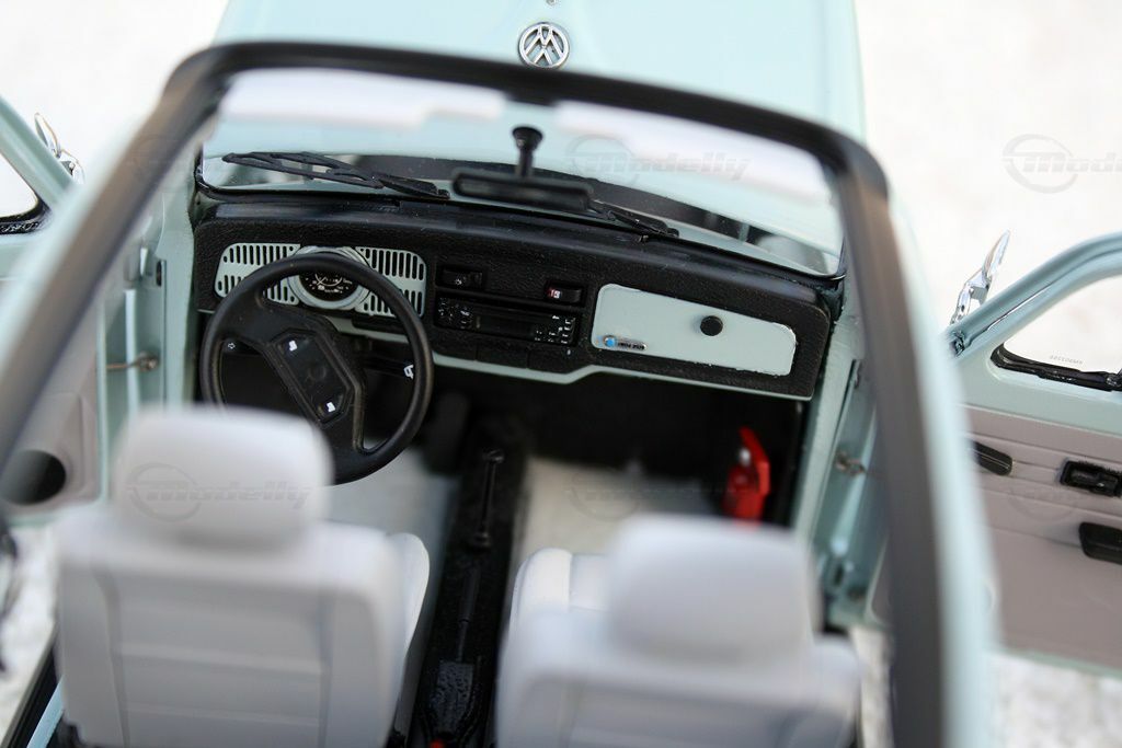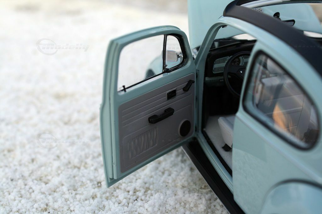 The 1/18 scale model car by Schuco is a precise reproduction of the VW Beetle 1600i Ultima Edition. Made of diecast material, this model car stands out for its attention to detail and high-quality craftsmanship. In the collection of Modelly member "Play-X," this model is a special highlight. It showcases the distinctive features of the Ultima Edition, such as the specific glossy mint green color and classic chrome details. The interior is faithfully replicated, offering insights into the nostalgic equipment of the original.