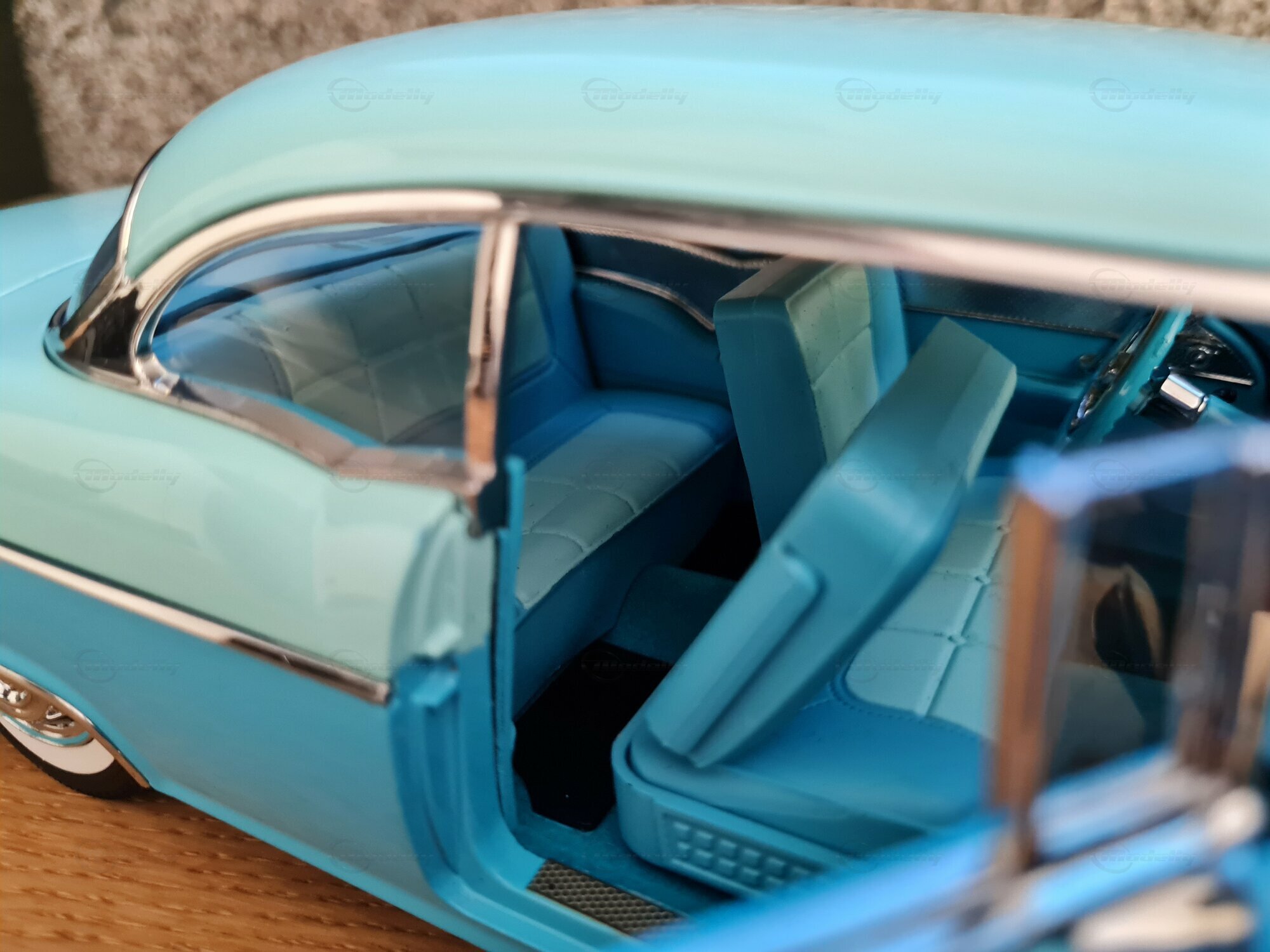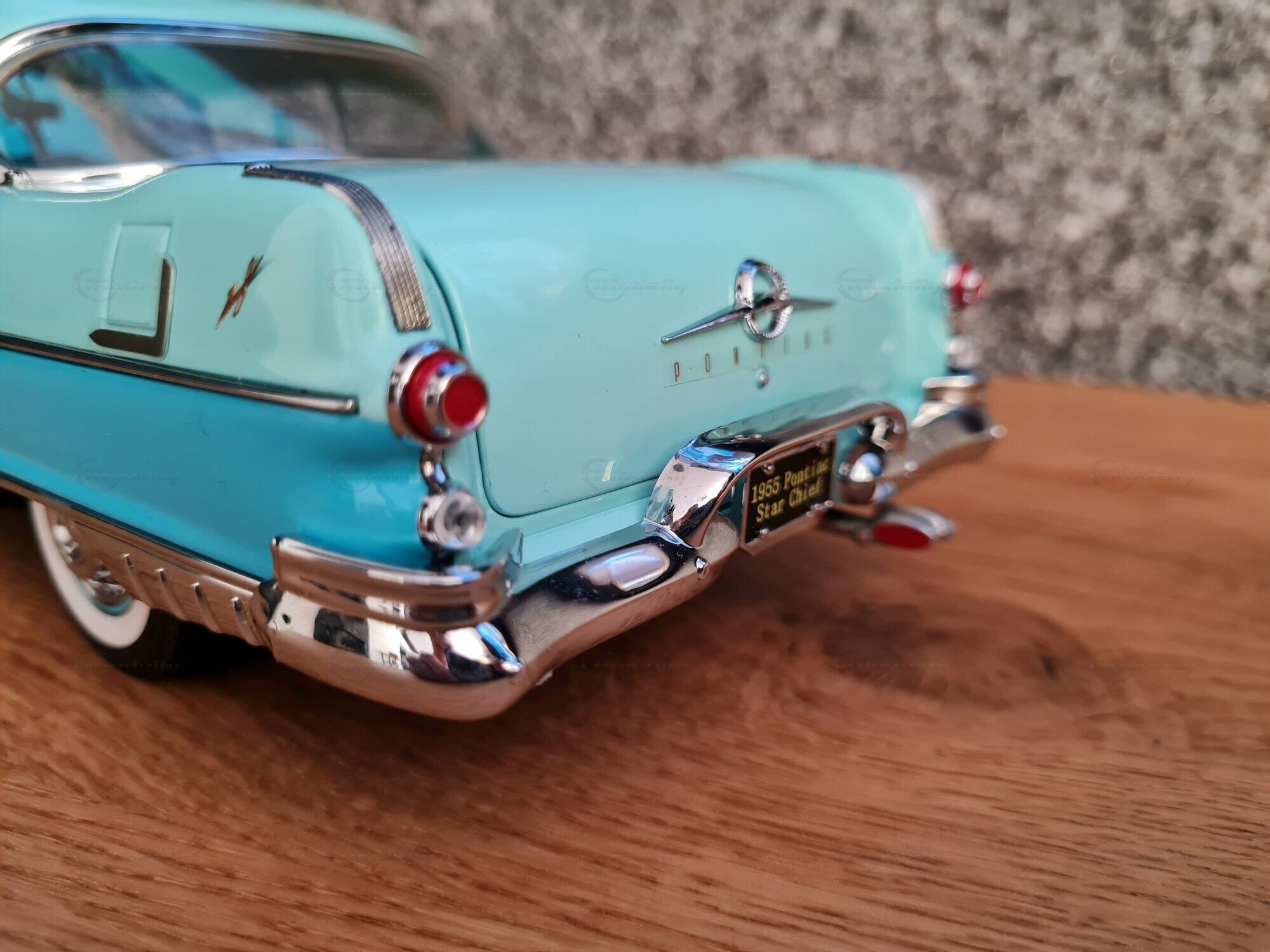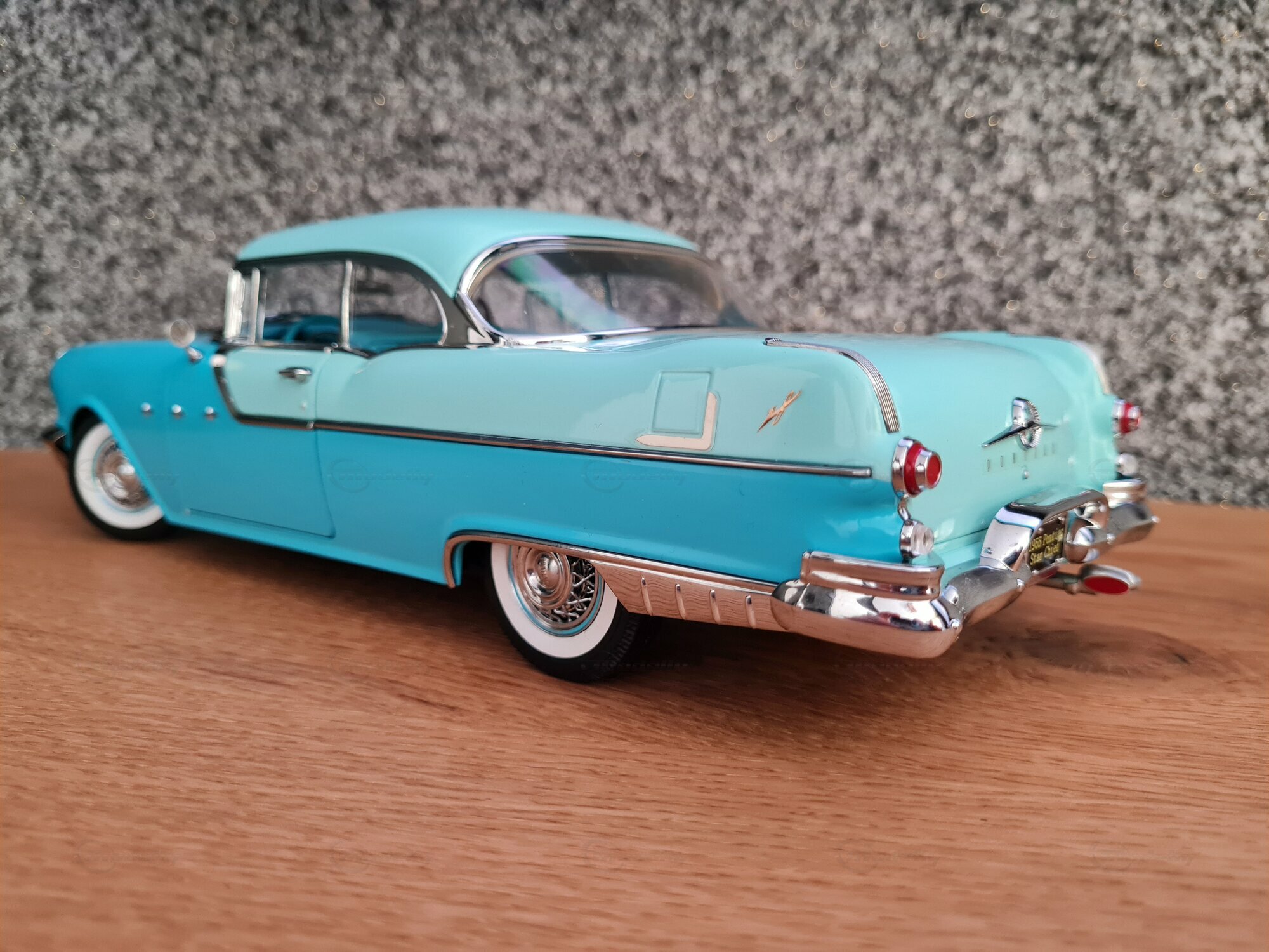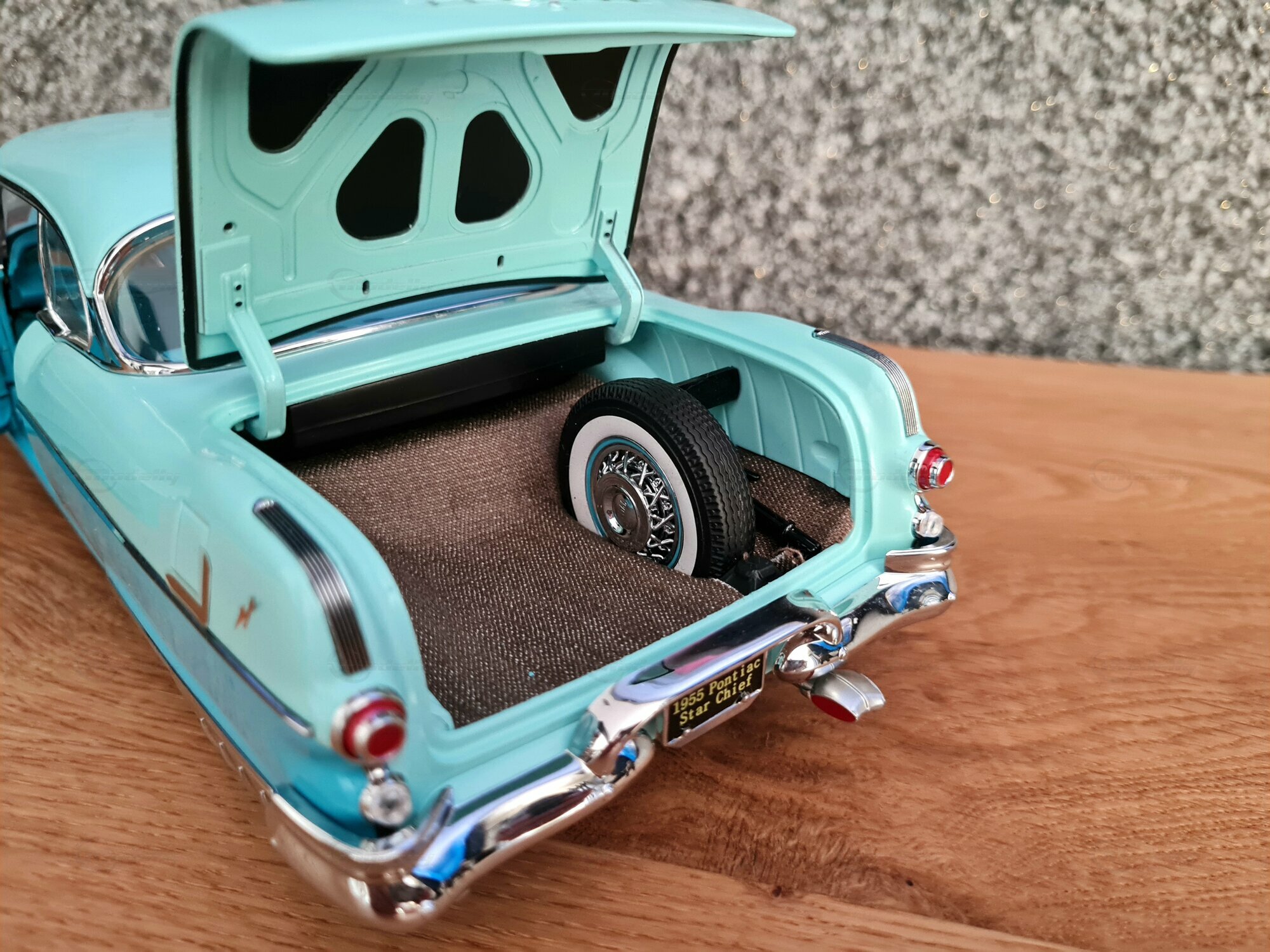 The 1/18 scale Sun Star model is highly sought after by collectors worldwide. The meticulous reproduction of details, from the headlights to the taillights, is truly impressive. The original interior of the Pontiac Star Chief is also replicated, including dashboard details and seats. The model in the "Play-X" collection displays the vehicle in a striking turquoise blue, making it a standout piece in any model car collection. Other notable details include finely applied badges and the number of chrome trim pieces. It's worth noting that such careful reproductions also showcase the world and the era in which the original vehicle was produced: a time of change and innovation in automotive history.