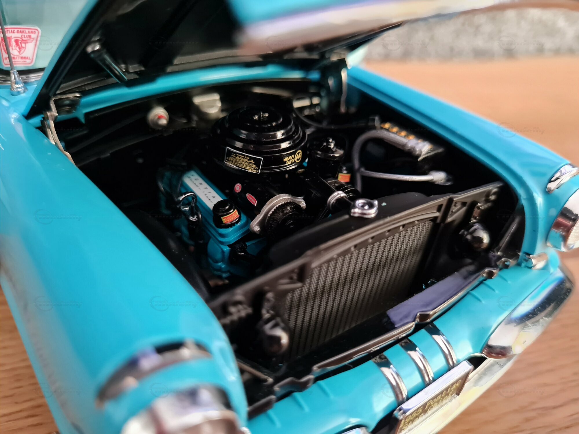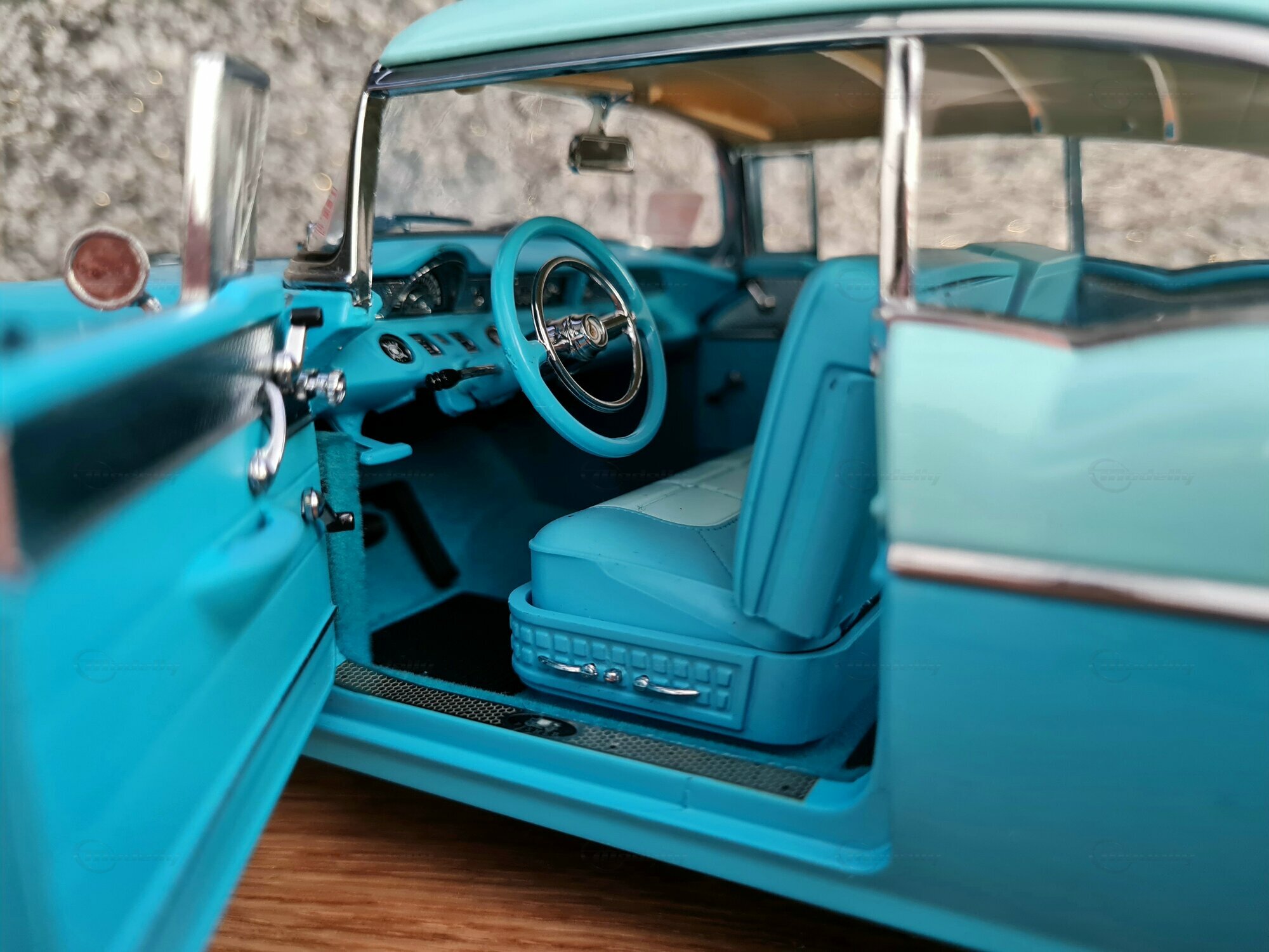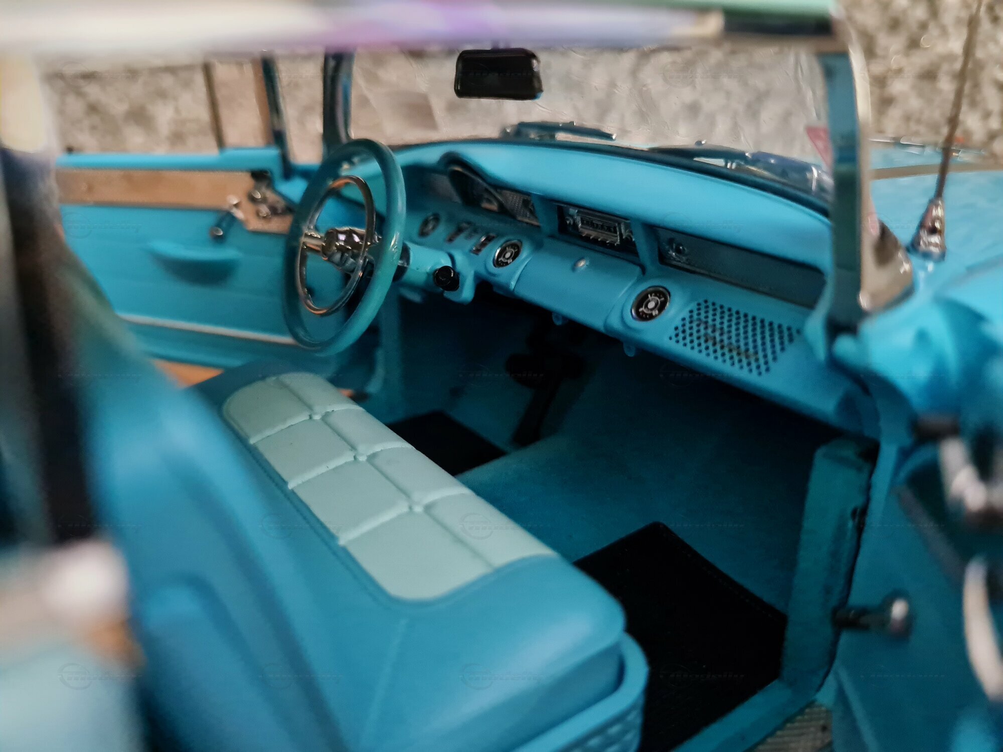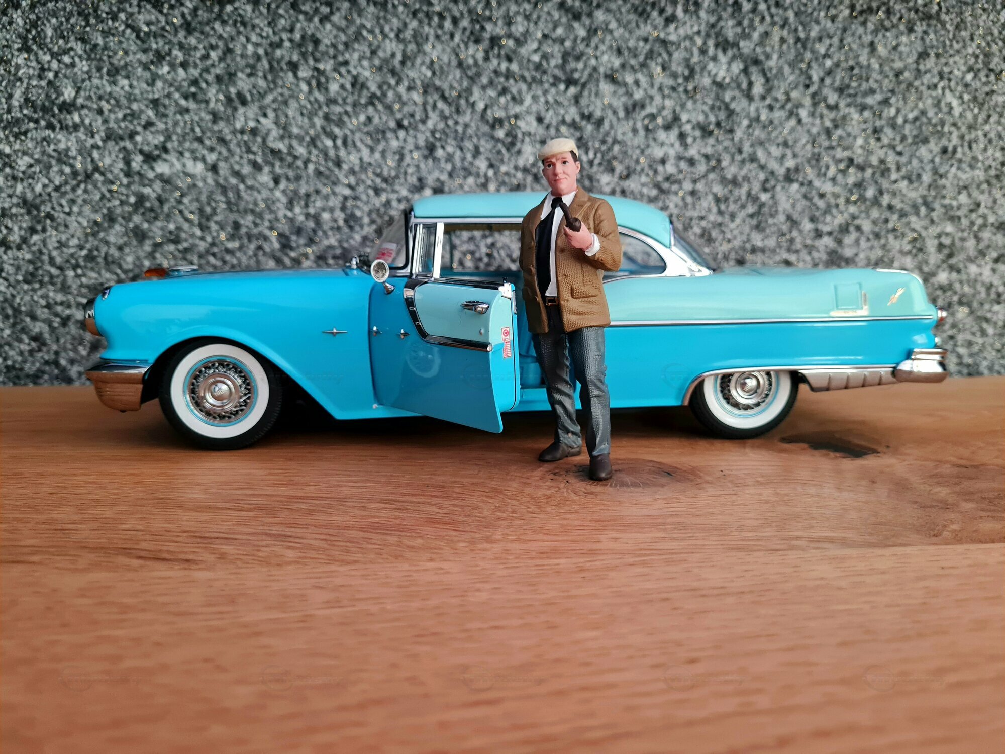 The 1/18 scale Sun Star model is highly sought after by collectors worldwide. The meticulous reproduction of details, from the headlights to the taillights, is truly impressive. The original interior of the Pontiac Star Chief is also replicated, including dashboard details and seats. The model in the "Play-X" collection displays the vehicle in a striking turquoise blue, making it a standout piece in any model car collection. Other notable details include finely applied badges and the number of chrome trim pieces. It's worth noting that such careful reproductions also showcase the world and the era in which the original vehicle was produced: a time of change and innovation in automotive history.