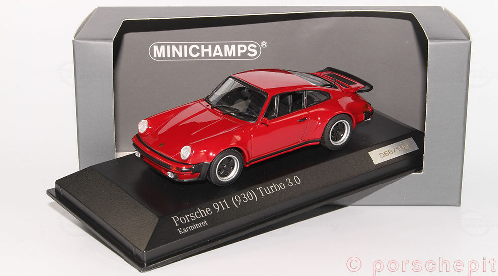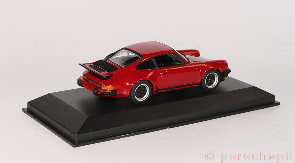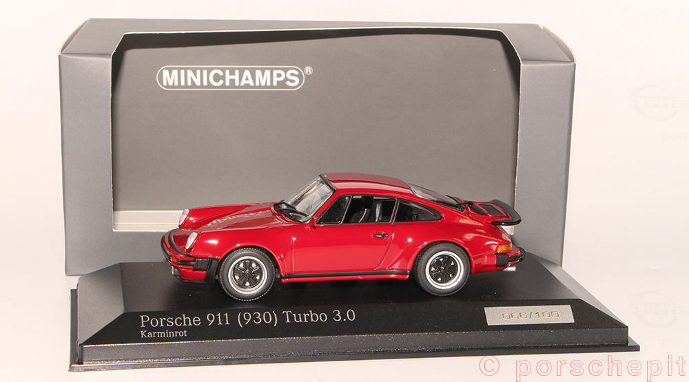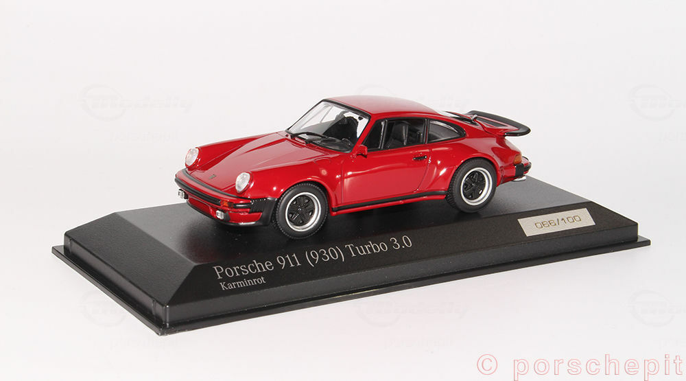 The model car shown here is a 1/43 replica of the Porsche 911 (930) Turbo and was manufactured by Minichamps, also known as Cartima. Crafted from high-quality diecast material, this model accurately and faithfully represents the original. The body is painted in a vibrant carmine red, capturing the aggressive and sporty character of the original. The sharp lines and contours of the Turbo are stunningly replicated in this model, and details of the front and rear lights, side ventilation slits, and distinctive wheels are exemplary. This model car is part of the collection of Modelly member "porschepit" and is an impressive collector's piece for all Porsche enthusiasts and model car collectors worldwide.