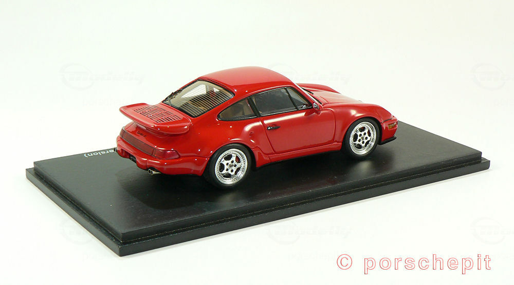 The miniature shown here, a precise reproduction at a scale of 1/43, was crafted by Spark/Cartima, impressing with its attention to detail and quality. Made of resin for durability, this replica of the Porsche 911 (964) Turbo S captures many intricate features accurately. The vibrant red paint and distinctive shape of the model are striking, sure to appeal to any model car collector. To give context to the era when the 911 (964) Turbo S emerged, 1989 marked the fall of the Berlin Wall and Madonna's "Like a Prayer" topping the charts.