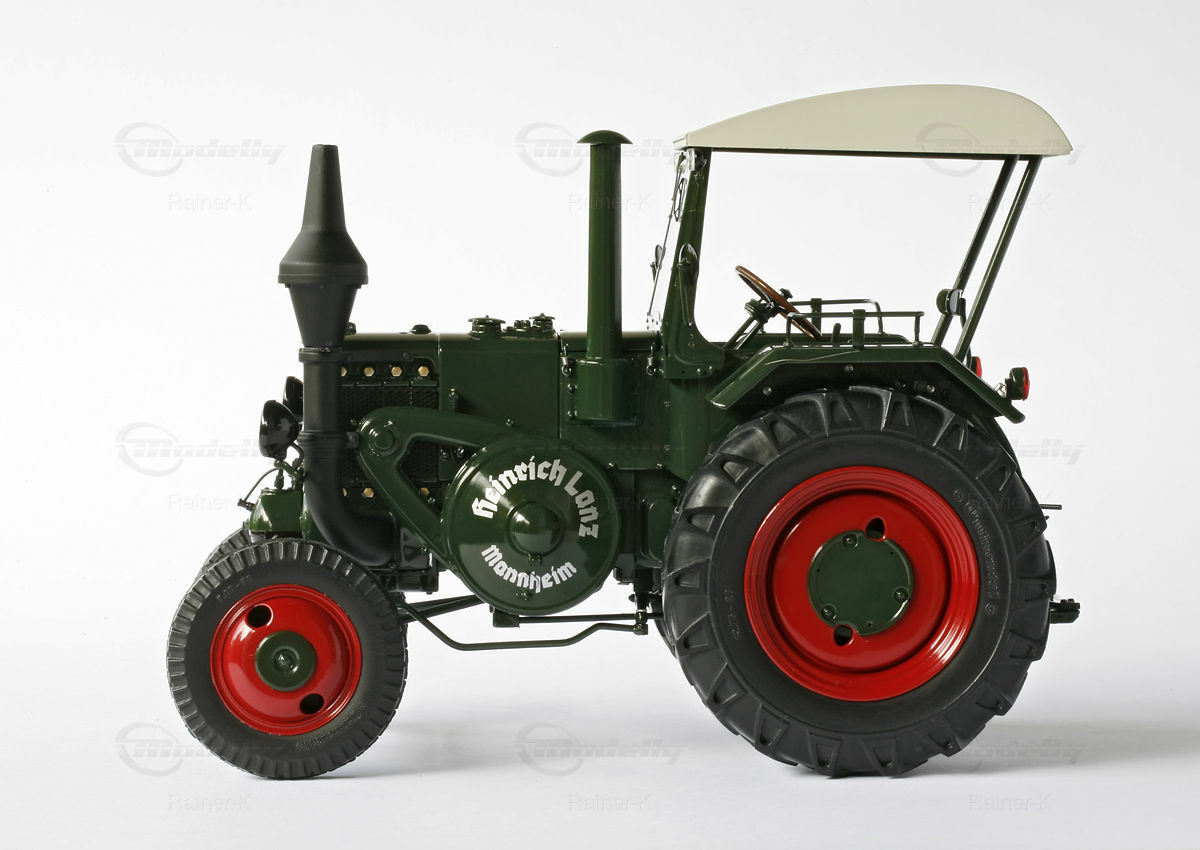 The Lanz Ackerluft Bulldog D 9506 belongs to the legendary Bulldog series produced by Heinrich Lanz AG in Mannheim. The D 9506 was manufactured in the third generation from 1936 to 1952. These tractors are known for their reliable and robust diesel single-cylinder engines that provide remarkable performance. The Lanz Ackerluft Bulldog D 9506 features a 10.3-liter engine delivering around 45 horsepower at 630 rpm. These tractors were primarily used in agriculture and were considered indispensable for various agricultural tasks due to their durability and performance.