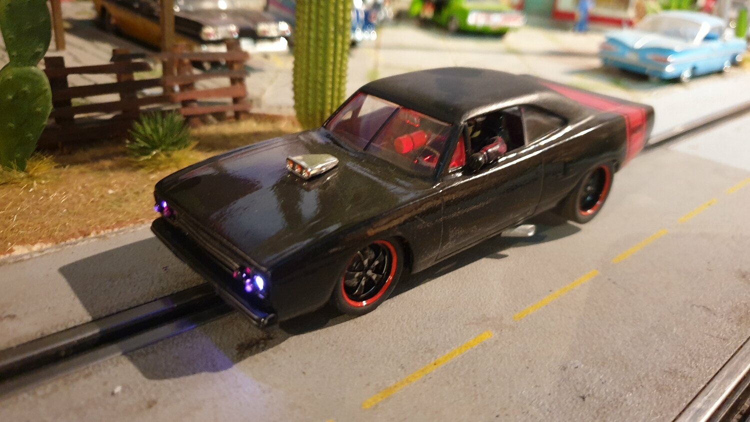 schwarz glanz mit mattem Dach und rotem Hemi Streifen