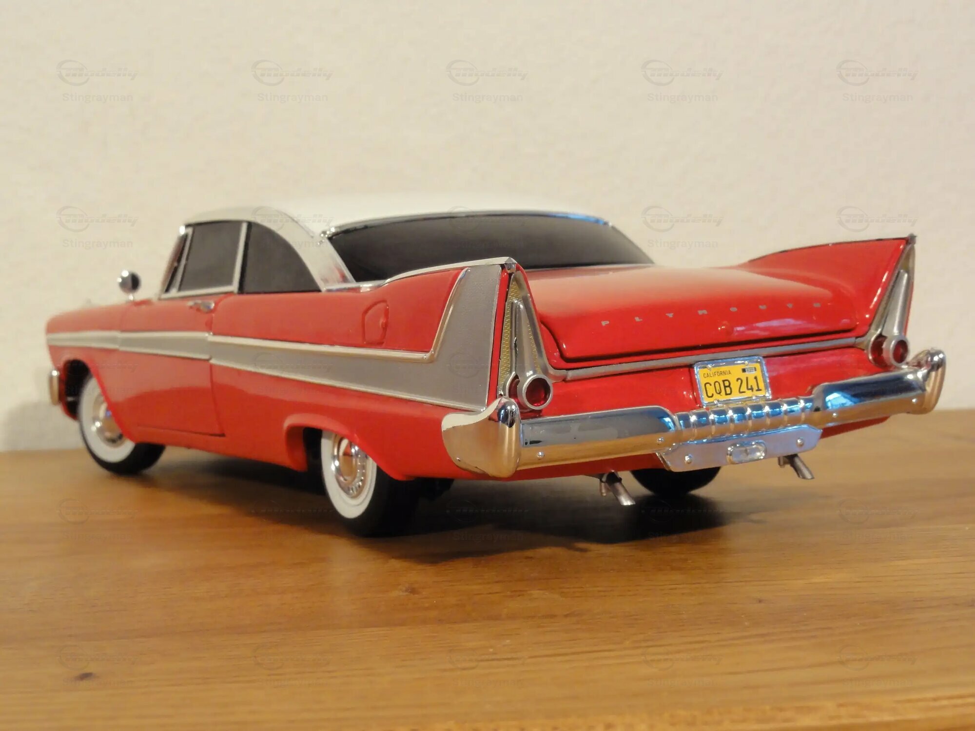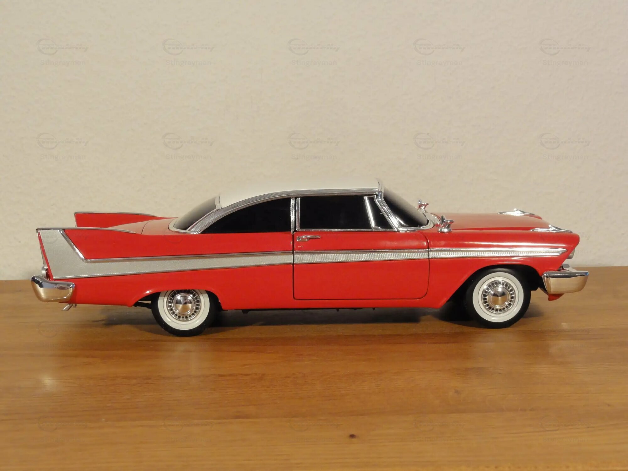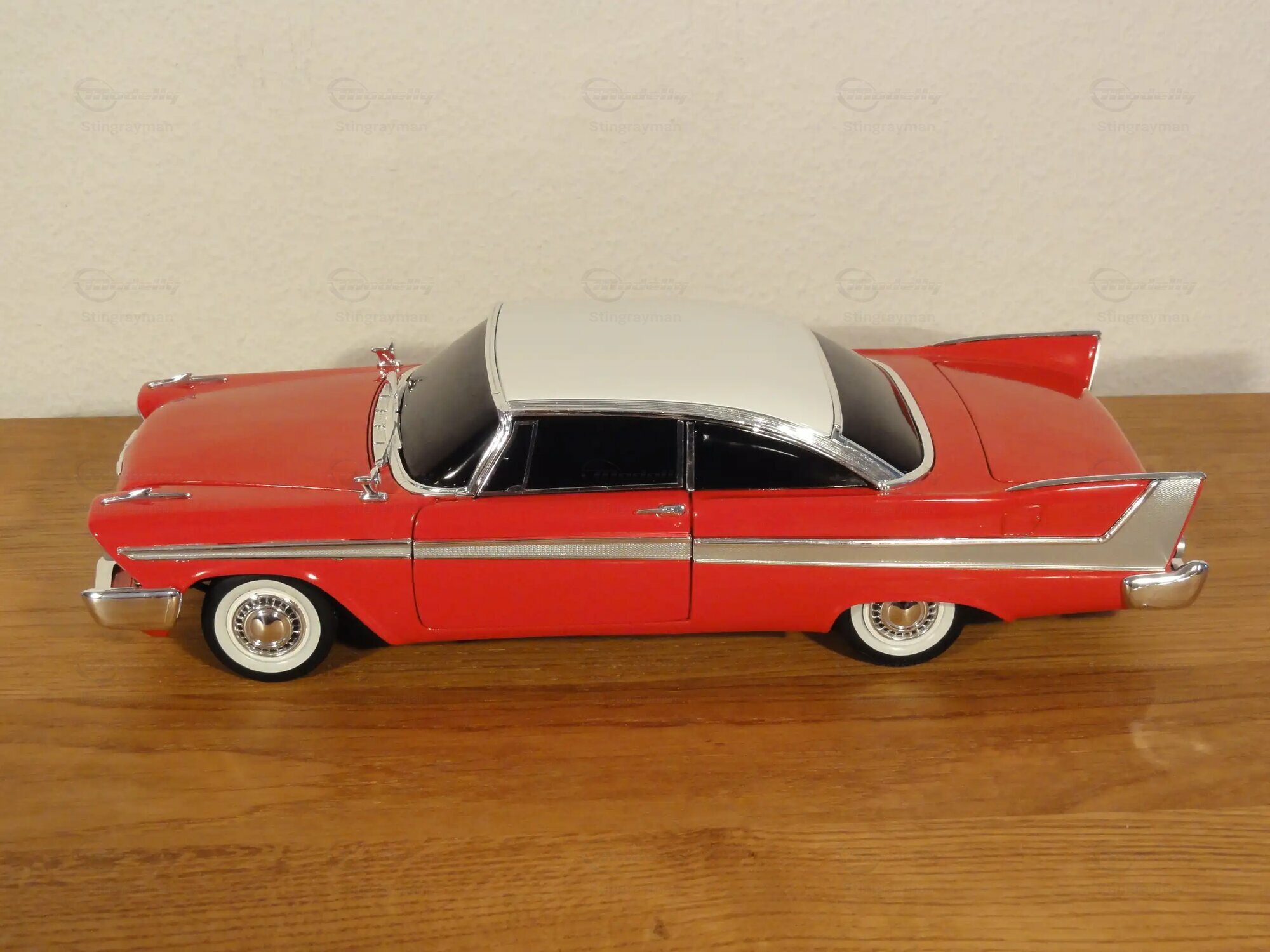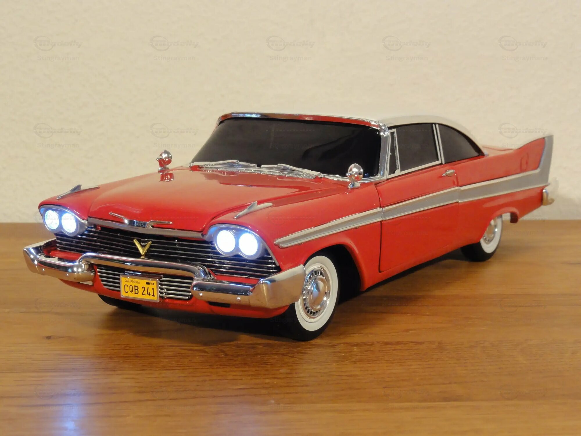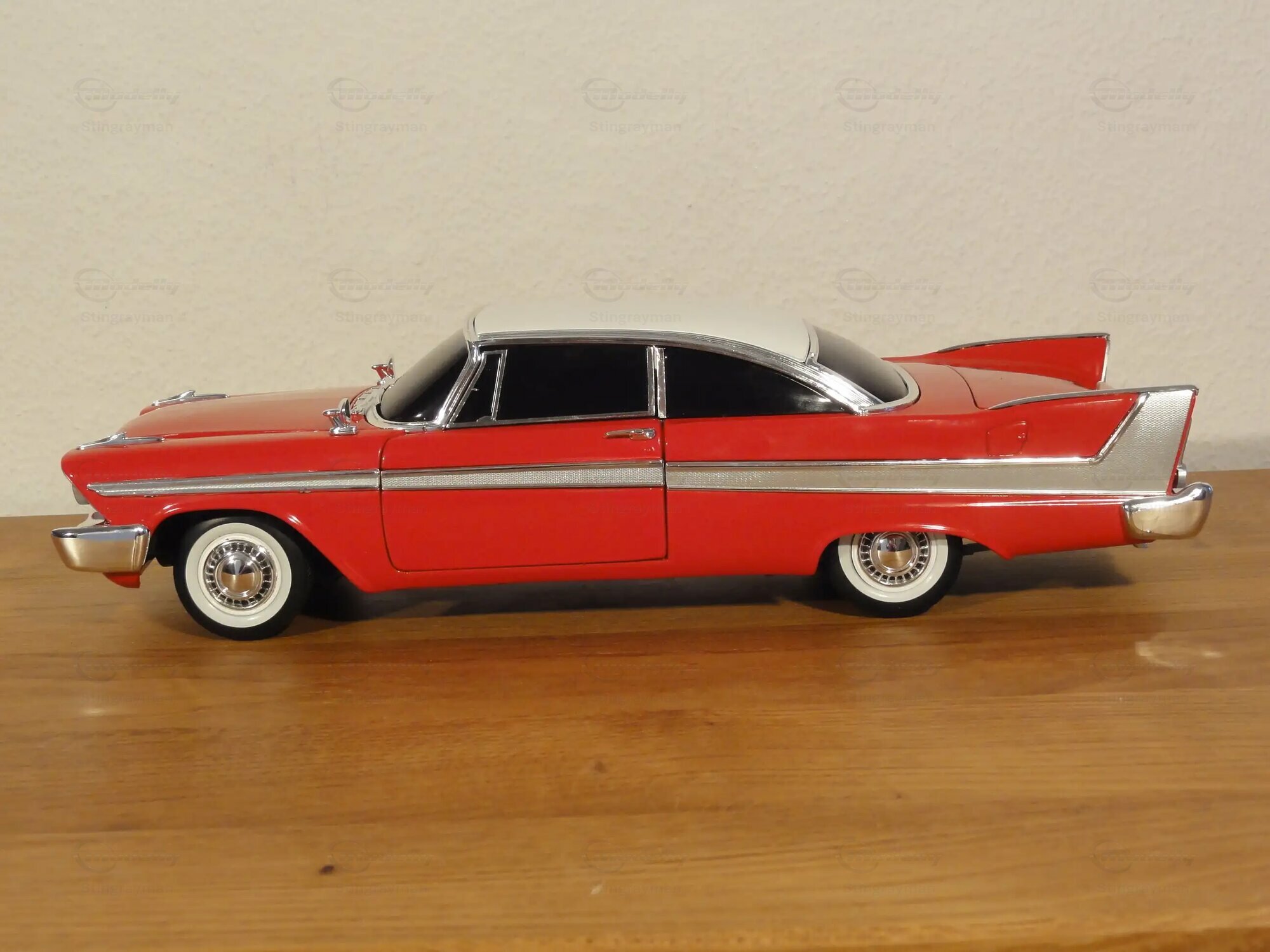 This model is based on the car from the film Christine, adapted from the famous novel by Stephen King. The movie, released in 1983, tells the story of a possessed Plymouth Fury that develops a life of its own, exerting control over its owner, high school student Arnold "Arnie" Cunningham (played by Keith Gordon). The plot showcases how the car manipulates people and even commits murder in a series of eerie events. In key scenes from the film, the car’s creepy self-repair abilities and the chilling, glossy red paint create an ominous atmosphere. The character Arnie Cunningham becomes unhealthily obsessed with Christine, leading to a tragic escalation. Immortalized through the film and the car's haunting presence at the story's core, the Plymouth Fury 1958 has secured a special place in pop culture.