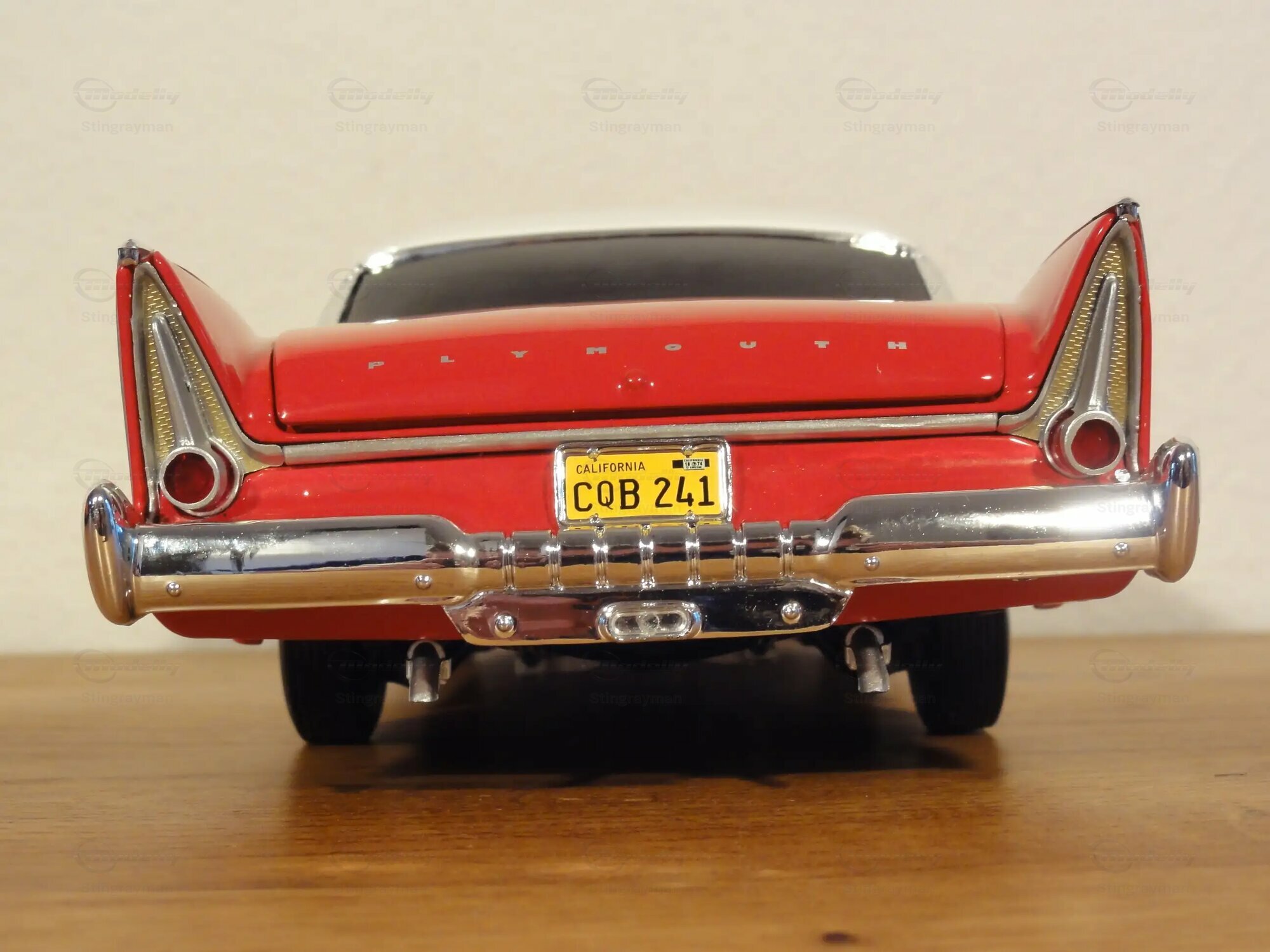 The model shown here depicts the legendary Plymouth Fury in a 1/18 scale, produced by a company called Auto World. It’s part of the collection from model enthusiast "Stingrayman" and is crafted from diecast, a popular material for its durability and ability to replicate car details accurately. Visually striking features of the model include the detailed chrome accents, the meticulously textured grille, and the authentic dual headlights. One particularly interesting detail is the license plate "CQB 241," which is a nod to the vehicle featured in the movie Christine. The Auto World model emphasizes original design fidelity, capturing even smaller elements like door handles and side trim. The vibrant red paint job and stylized interior also reflect the elegance and character of the original.