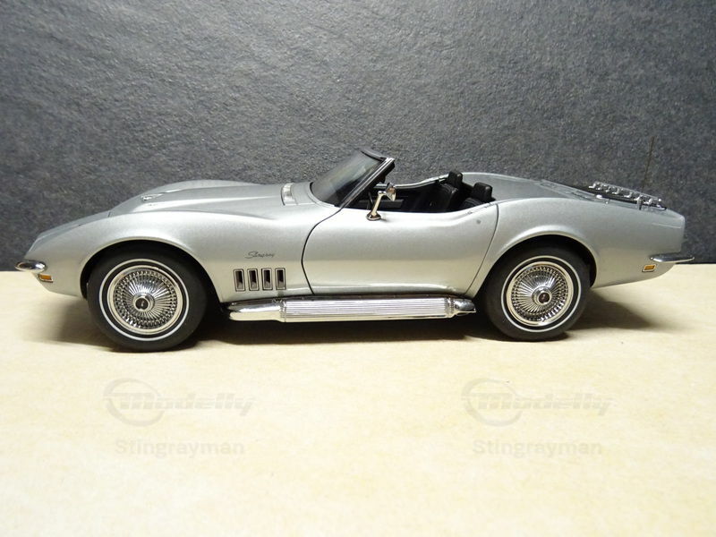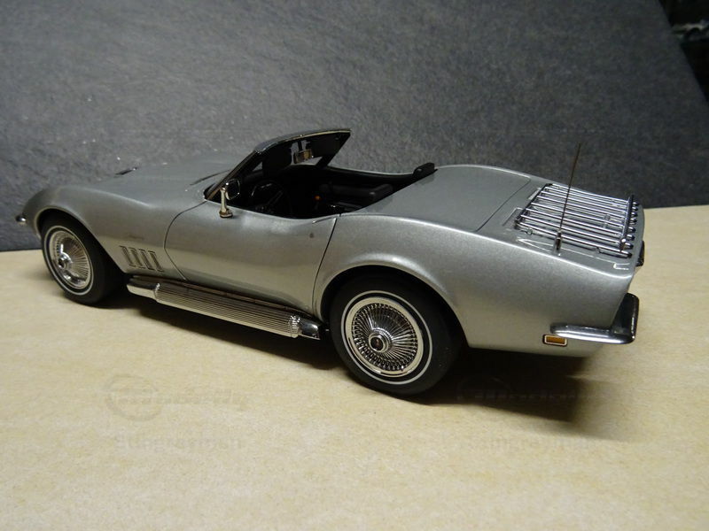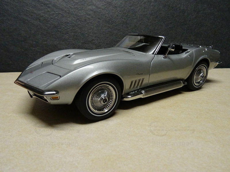 This beautiful model shown here is in the 1/18 scale by AUTOart Millennium and displays precise details of the Chevrolet Corvette C3 Stingray Convertible. Crafted from durable die-cast material, it exudes remarkable authenticity. The classic silver paint of the model is showcased in a matte finish, highlighting the vehicle's lines and contours effectively. Particularly noteworthy are the fine details like the side air intakes and the detailed interior. The miniature, part of the collection of Modelly member "Stingrayman," also includes the delicate wire-spoke wheels that complement the classic look of the Corvette C3. This 1/18 scale miniature by AUTOart Millennium accurately represents the iconic form of the original Corvette and is a valuable addition for collectors worldwide.