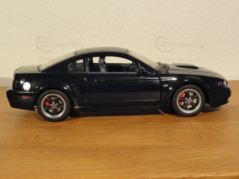 The model of the Ford Mustang GT Bullitt in 1/18 scale was crafted by AUTOart Performance and is a detailed replica of the original. Made of diecast material, this model impresses with its precise construction and detailed representation. The model, part of the collection of Modelly member "Stingrayman," showcases the distinctive features of the original vehicle, such as the special GT badges, authentic paintwork, and high-quality rims. The reproduction is an excellent example of the quality and detail accuracy that AUTOart Performance demonstrates in producing 1/18 scale models. The painted bodywork in black accentuates the sporty yet elegant lines of the vehicle, while details like the Mustang emblem and realistic taillights make the model look authentic.