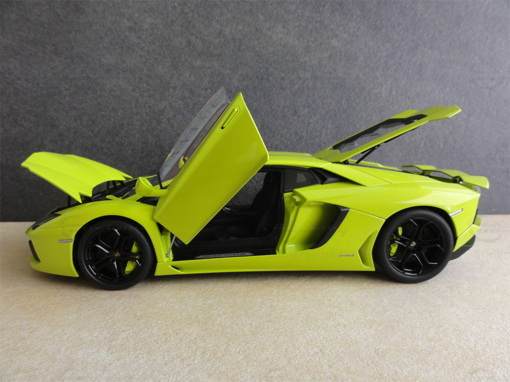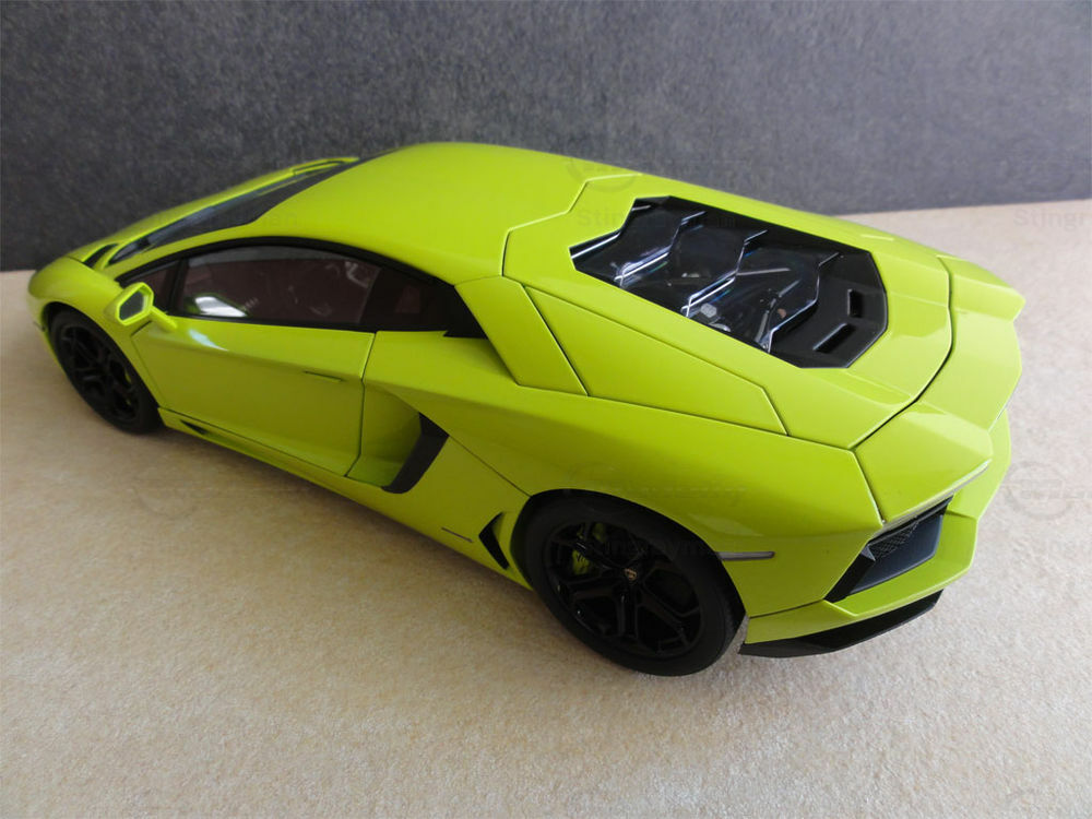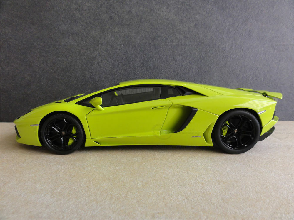 For collectors and enthusiasts of meticulously detailed model cars, this Lamborghini Aventador LP 700-4 model in 1/18 scale from AUTOart Signature is a particularly valuable piece. Crafted from high-quality diecast material, it reflects the same fine details and imposing presence of its full-scale counterpart in miniature. The model is an outstanding example of AUTOart Signature's craftsmanship and precision. The miniature in the collection of Modelly member "Stingrayman" showcases the car in a striking Lime Green paint finish that immediately catches the eye. The black wheels, perfectly replicating the original vehicle's muscular look, also contribute to the model's attractive appearance.