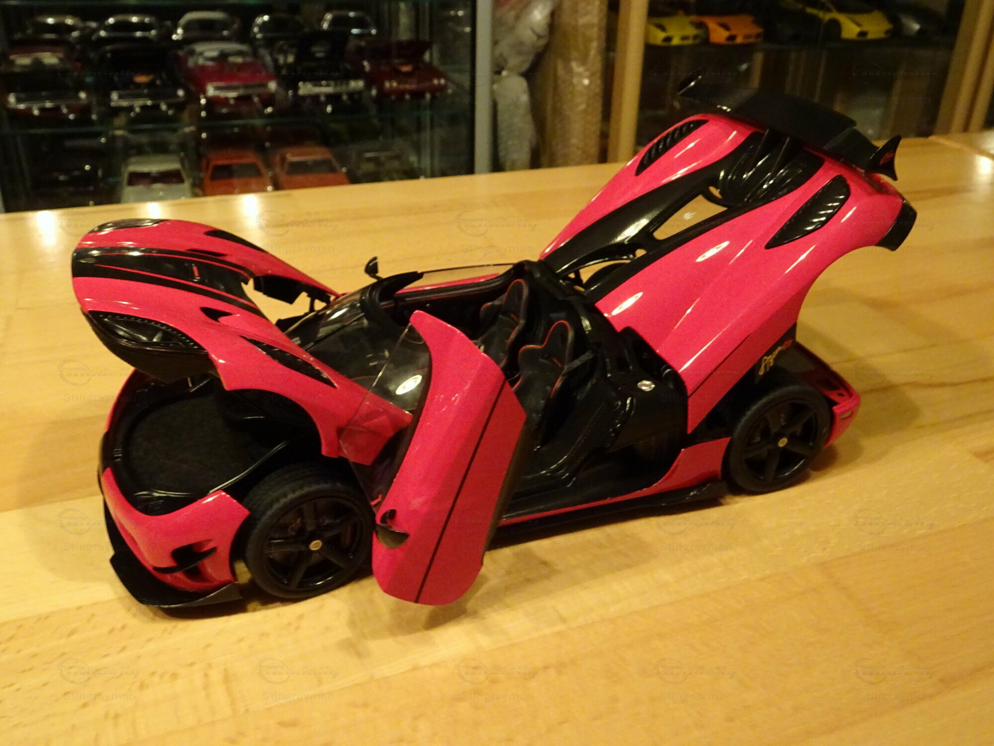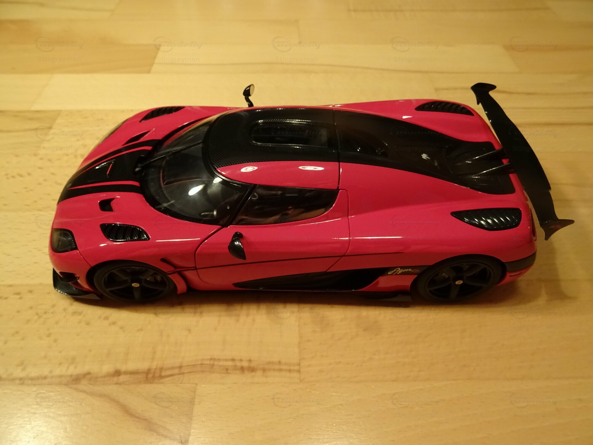 For model car enthusiasts, the 1/18 scale model of the Koenigsegg Agera RS, produced by AUTOart, is a coveted collector's item. This model car superbly represents the technical features and aggressive design of the original. The precise reproduction of the vehicle in this 1/18 scale includes meticulous paintwork and accurate details like the fully replicated air intakes and the distinctive rear wing. The model is constructed from a material composite that ensures a perfect balance between detail accuracy and stability. Model car collectors worldwide, including member "Stingrayman" of Modelly, appreciate the exquisite craftsmanship and attention to detail that AUTOart puts into its products.