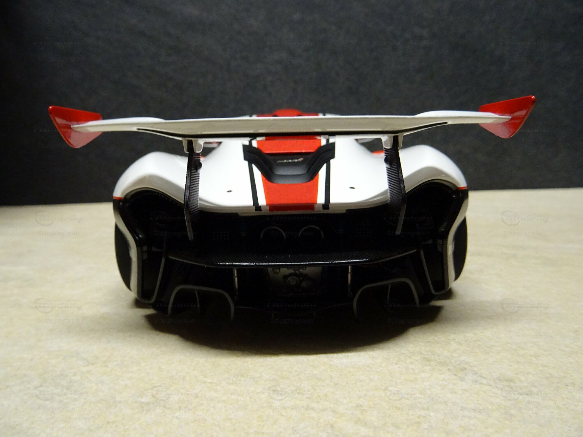 The AUTOart miniature of the McLaren P1 GTR in 1/18 scale from the collection of "Stingrayman" is not just a model-building masterpiece but also a highlight for any collector. The model perfectly captures the aggressive yet elegant lines of the original. The mix of white and red accents and the carefully placed sponsor logos underline the racing DNA of the McLaren P1 GTR. The attention to detail, evident in the accurately replicated headlights, realistically designed ventilation openings, and unmistakable design elements, make this miniature a coveted collectible. For enthusiasts and connoisseurs, this model is an essential addition that revives the spirit and technical brilliance of the McLaren P1 GTR in small scale.