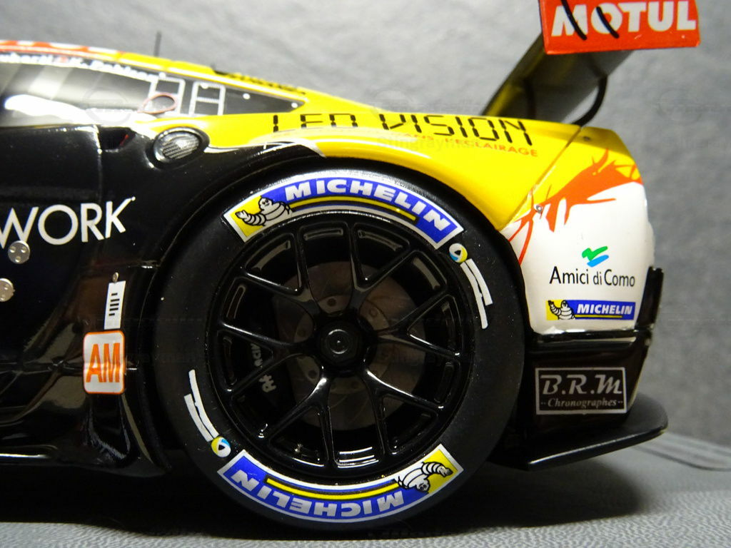 The BBR model impresses with its precise craftsmanship and careful reproduction of many small details. In the photos, you can see the curved lines of the bodywork, the race-ready aerodynamics, and the intricate paint details. Particularly striking are the color-contrasted number plates and the realistic paintwork reminiscent of the original. The wheels and tires are also accurately replicated, conveying an authentic impression of racing car aesthetics. This model surely holds a special place in "Stingrayman's" collection, both for its craftsmanship and its history as a successful racing vehicle.