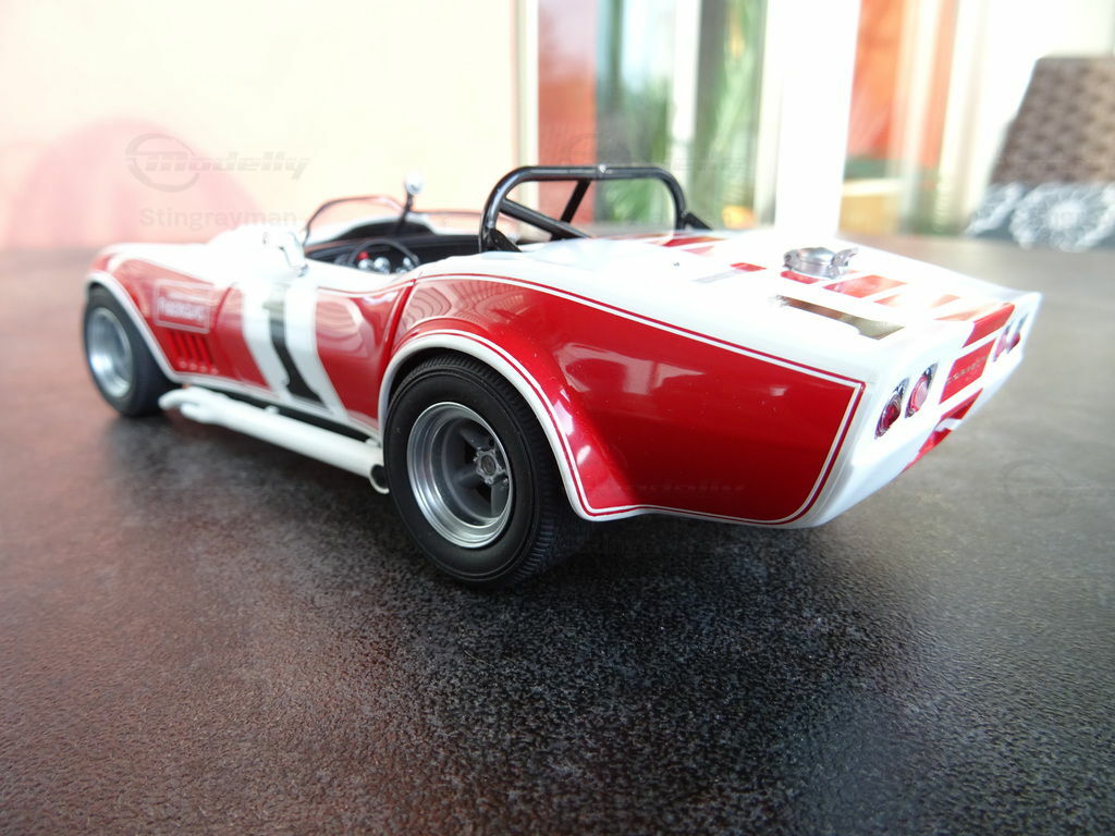The miniature in 1/24 scale offers an impressive representation of the iconic racing car. The striking paintwork reflects the unmistakable red and white color combination, complemented by the bold black racing numbers and the sponsorship logos of Owens Corning Fiberglass. The detailed reproductions of the rims, headlights, and the fully equipped driver's cabin make this model a remarkable collector's item. The use of die-cast material gives the model car high stability and a realistic weight, further emphasizing its authenticity. For model car collectors worldwide, this vehicle, whether as part of Modelly member "Stingrayman's" collection or elsewhere, is a valuable addition.