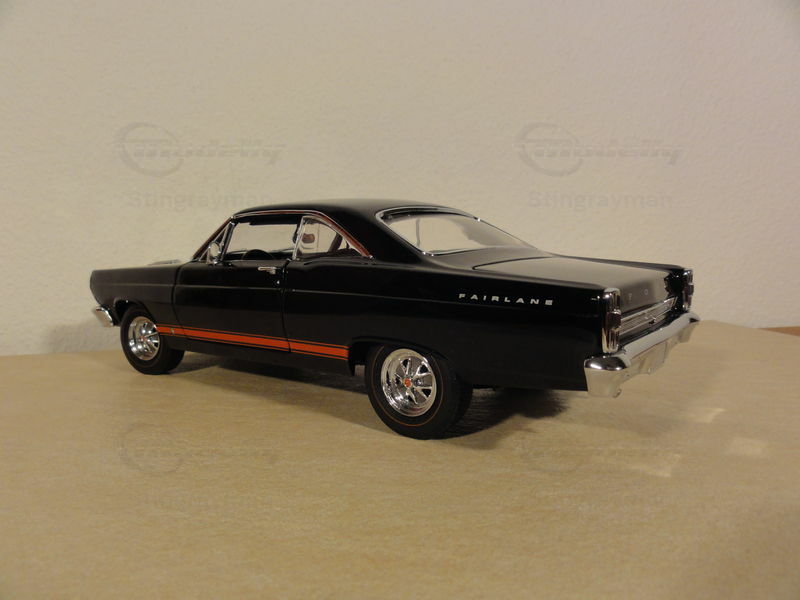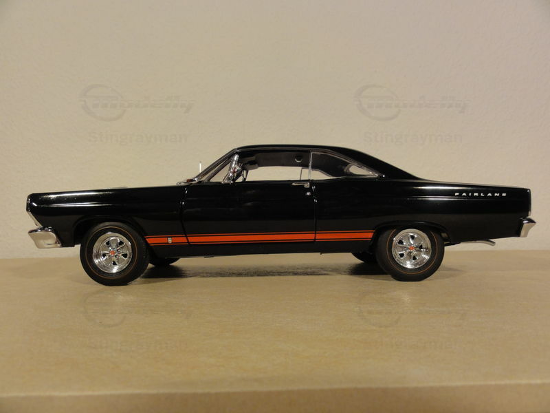 The model vehicle shown here is a replica of the Ford Fairlane GT/A in 1/18 scale. Manufactured by GMP, this model car is particularly popular among miniature and model car collectors. Upon observation, it is immediately noticeable how meticulously and accurately the model was crafted. This replica is based on the material diecast, known for its durability and longevity. It belongs to the collection of Modelly member "Stingrayman", who proudly showcases this piece.