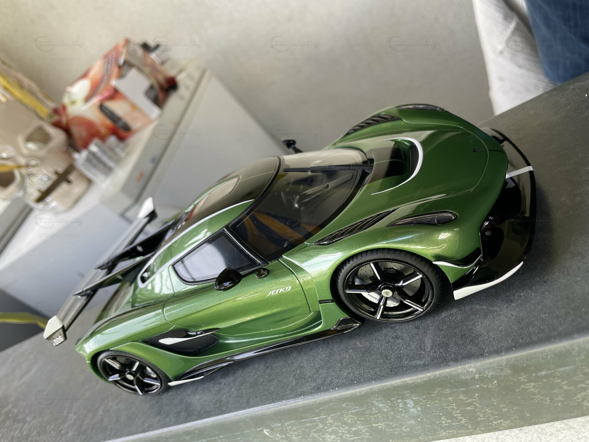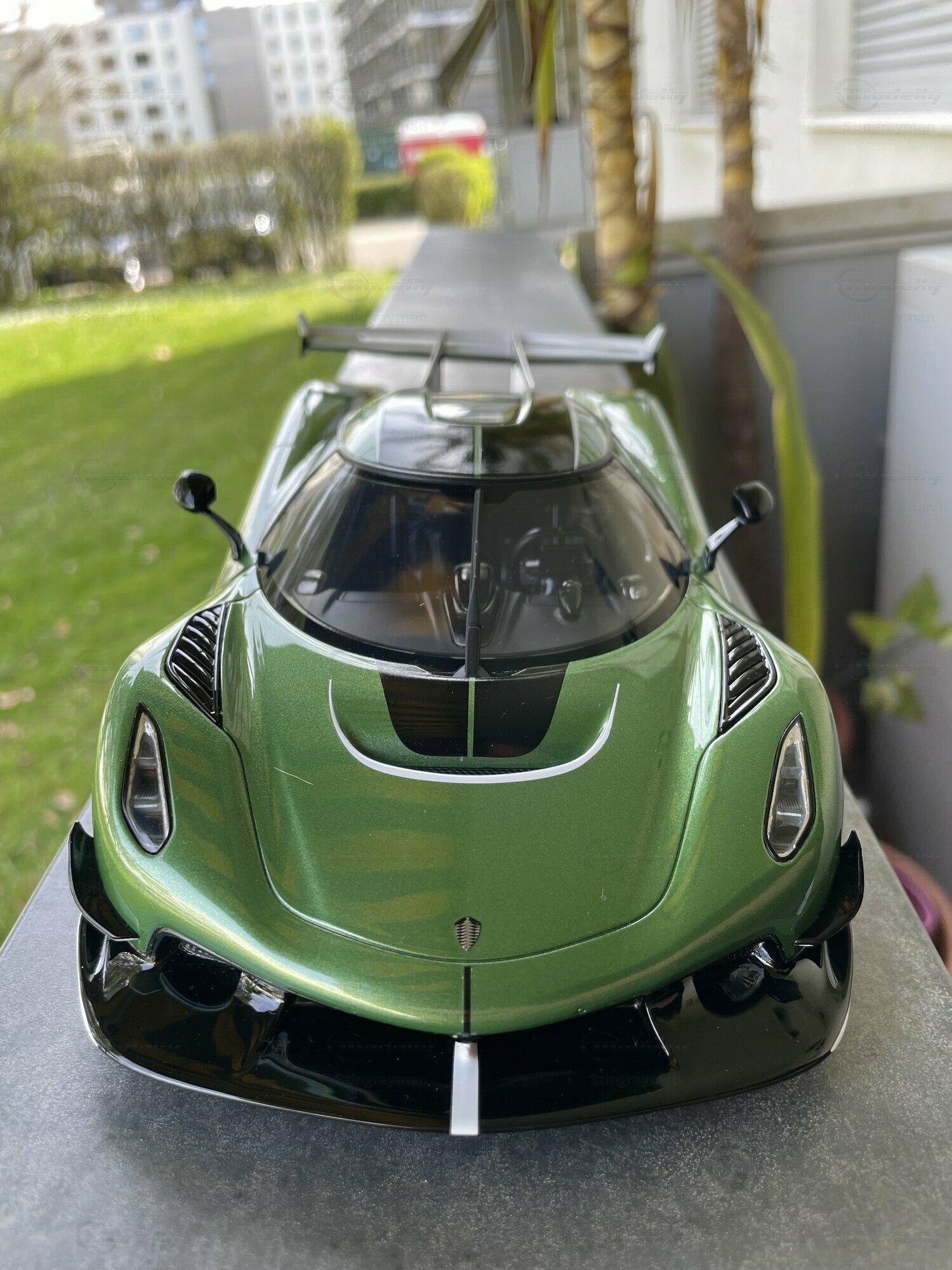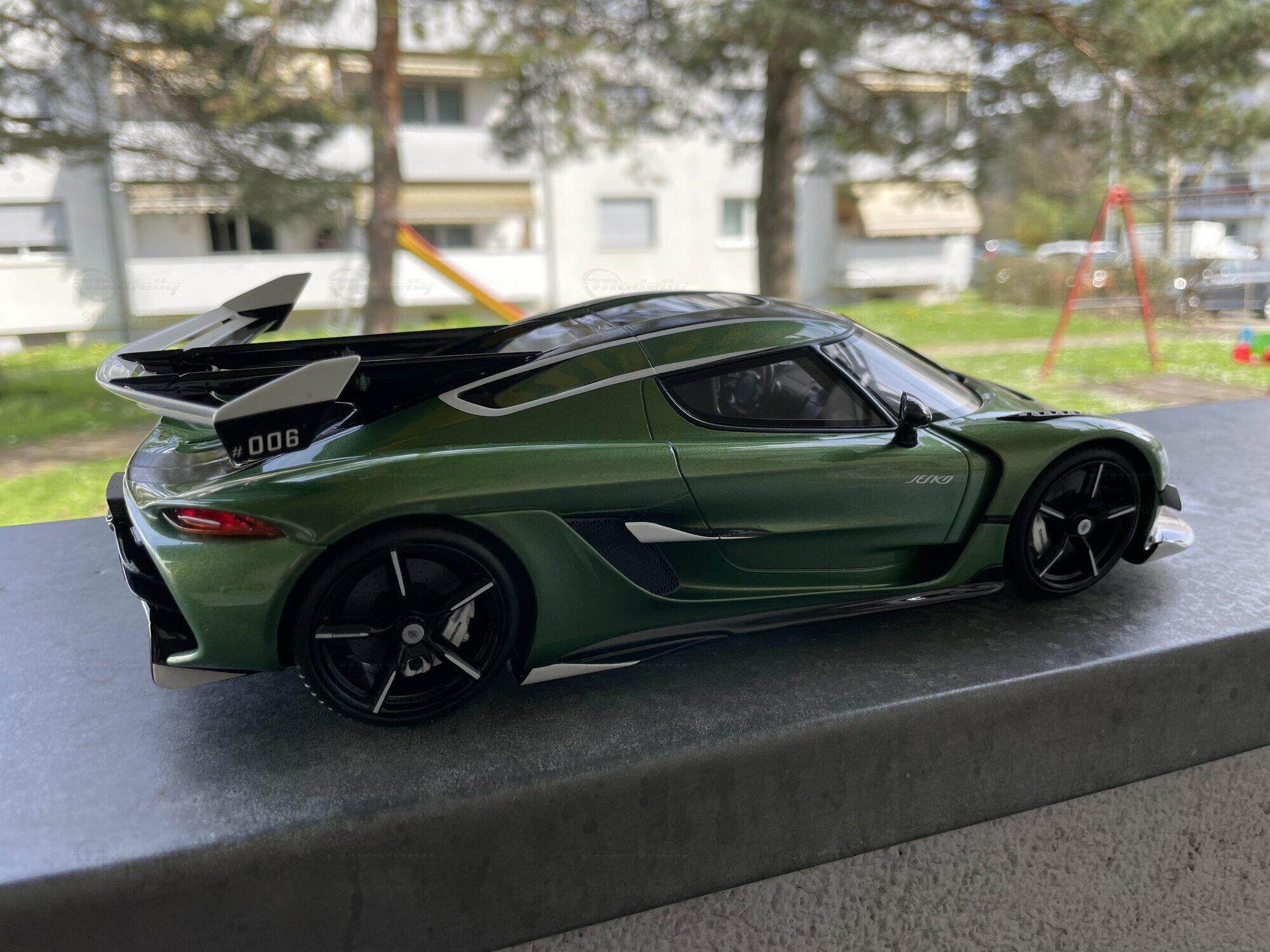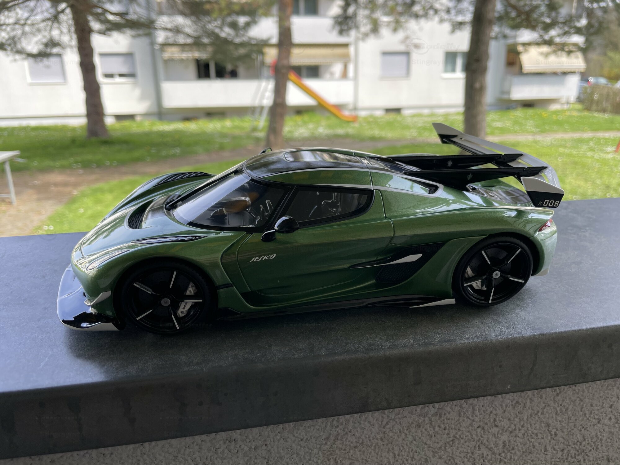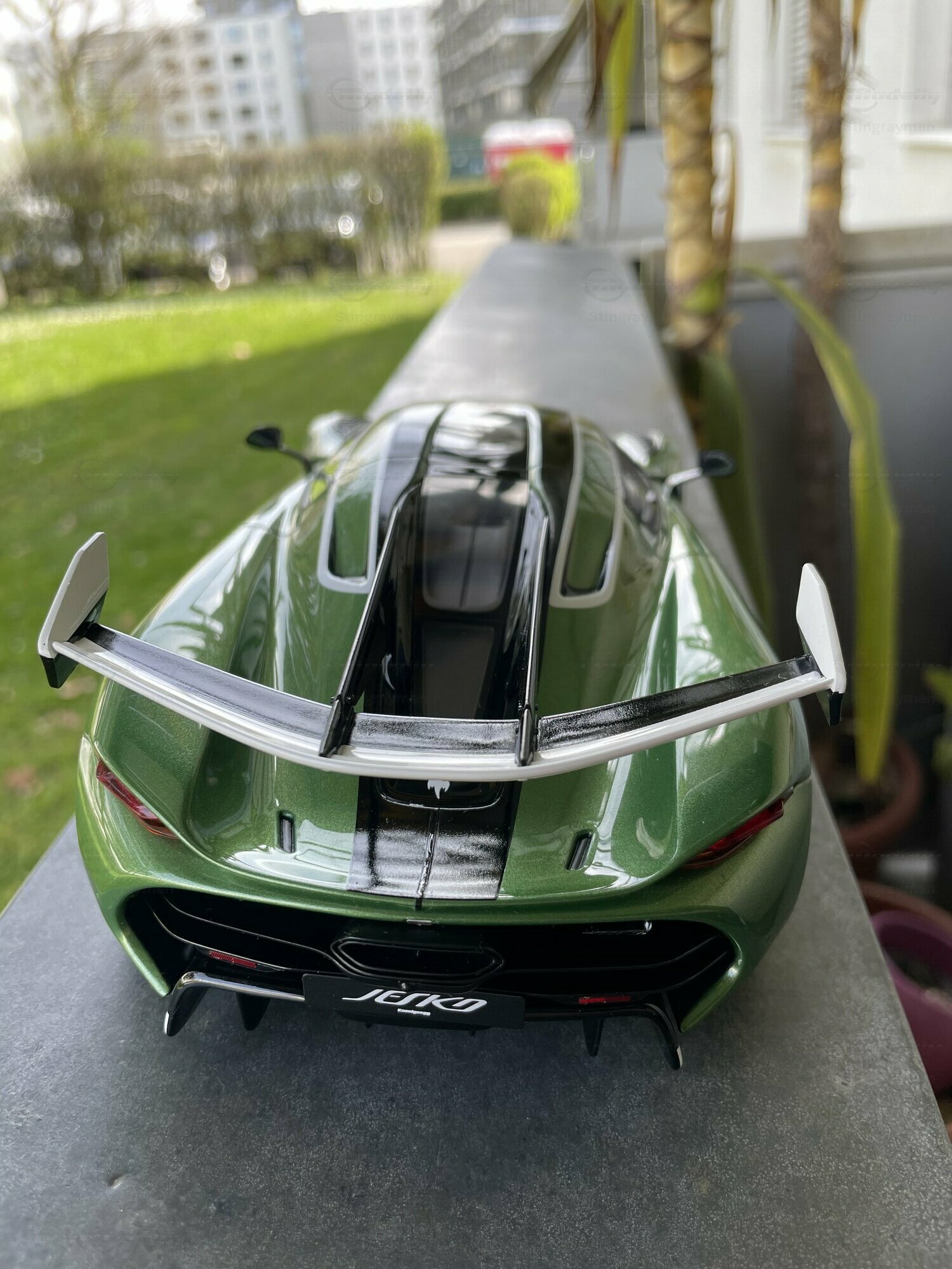 This model is part of a limited edition of just 1,500 pieces worldwide and is a standout in the collection of model enthusiast “Stingrayman”. Even though the body is made of resin, the model feels sturdy and precise, showcasing the quality of GT Spirit. Collectors love resin models for their high level of detail, which is perfectly displayed here. Another neat feature of this model is the replicas of the Jesko's distinctive wheels, which capture the sporty look of the original.