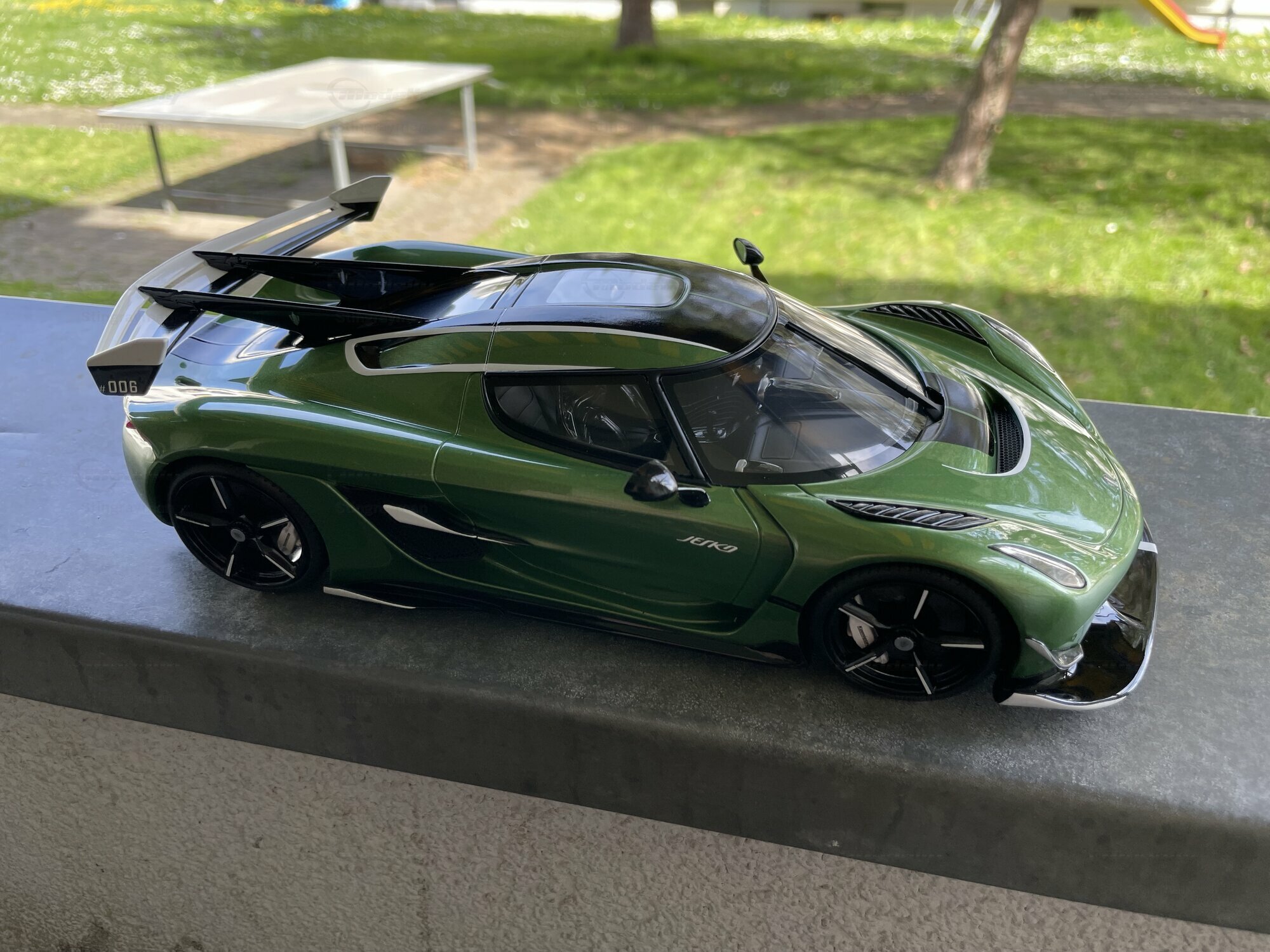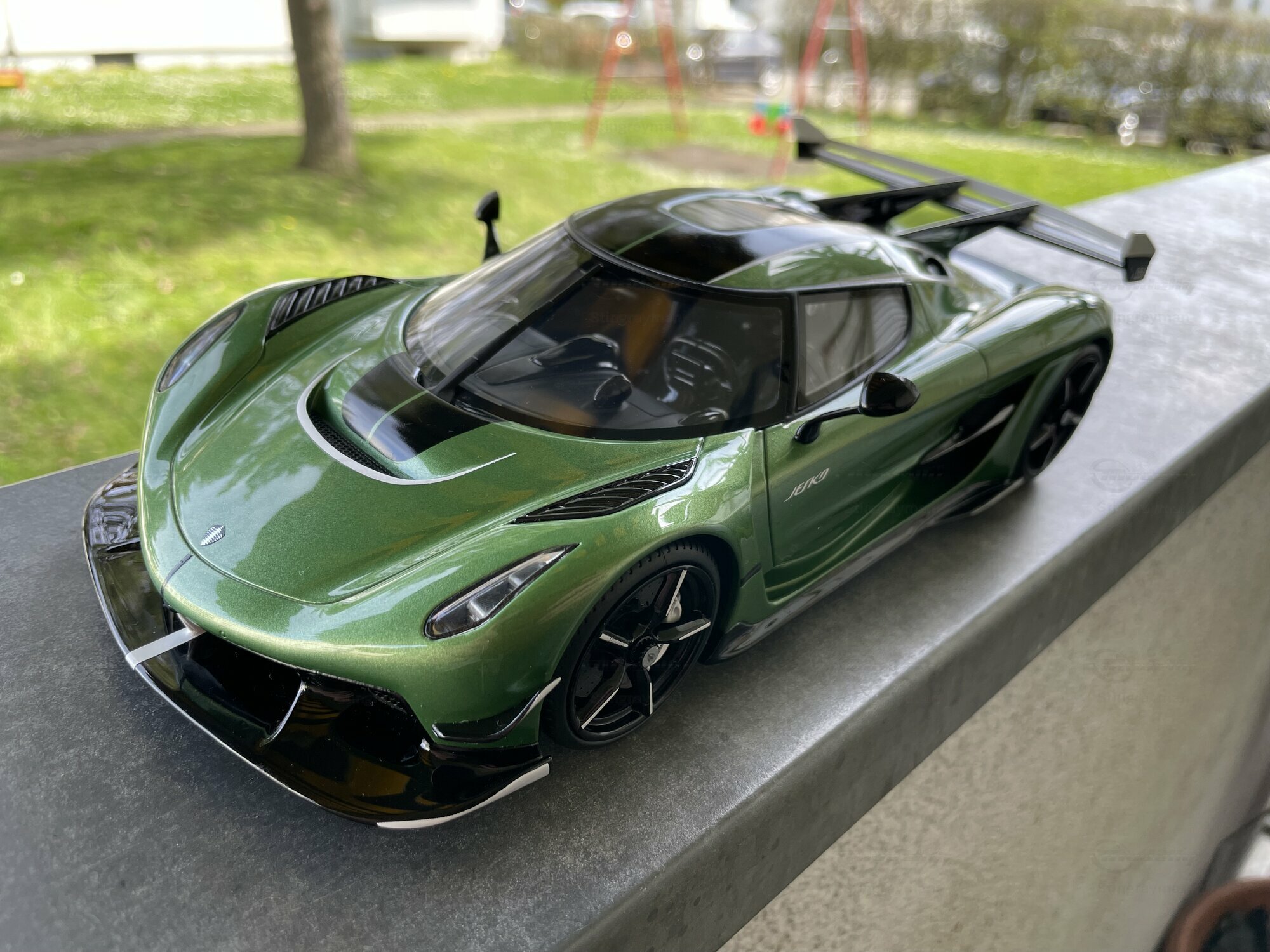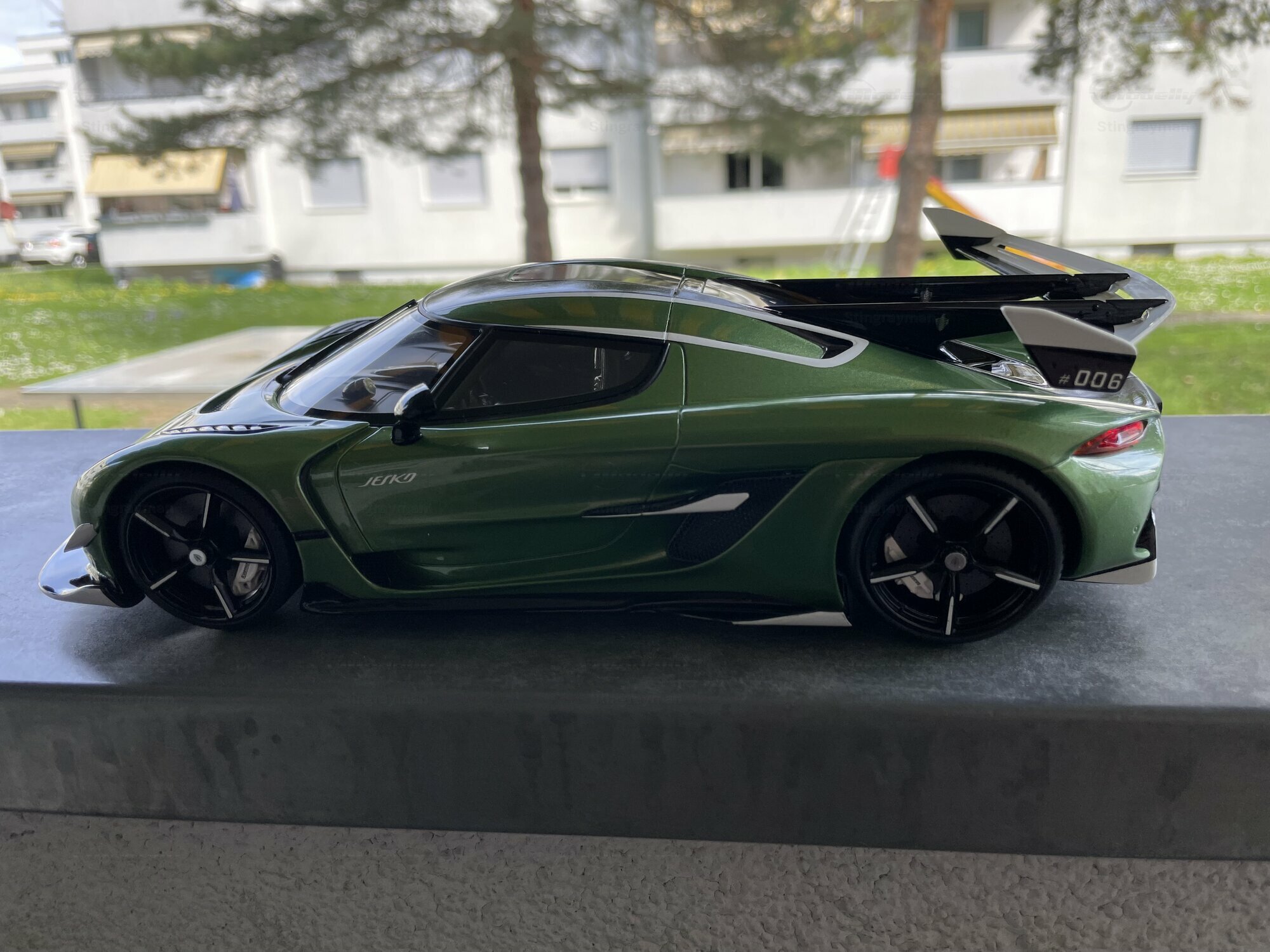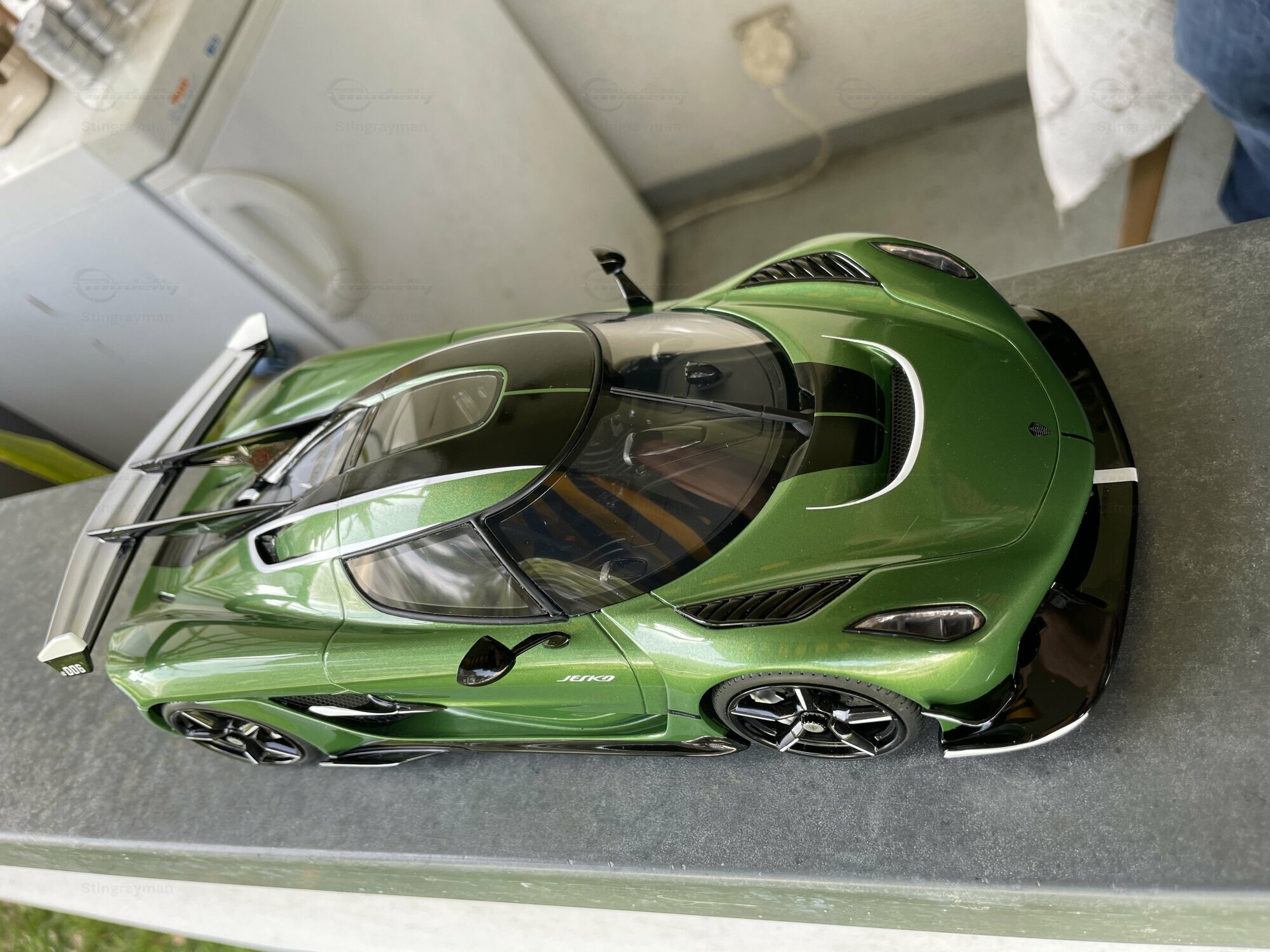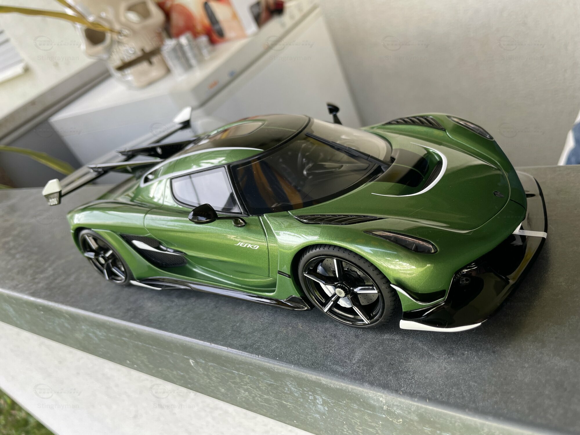 This model is part of a limited edition of just 1,500 pieces worldwide and is a standout in the collection of model enthusiast “Stingrayman”. Even though the body is made of resin, the model feels sturdy and precise, showcasing the quality of GT Spirit. Collectors love resin models for their high level of detail, which is perfectly displayed here. Another neat feature of this model is the replicas of the Jesko's distinctive wheels, which capture the sporty look of the original.
