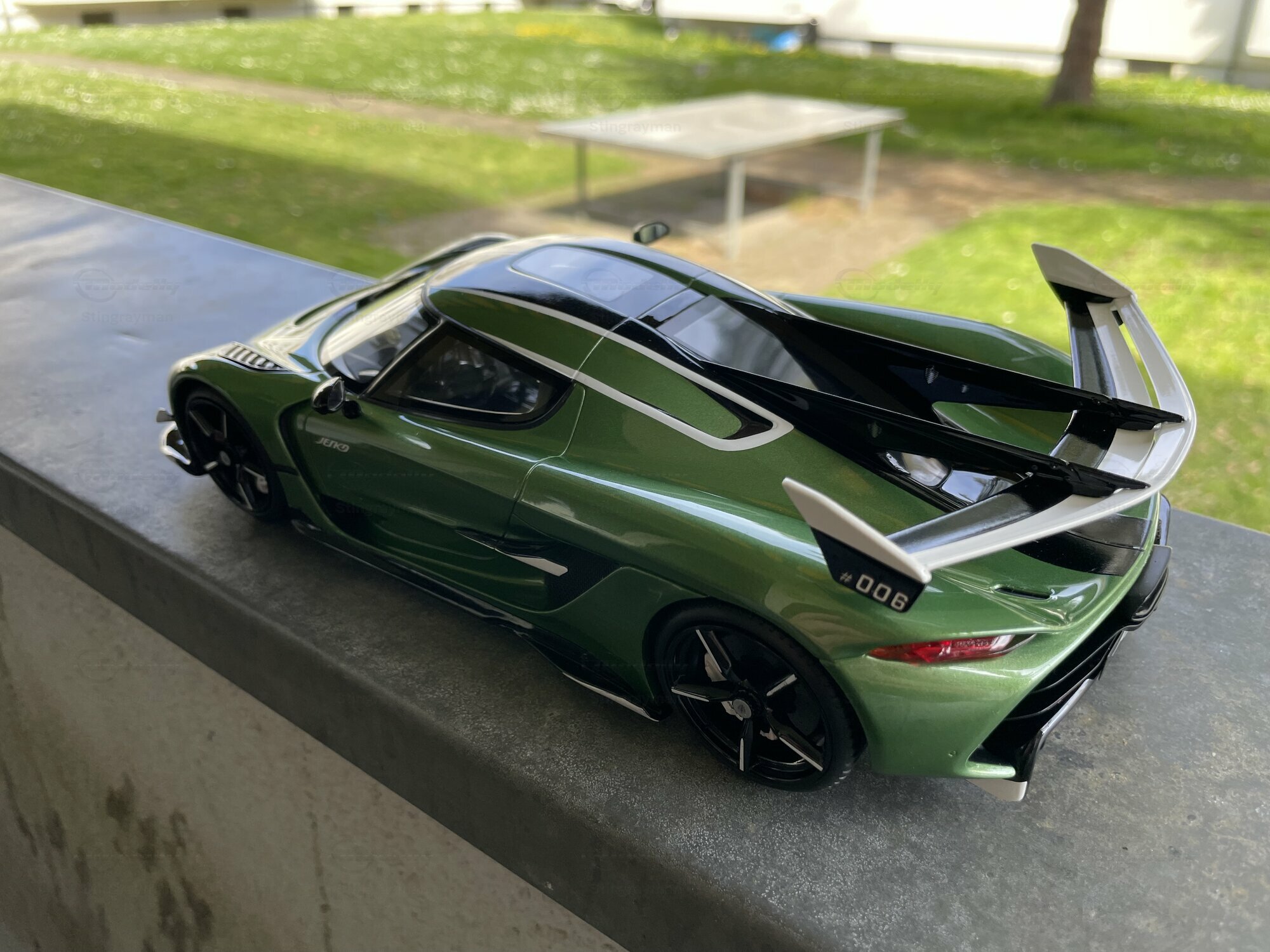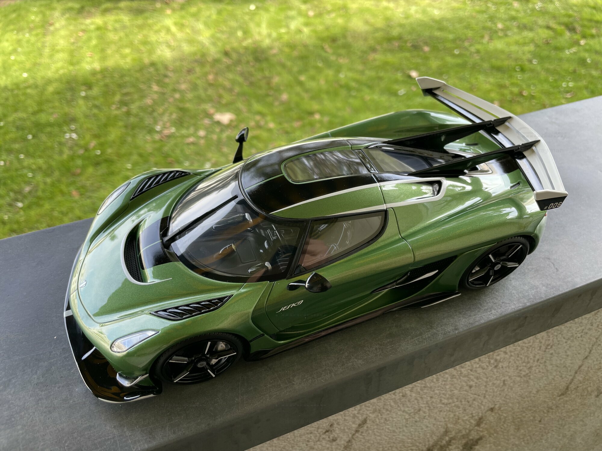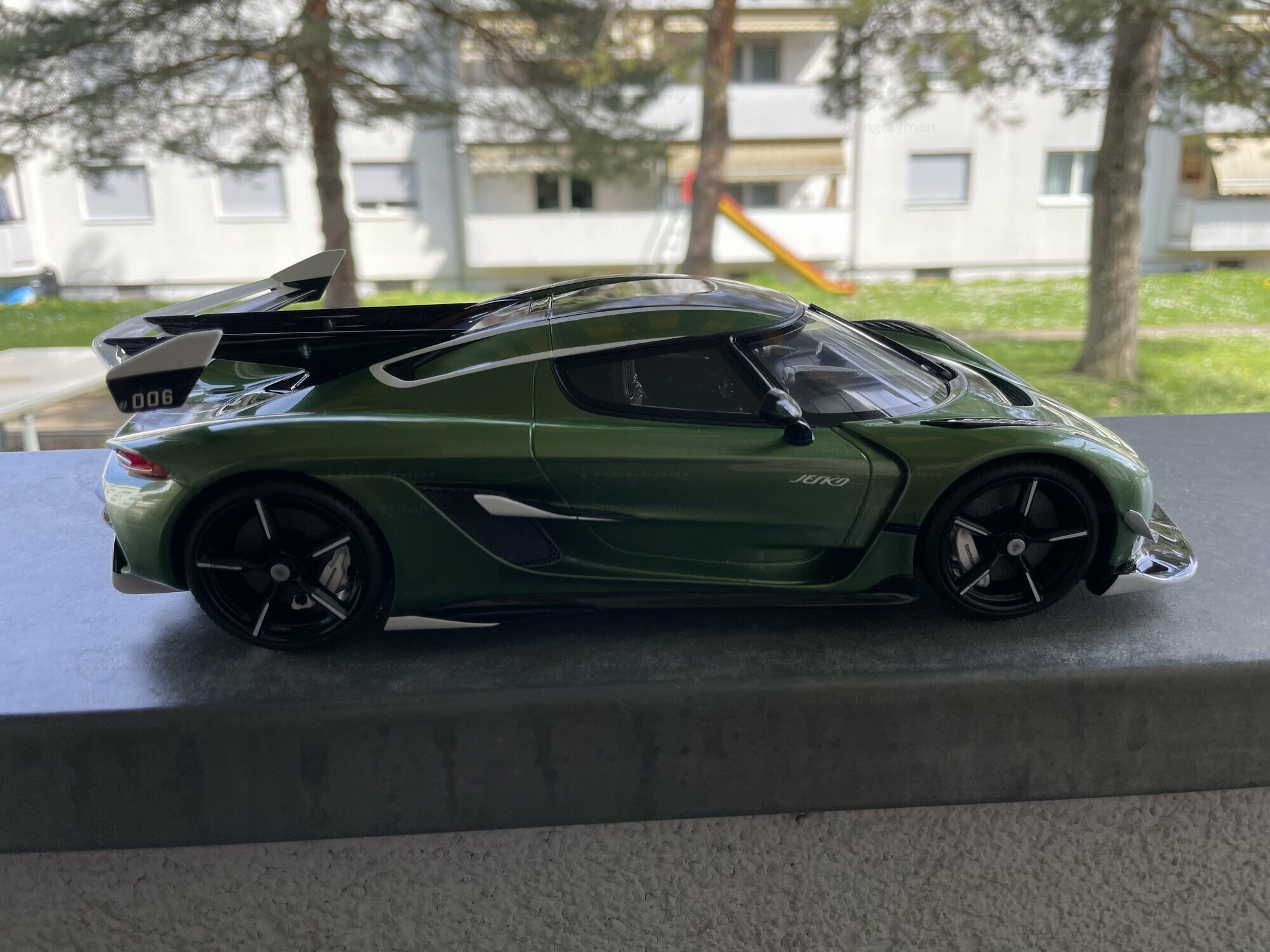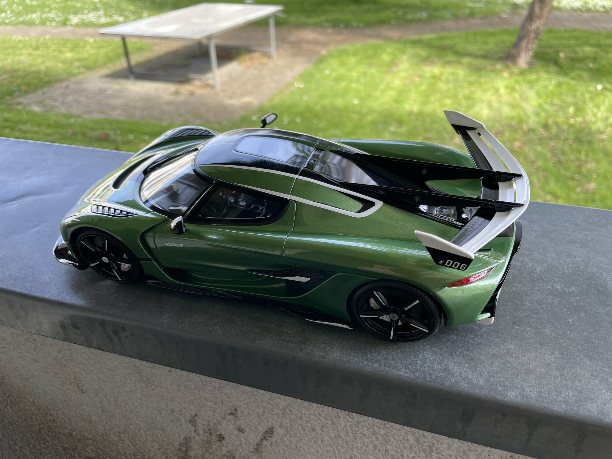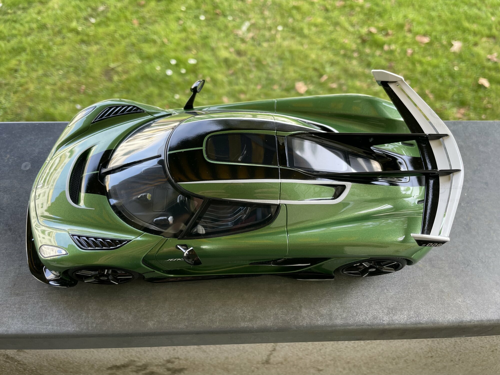 This model is part of a limited edition of just 1,500 pieces worldwide and is a standout in the collection of model enthusiast “Stingrayman”. Even though the body is made of resin, the model feels sturdy and precise, showcasing the quality of GT Spirit. Collectors love resin models for their high level of detail, which is perfectly displayed here. Another neat feature of this model is the replicas of the Jesko's distinctive wheels, which capture the sporty look of the original.