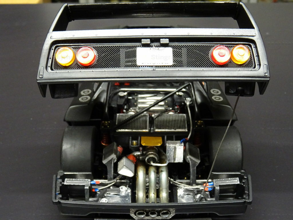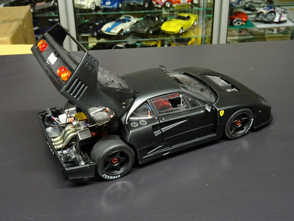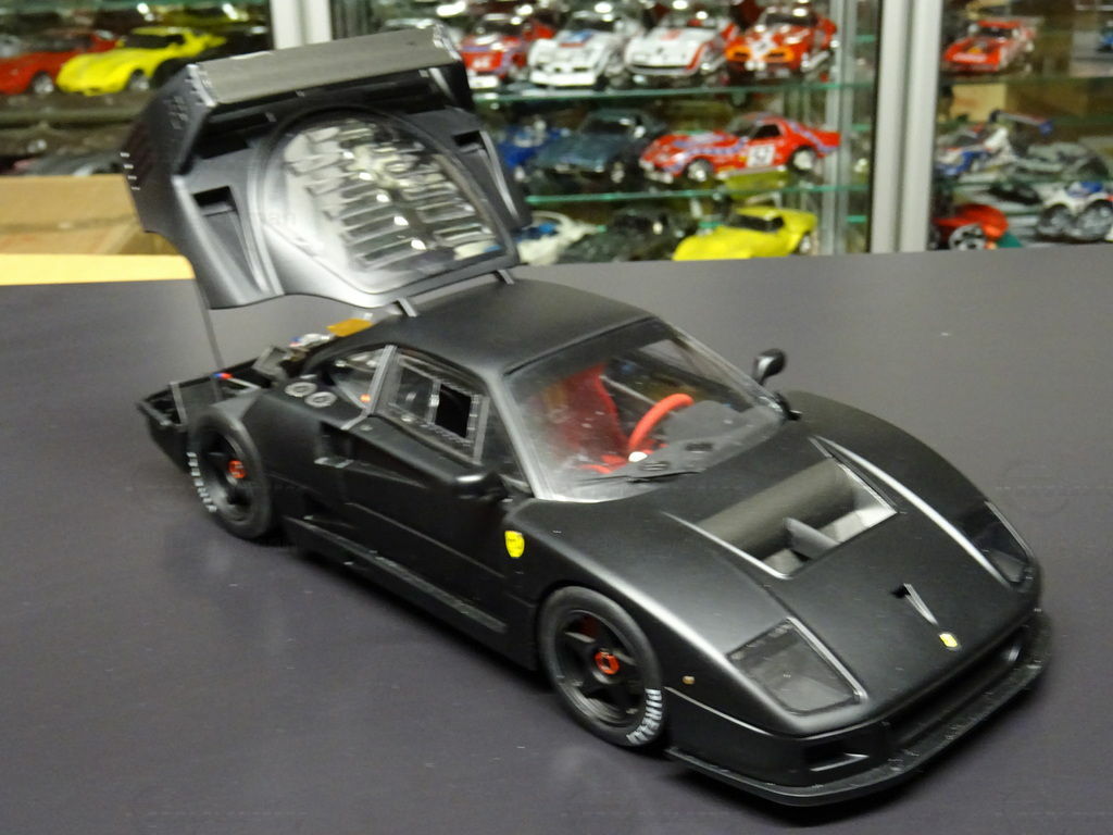 The model by “Stingrayman” features some custom modifications, including individual paintwork and specific details. The matte black paint of the model stands out significantly from the typical red color scheme of the original car, enhancing the aggressive look. The special rims with characteristic red accents are particularly eye-catching. Additionally, the detailed engine block is visible under the opened rear hood, emphasizing the precision and high quality of the miniature. A brief look back at the year of the original's production: In 1987, the birth year of the Ferrari F40, the film "Dirty Dancing" was released, and "Whitney Houston" scored a global hit with "I Wanna Dance with Somebody" – a little historical context to better understand the age and era of the vehicle.