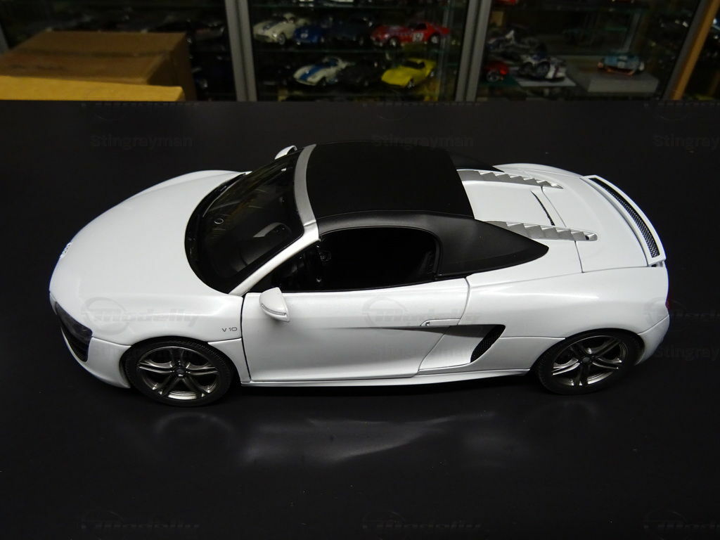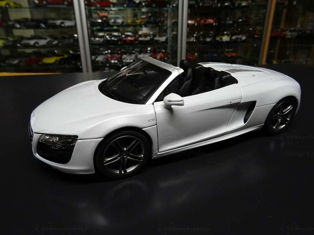 This true-to-life replica of the Audi R8 Spyder V10 5.2 in 1/18 scale is an outstanding addition to any model car collection. The model, part of the collection of Modelly member "Stingrayman," is not only a feast for the eyes but also a testament to the high craftsmanship of Kyosho. This model allows collectors to experience the elegance and performance of the Audi R8 in a new and tangible way. For those with a preference for high-quality model cars, this model is a valuable collector's item that leaves nothing to be desired. The vehicle and its replica are a lasting homage to the engineering and design that has made Audi famous in both the real and miniature worlds.