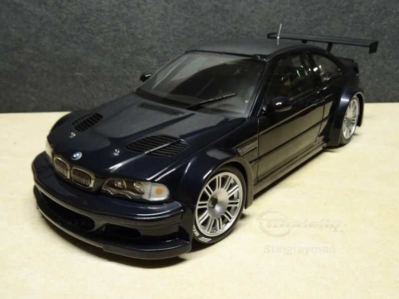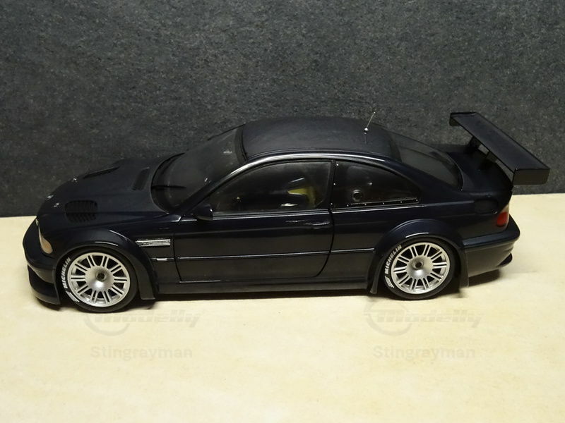 The Minichamps scale model in 1/18 scale presented here is a precise replica of the BMW M3 GTR Street (E46). The miniature collector "Stingrayman" has included this model in his collection. The detail accuracy of this diecast reproduction is impressive. The front of the vehicle is equipped with the characteristic kidney grilles, air intakes, and distinctive headlights. The rear spoiler, special rims, and body lines have been faithfully recreated. These model cars are not only of interest to collectors but also allow for a close examination of the technical and aesthetic features of the original.