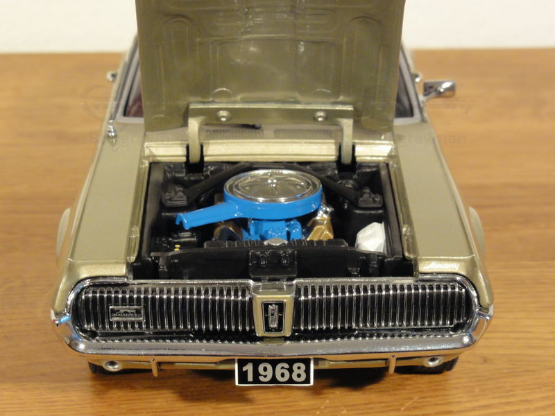 The Mercury Cougar XR7 made its debut in 1967 and belongs to the 1st generation of the model, which was in production from 1967 to 1970. The Cougar was designed as a more luxurious alternative to the Ford Mustang, sharing basic platforms with it. The design was by David Ash and John Aiken, who focused on blending performance and upscale comfort. The Cougar was known for its hidden headlights and distinctive vertical grille slats, faithfully reproduced in the miniature shown.