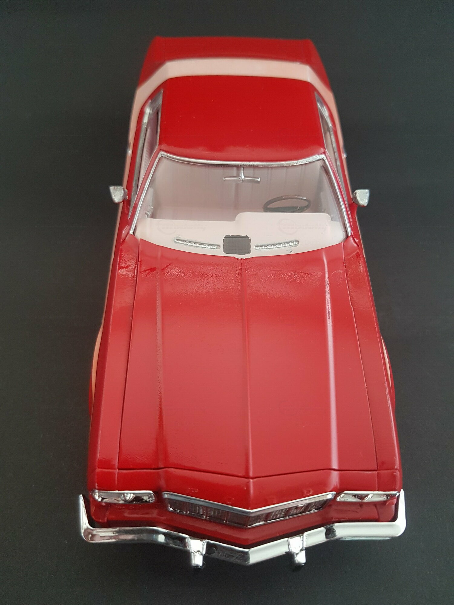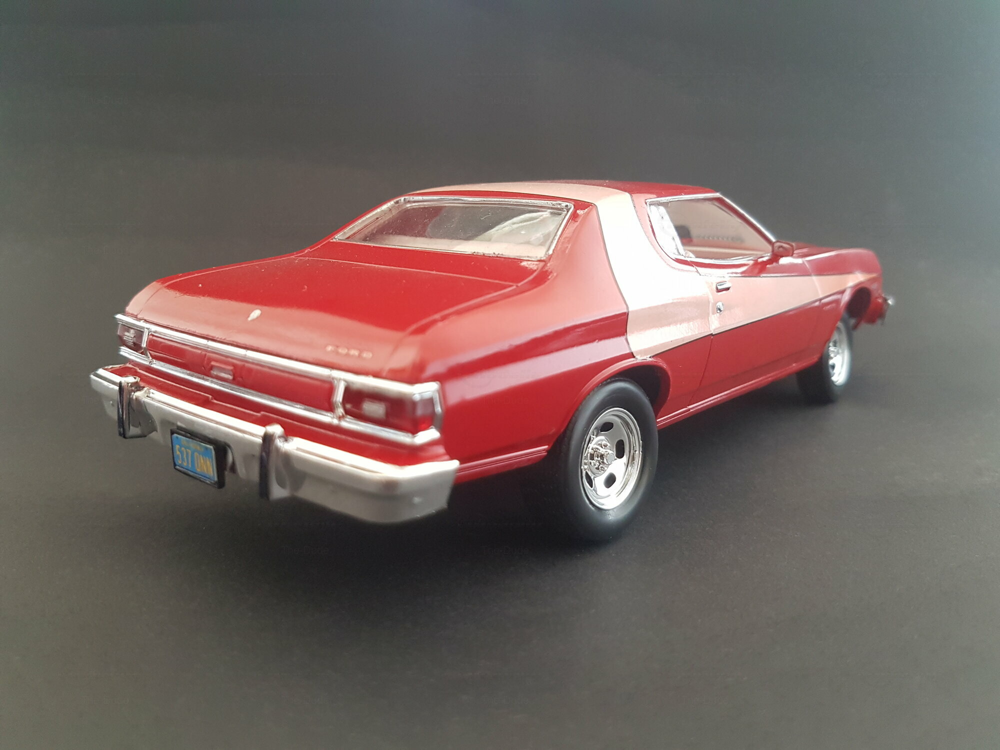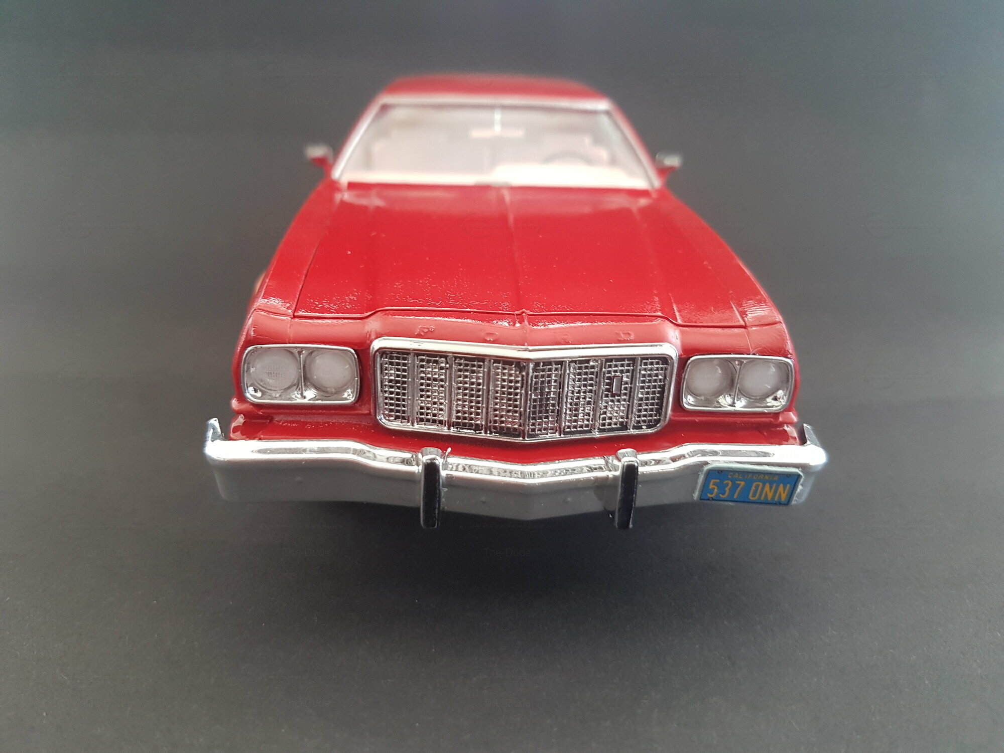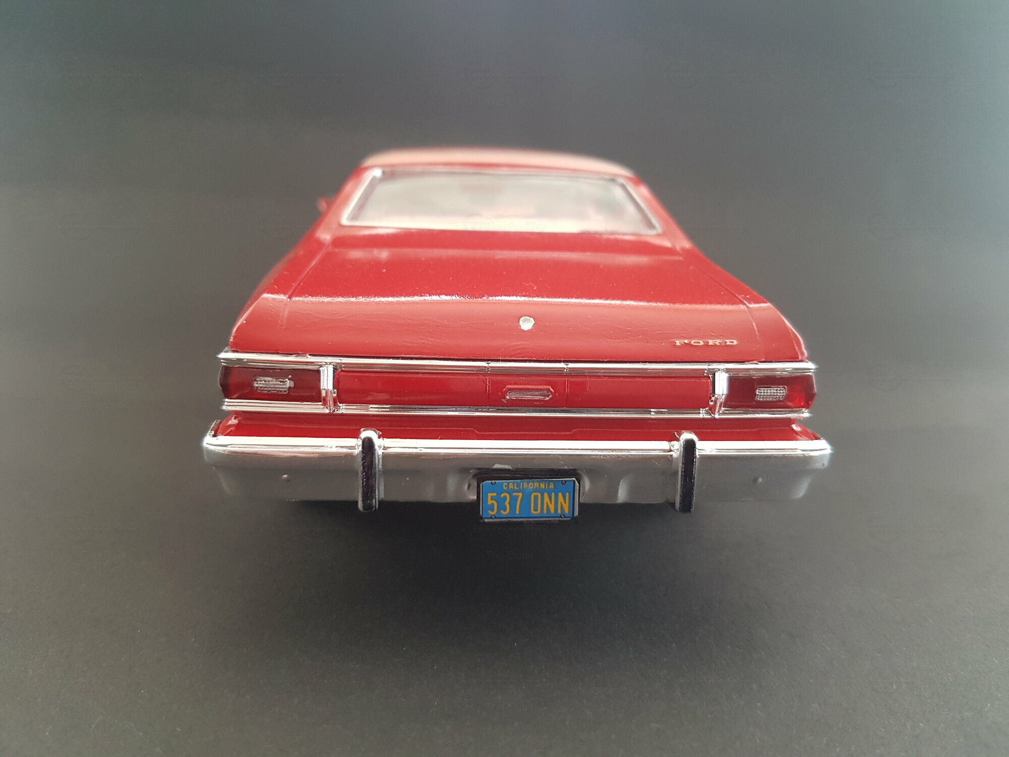 The model car in 1/25 scale, based on the Ford Torino, was manufactured by Revell. It is a precise replica made of plastic material, capturing many details of the original. Noticeable features of this model include accurate proportions and fine craftsmanship. However, it is important to note that this model has been modified and does not represent the original product produced by Revell.