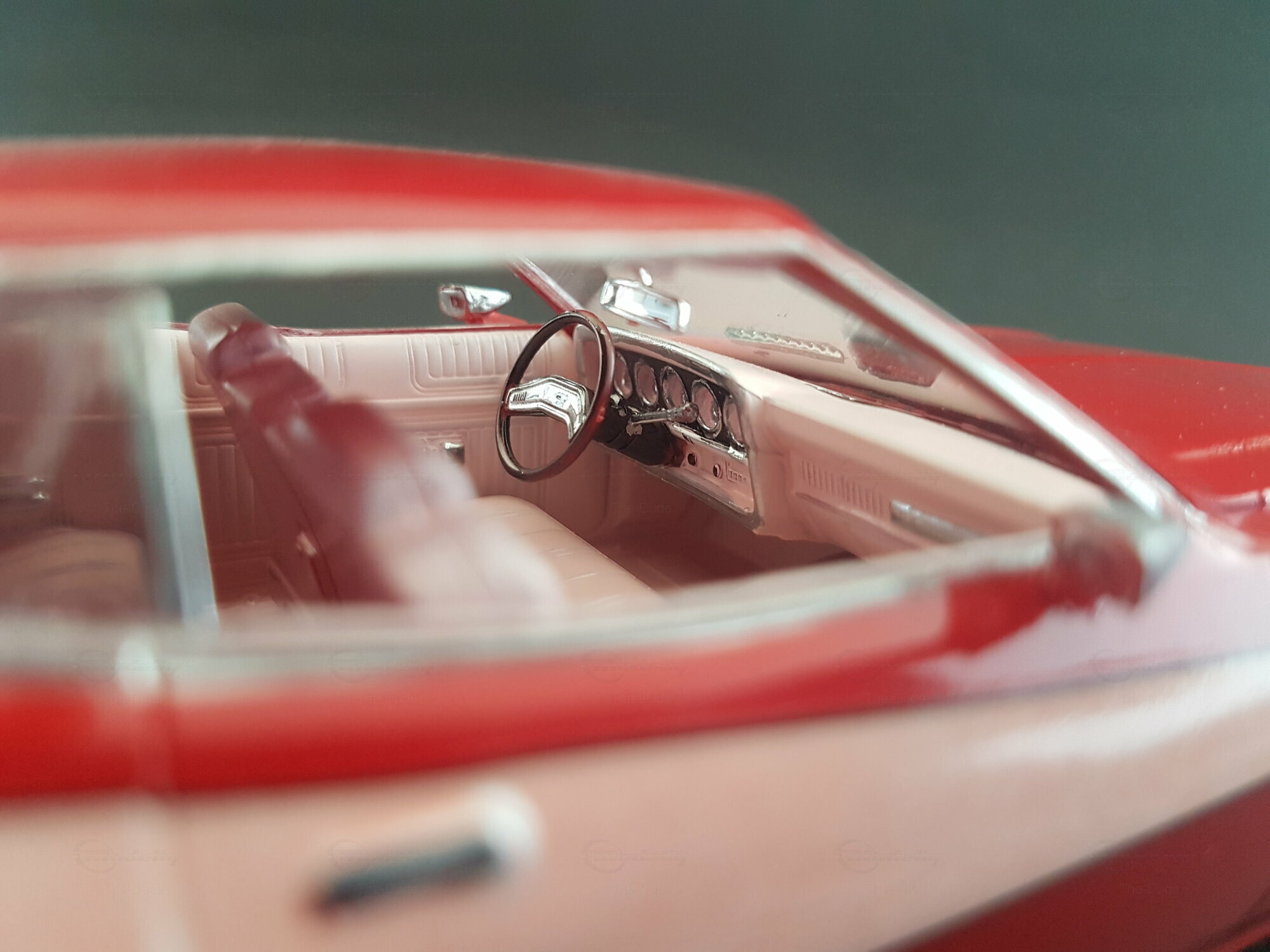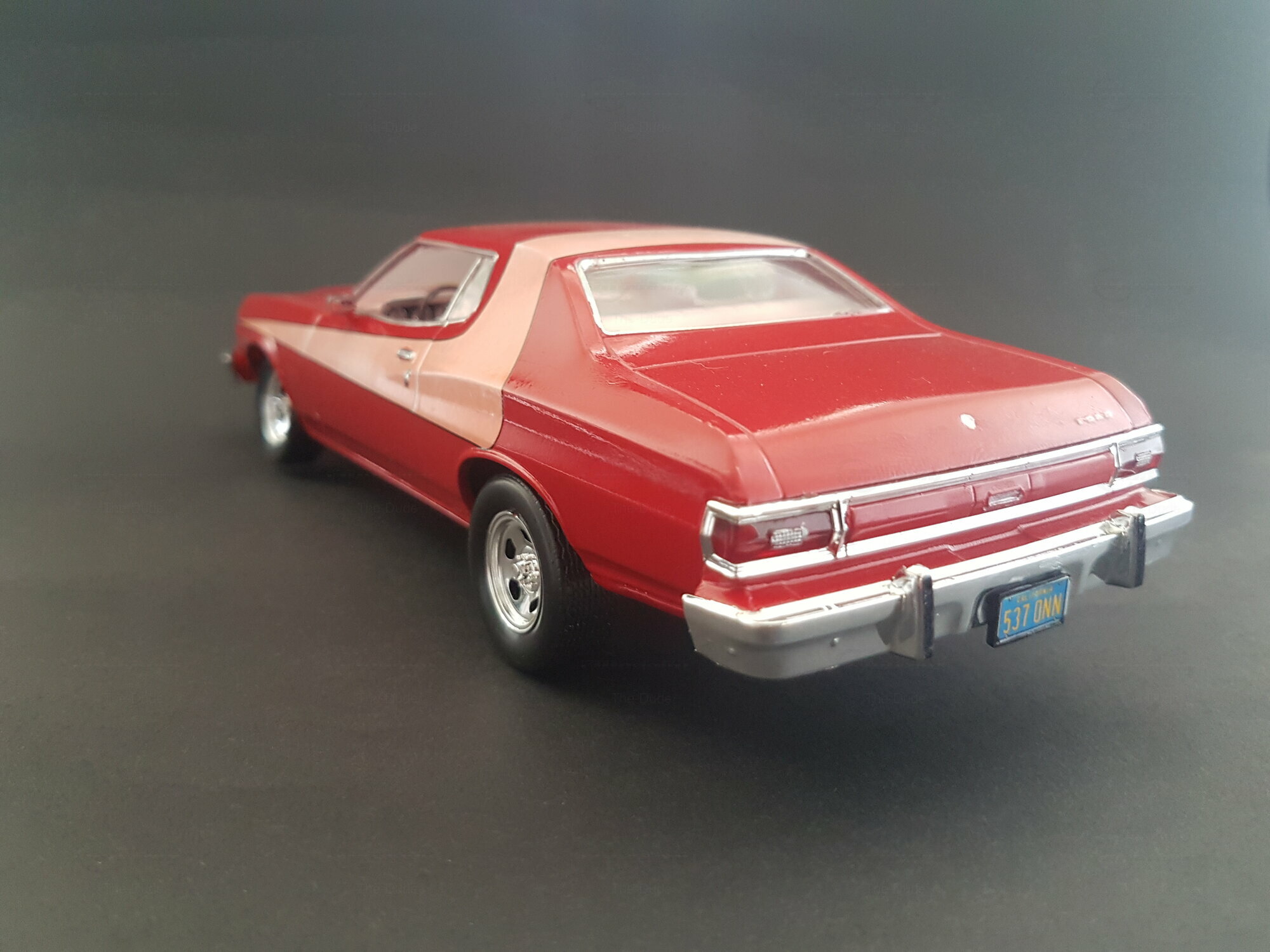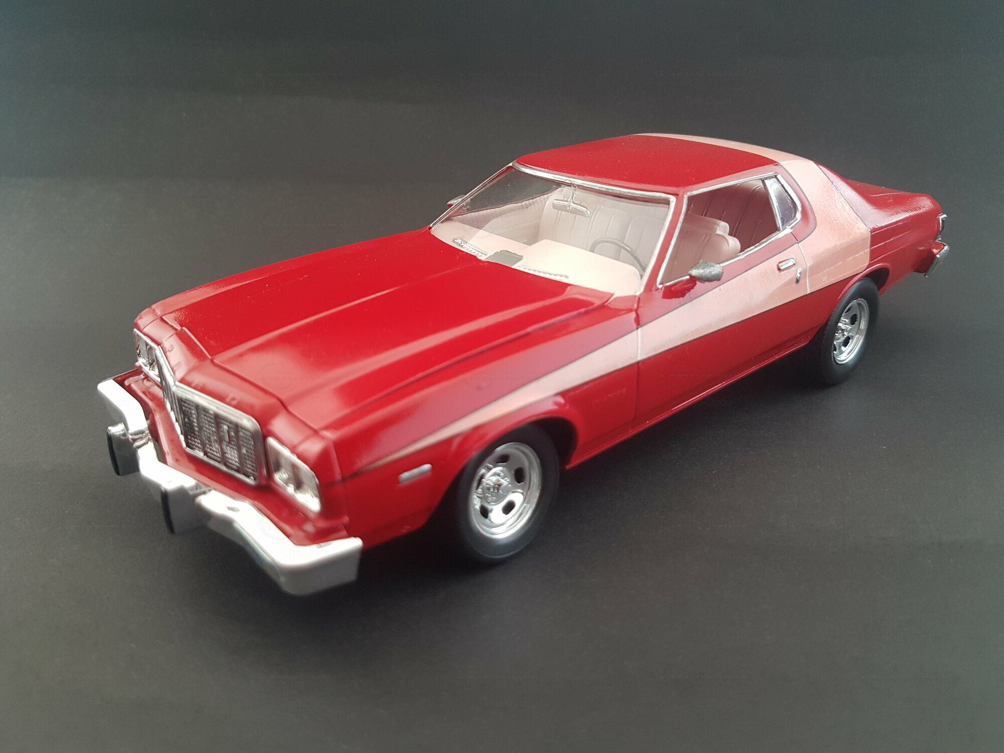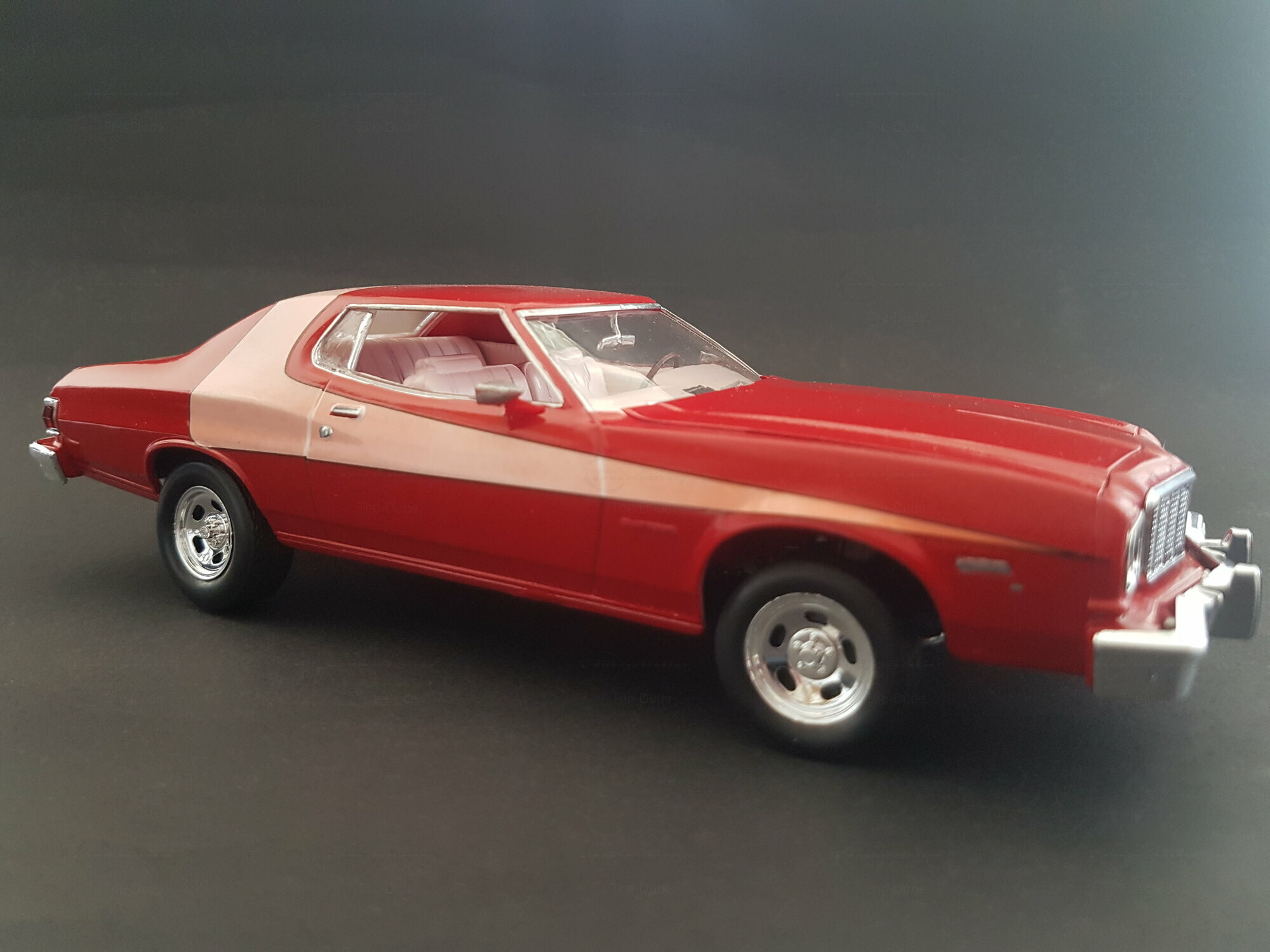 The model car in 1/25 scale, based on the Ford Torino, was manufactured by Revell. It is a precise replica made of plastic material, capturing many details of the original. Noticeable features of this model include accurate proportions and fine craftsmanship. However, it is important to note that this model has been modified and does not represent the original product produced by Revell.