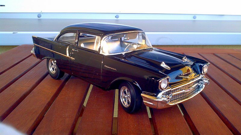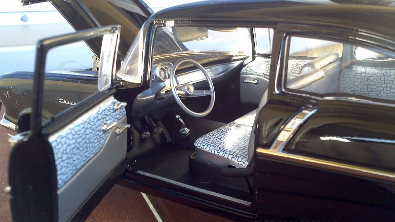 The 1/18 scale model of the Chevrolet 150 Utility Sedan, manufactured by Highway 61, is a remarkable replica of the original. This model, part of the collection of Modelly member "Tinitus," stands out for its high level of detail and quality of craftsmanship. Visible features include functional doors and a detailed reproduction of the interior with authentic-looking dashboards and seats. The model shines with a black painted body, giving the vehicle a classy appearance. The model showcases the iconic shapes and the adorned, chrome front grille. These outstanding features contribute to making the model an attractive addition to any miniature collection.