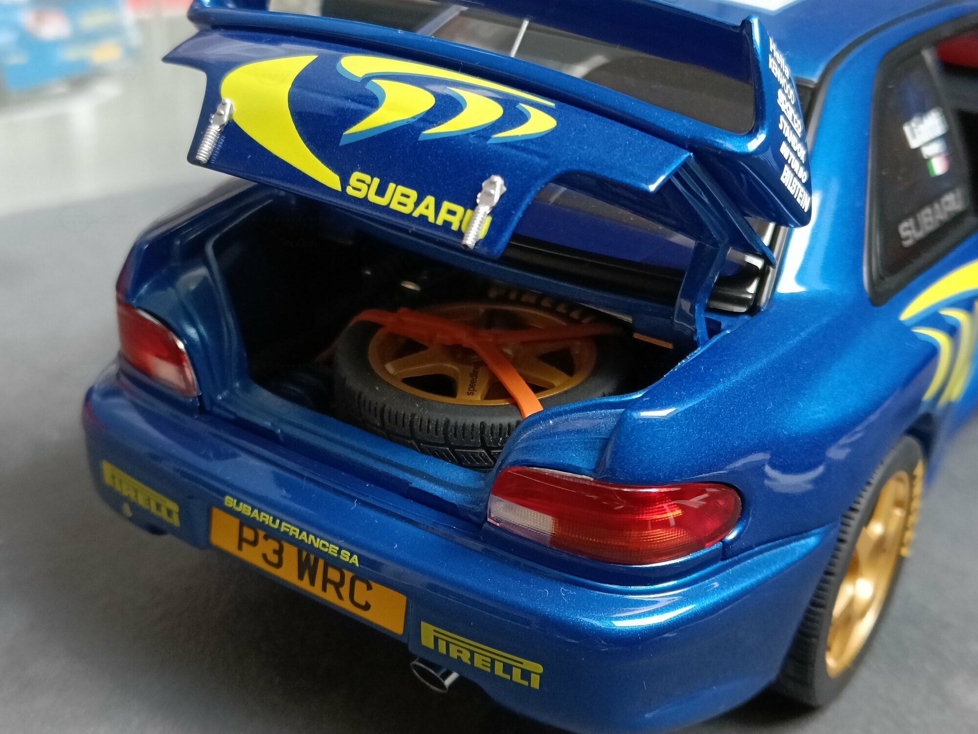 This model car, based on the Subaru Impreza WRC, represents a legendary era in the World Rally Championship. The Subaru Impreza WRC was a vehicle specially tailored for rally racing, built on the second generation of the Subaru Impreza that ran from 1992 to 2000. This gen is known as GC8. It succeeded the Legacy RS, and Subaru developed the Impreza WRC to make the car more competitive and dynamic. The development and design team was led by David Lapworth, a key figure in Subaru’s motorsport history. The technical foundation featured a 2.0-liter (about 122 cubic inches) turbo flat-four engine with all-wheel drive, giving the car outstanding handling and traction, especially on rough terrain.