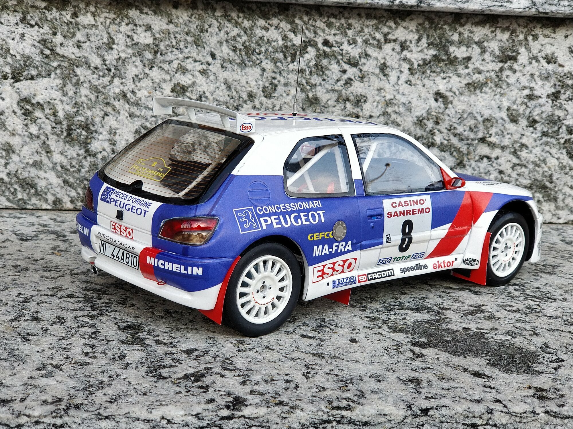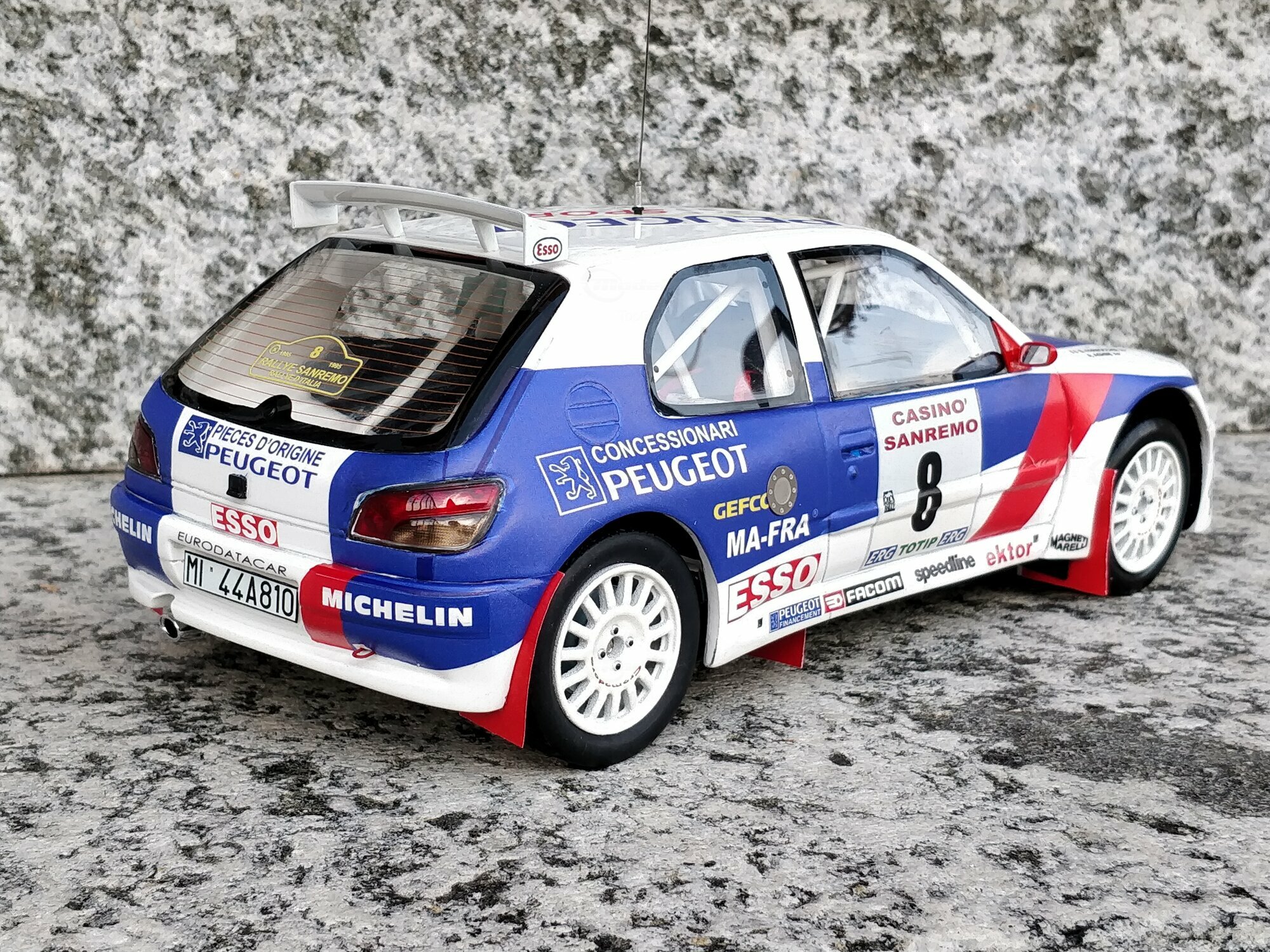 The model car presented here is a 1/18 scale replica by Ottomobile depicting a precise reproduction of the Peugeot 306 Maxi. Made from resin, it offers meticulous detailing and is a perfect addition to any model collection. This model car is a limited edition and one of only 2000 pieces worldwide. It's important to mention that this miniature represents a modified model and is not the exact original product from Ottomobile. The resin material allows for high accuracy and sharpness in capturing the shapes and lines of the original.
