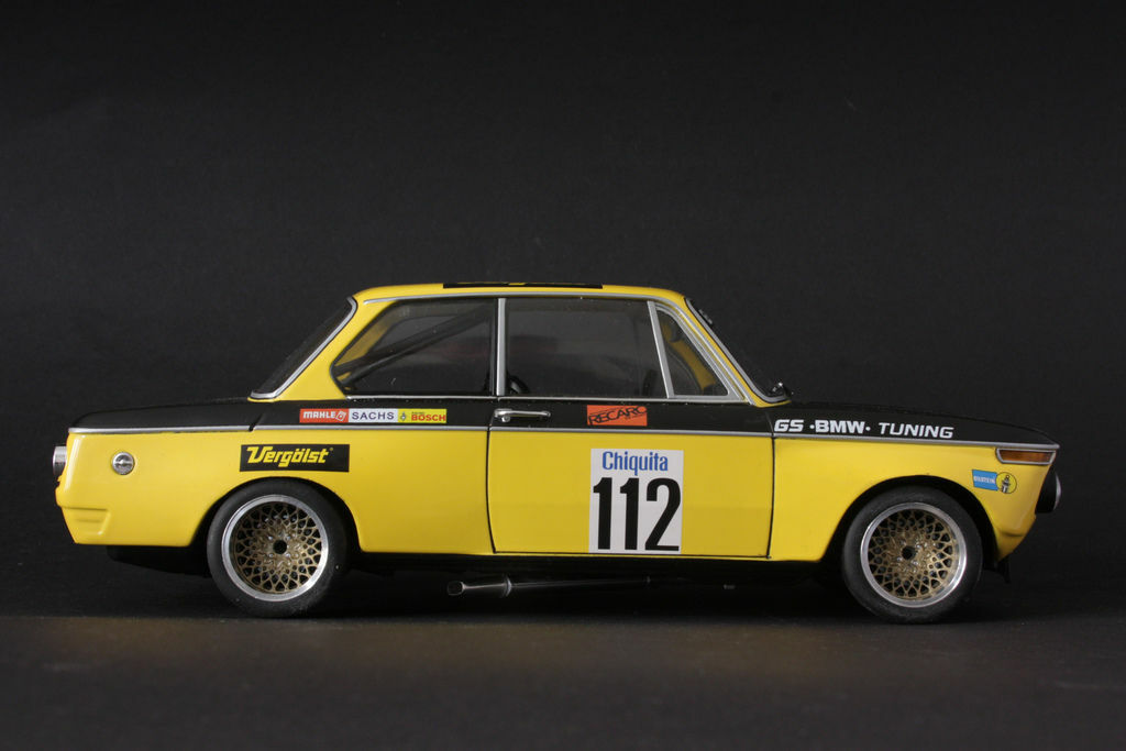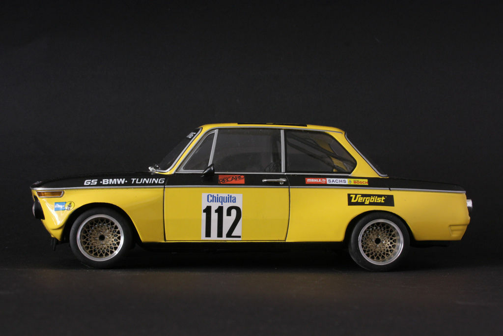 In the photos of the model provided by Modelly member "TrolleyJack," many characteristic details of the original are clearly visible. The doors and hood are authentically depicted, emphasizing the precise craftsmanship of the model. The sponsor decals and authentic racing colors enhance the realistic look. The headlights and grilles are faithfully reproduced, giving the model a striking appearance. This is a real eye-catcher for any collector and a must-have for BMW 2002 Gr.2 enthusiasts.