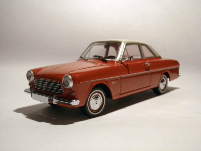 TrolleyJack's collection stands out with the carefully crafted model car of the Ford 12M P4 Coupé in 1/43 scale. This miniature is made by Minichamps and is characterized by detailed craftsmanship and high accuracy. The miniature is made of durable die-cast material, enhancing both its durability and authentic appearance. A notable detail of the model is the two-tone paint job featuring a combination of red and white, perfectly reflecting the retro look of the original. The wheel trims and chrome grille seamlessly blend into the model, emphasizing the precise work that went into creating the Minichamps model.