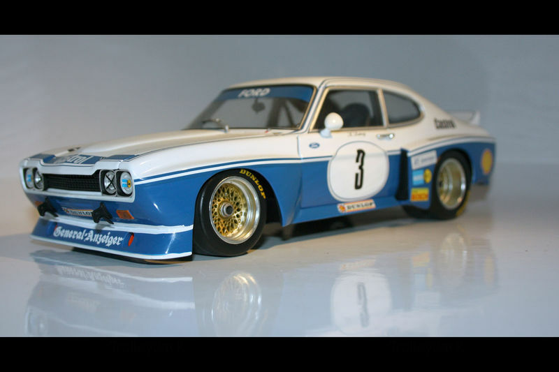 The 1/18 scale model car by Minichamps showcased here is a precise replica of the famous Ford CAPRI RS 3100. This collector's item beautifully captures the details of the original. The model car is part of the collection of Modelly member "TrolleyJack" and is a standout piece for any model car enthusiast. Every element, from the grille and headlights to the sporty rims, is carefully and accurately reproduced. This attention to detail makes the model car a sought-after collectible.