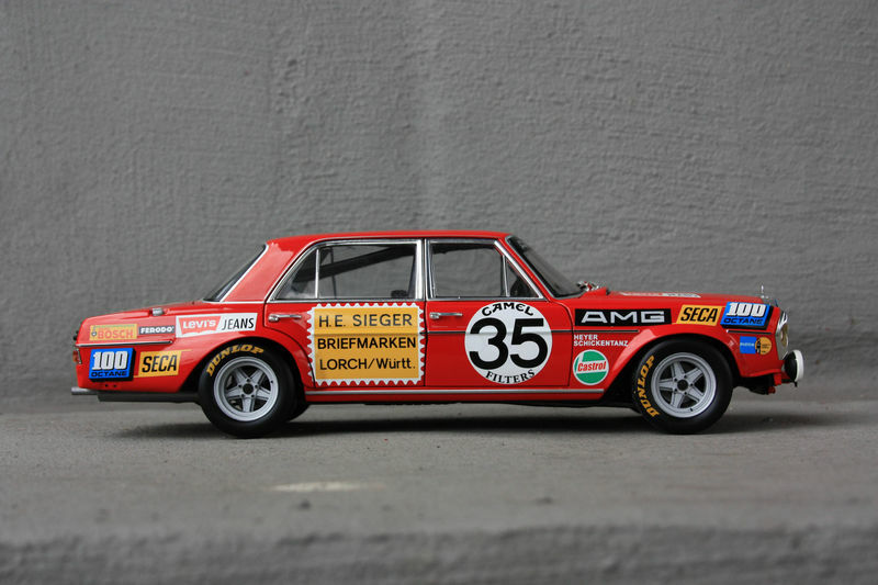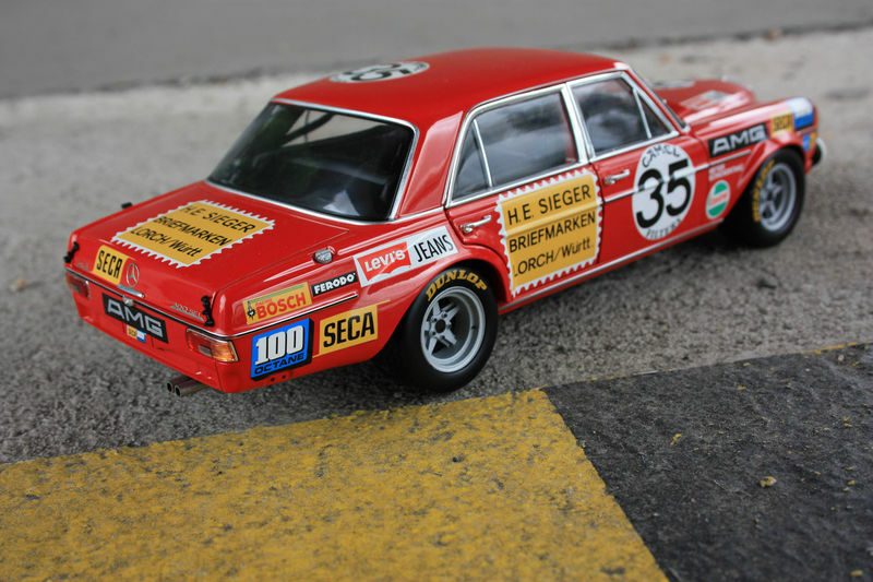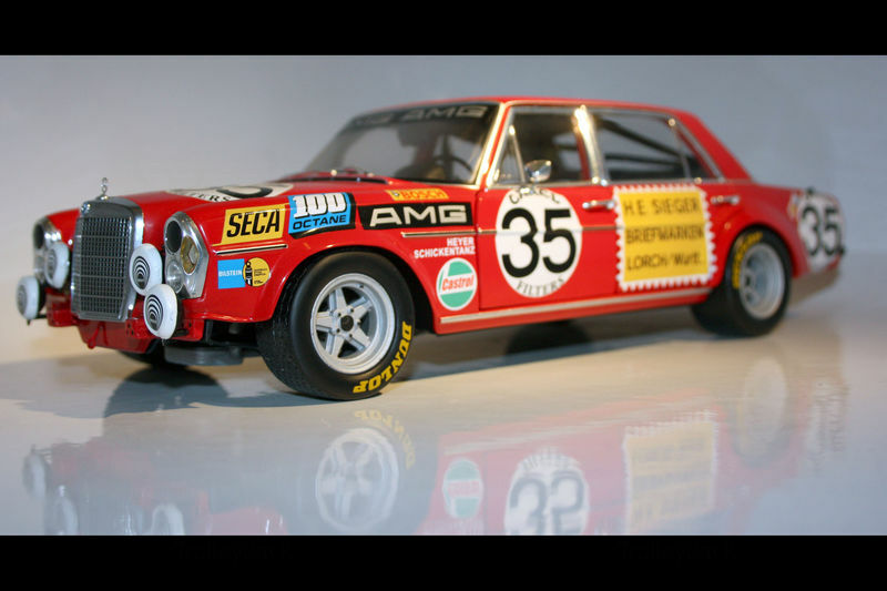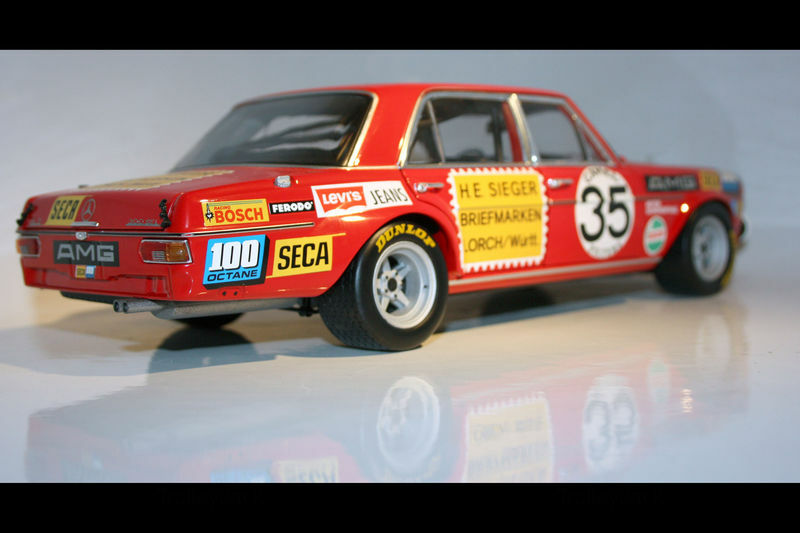 The red paintwork of the model car is eye-catching. The vehicle is adorned with various badges and stickers, meticulously designed, and accurately positioned. The huge AMG lettering above the windshield symbolizes the car's tuning area, while the number 35 prominently stands out on the doors. Every aspect of the model car showcases the passion and expertise of Minichamps. Different color accents like the chrome exhaust pipes and silver rims complete the overall look of the model. Modelly member "TrolleyJack" can enjoy a truly exceptional collector's item that possesses both historical value and perfect attention to detail.