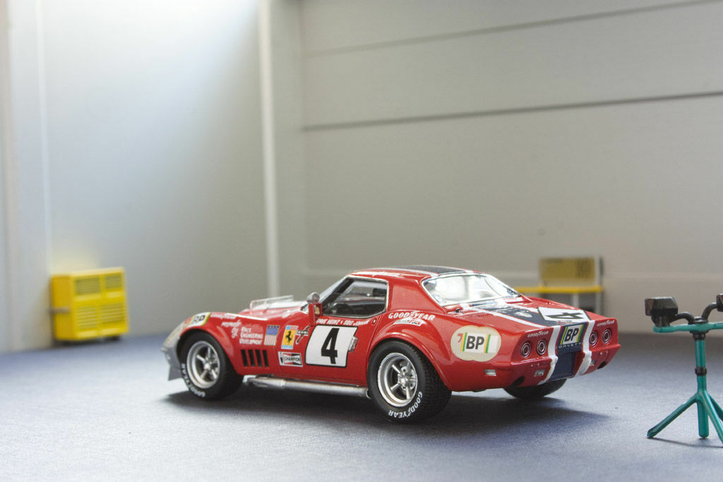 The 1/43 scale model presented here, manufactured by TSM Model, is a precise replica of the renowned Chevrolet Corvette C3 L88 race car. This model in 1/43 scale, residing in the collection of Modelly member "TrolleyJack", reflects the distinctive features and details of the original. The vibrant red paint with white stripes across the hood and roof provides a striking appearance. Additionally, various sponsor decals, such as from BP and Goodyear, are prominently displayed on the body. These meticulous details make the model exceptionally authentic and appealing to collectors.