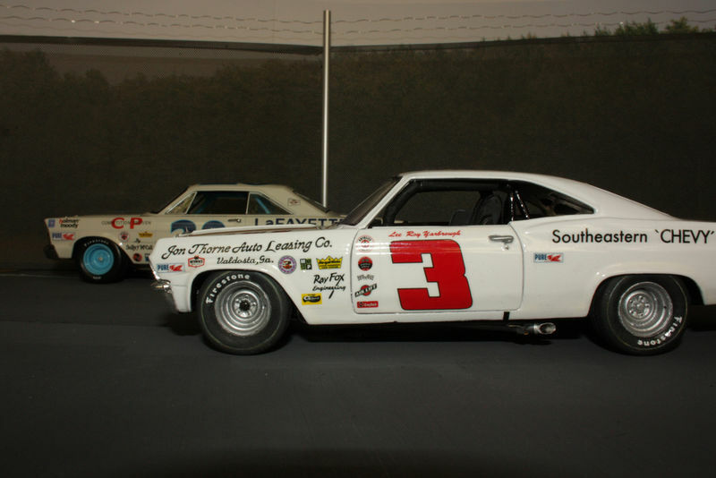 This 1/24 scale model by Welly showcases a detailed replica with accurate sponsor logos such as Jim Thorne Auto Leasing Co. and Southeastern "CHEVY" Dealers. The names Roy Fox and PUROLATOR are also visible. The color scheme is predominantly white with a large red number 3 on the doors, giving the car an authentic Nascar look. The modifications on this model underscore the dedication and attention to detail that went into its creation.