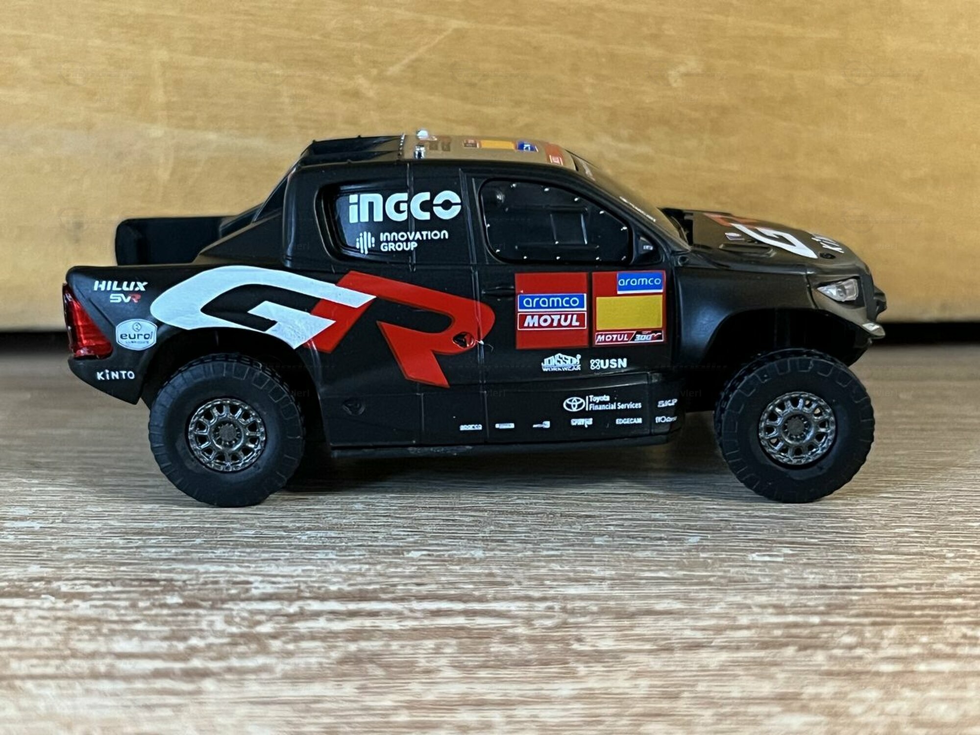 Paint scheme is the one used by official W2RC Toyota team since Dakar rally 2024, but body of the car is more likely the one of the car used starting Dakar rally 2021, this version was called "GR DKR HILUX EVO T1+" instead of "T1U" which introduced an even wider body (front and rear wings).