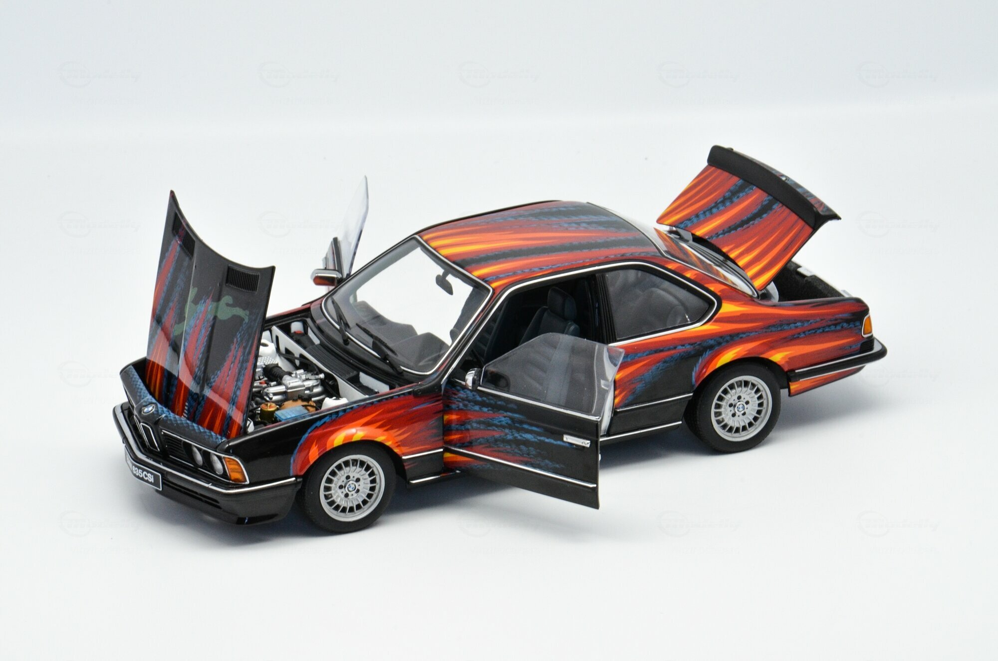 The 1/18 scale model from AUTOart is based on the original BMW 635 CSi (E24) Art Car by Ernst Fuchs. The model is made from die-cast material, providing stability and detailed accuracy. The multitude of details, like the faithfully recreated distinctive design of the wheels and the meticulous paintwork, make it a sought-after collector's item. Each piece is part of a Limited Edition, making this model particularly exclusive. From the photos in the collection of Modelly member "Vinzmodelcars," the precision of the replica is clearly evident. The doors and hood are functional, and the interior of the model showcases the luxurious interior of the original.