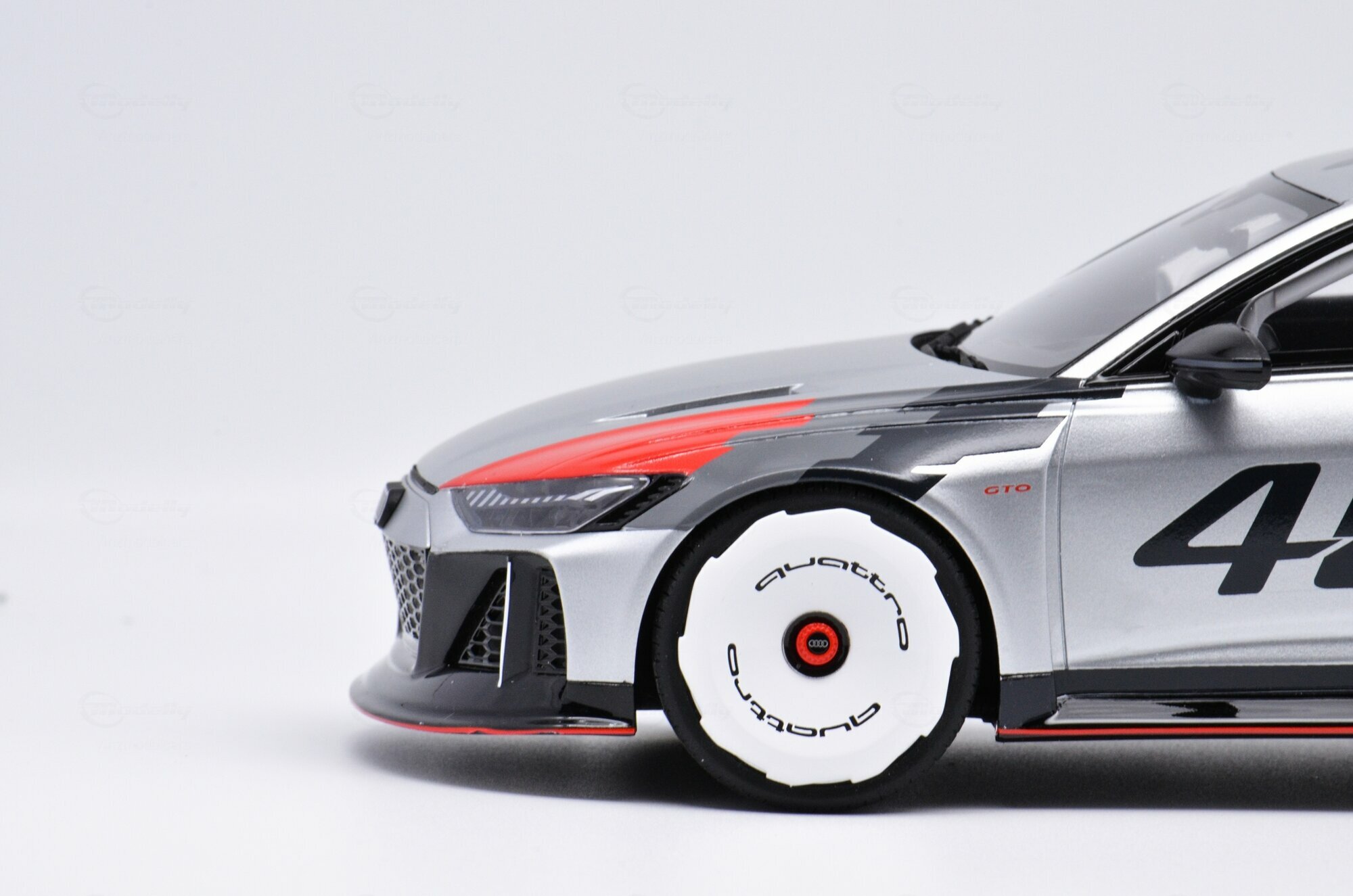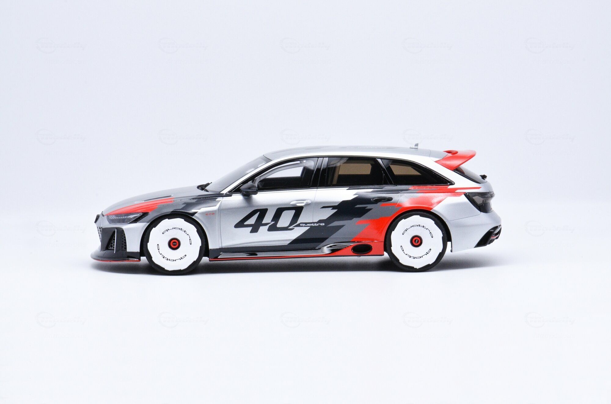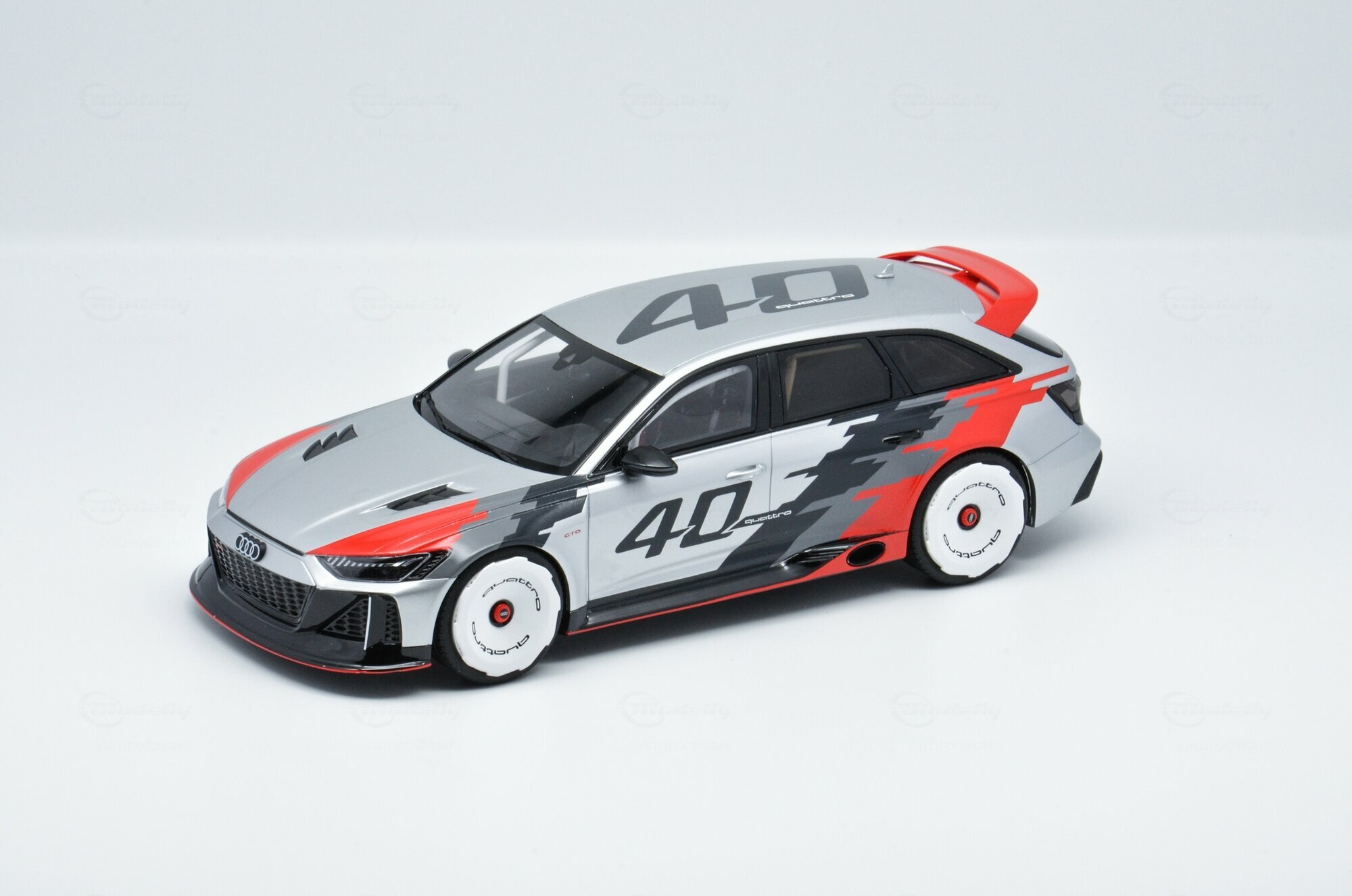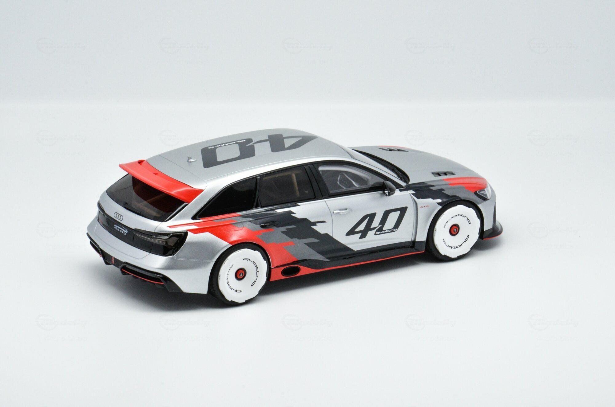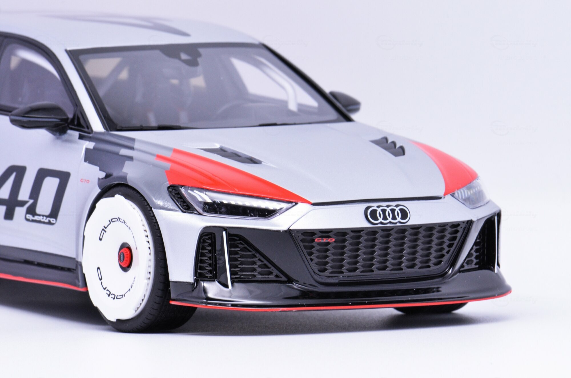 The 1/18 scale model by GT Spirit stands out for its attention to detail and high-quality craftsmanship. A striking feature of the model is the special paint job that captures the unique look of the Audi RS 6 (C8) GTO Concept. The skillful application of color gradients and clean lines enhances the sporty character of the vehicle. Specific design elements like the numbered "40 Years of Quattro" badges are faithfully reproduced on the model. This model is more than just a collectible; it is a piece of automotive history that celebrates Audi's engineering prowess and design sensibility.