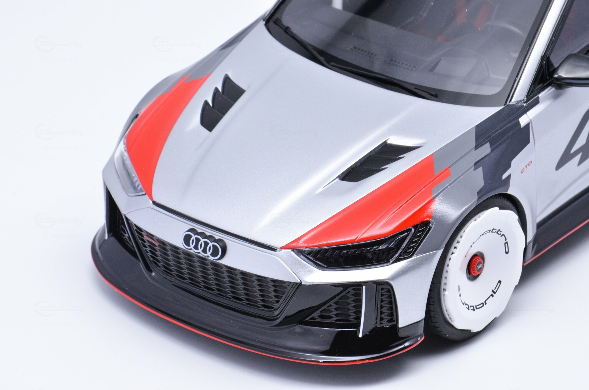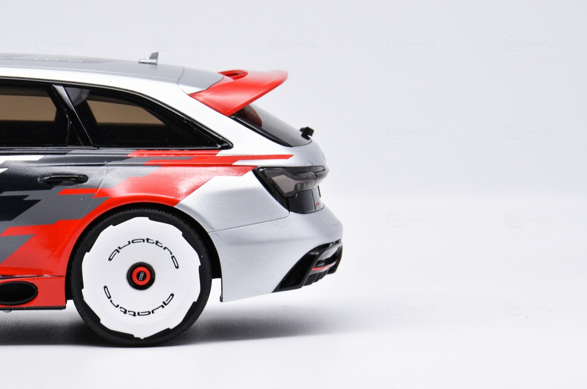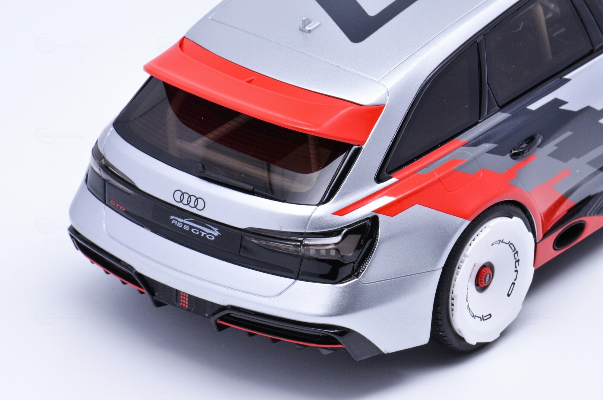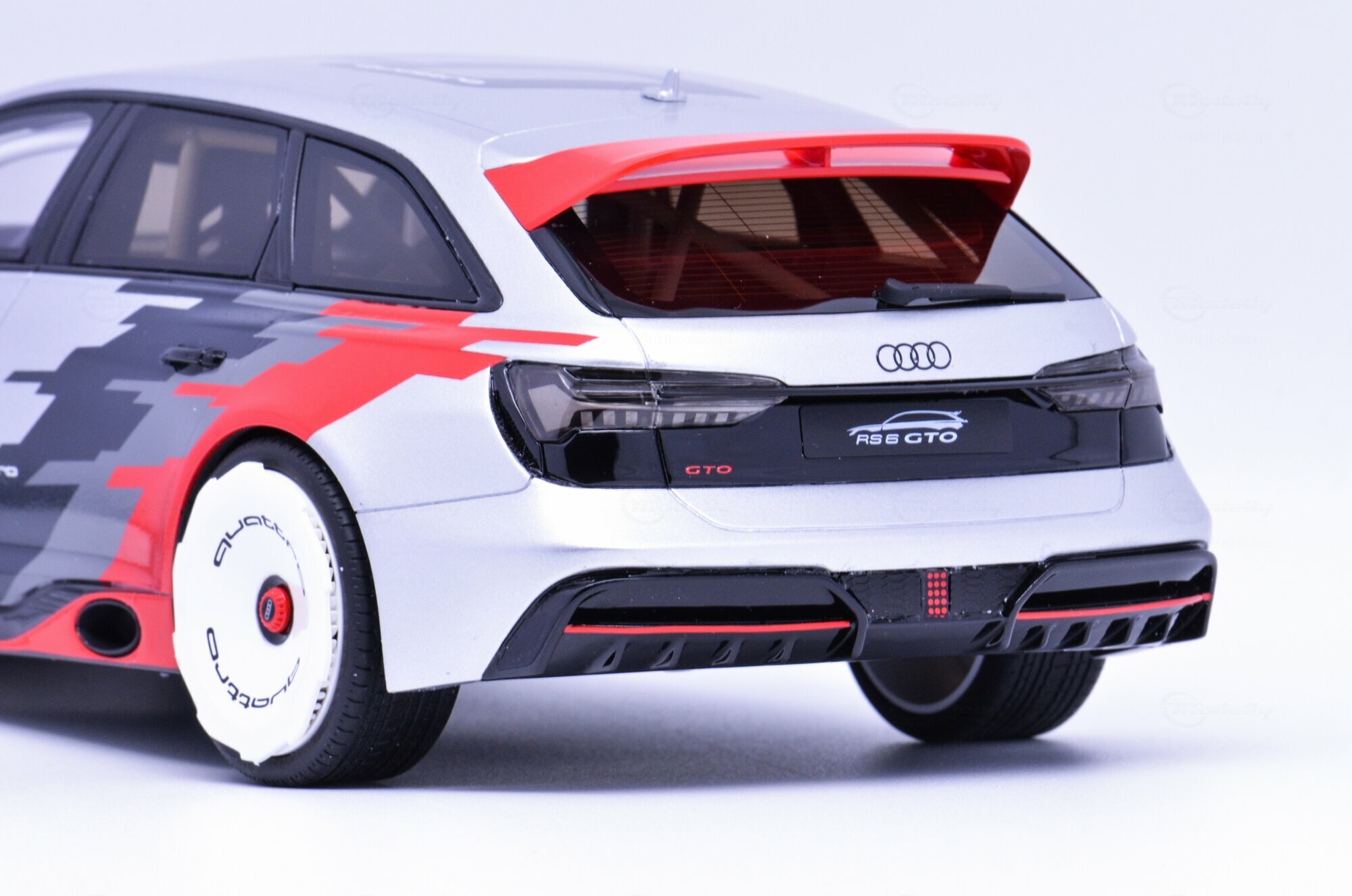 For model car collectors worldwide, GT Spirit offers an impressive 1/18 scale model of the Audi RS 6 (C8) GTO Concept. This model is an exclusive limited edition (999 pieces) known for its detailed replica of the original. Made of high-quality resin material, the model car is both sturdy and elegant, a must-have for any serious collector. The elaborate paint job, true to the original, stands out. The color combination of silver, red, and black gives the model a dynamic and modern look.