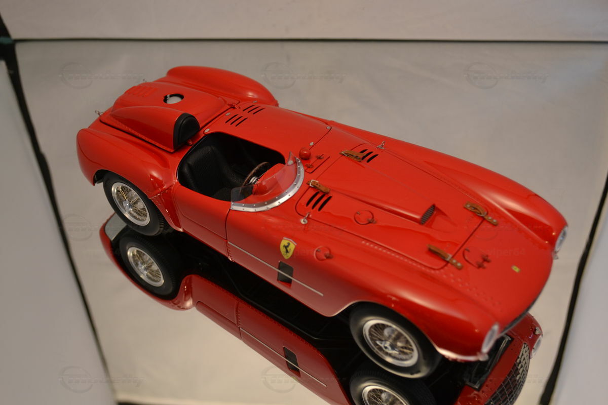 The 1/18 scale model car presented here was crafted by BBR Models and is a small masterpiece for collectors. It is based on Diecast material, ensuring high detail accuracy and long durability. The model showcases a faithful replica of the Ferrari 375 Plus Stradale and is part of the collection of Modelly member "viper64". The paintwork of the model is brand-typical in a vibrant red shade that perfectly captures the original racing car color. The model exhibits all the distinctive features of the original: the Ferrari logo, the ventilation slots, and the fine leather details in the interior. Every element, from the windshield wipers to the door handles, has been crafted with utmost precision.