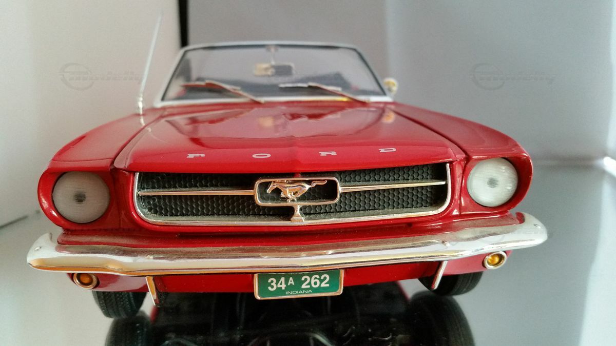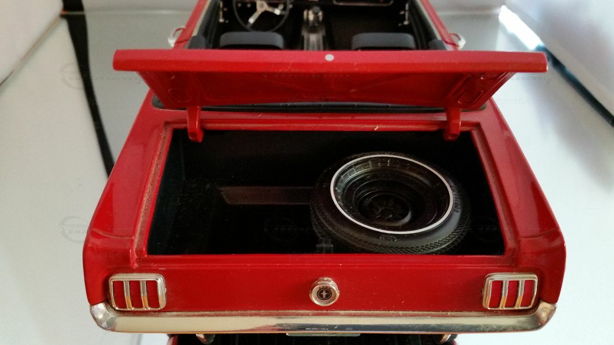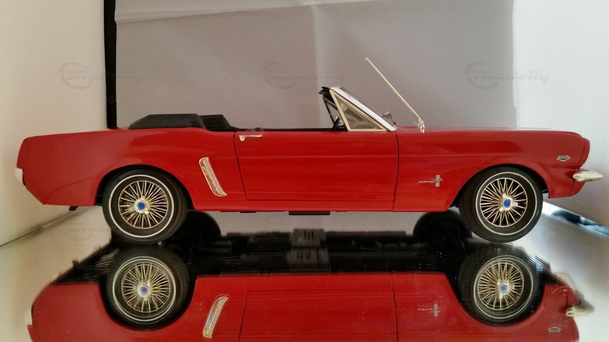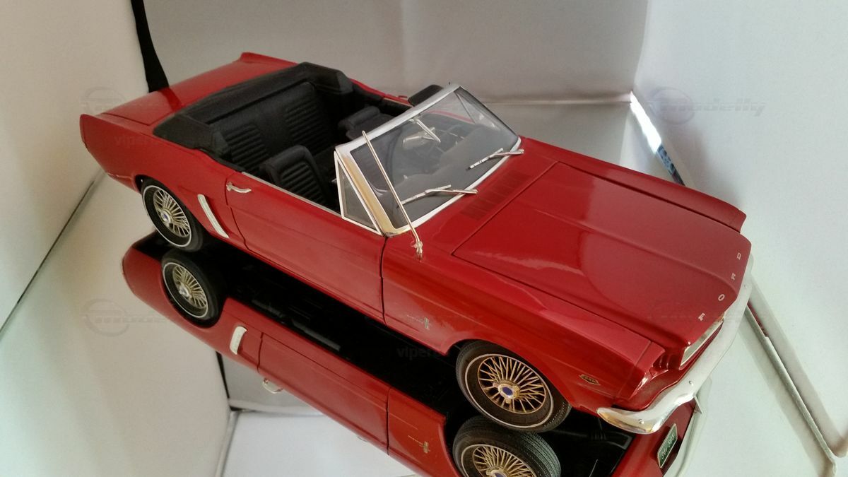 The 1/12 scale model shown here, manufactured by Ertl, is based on the iconic first-generation Ford Mustang Convertible. The first generation of this vehicle was produced from 1964 to 1973 and quickly gained cult status. Developed under the leadership of the then General Manager Lee Iacocca and Chief Engineer Donald N. Frey, the Ford Mustang quickly became a symbol of performance and style in automotive history. Its predecessor was the Ford Falcon, whose platform formed the basis for the Mustang. In the 1960s, the Mustang was the first vehicle in the so-called Pony-Car class, which shaped a new category of vehicles.