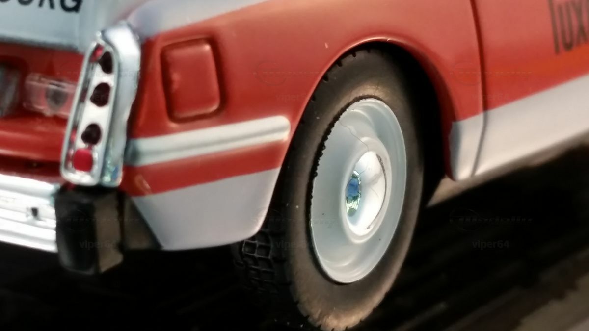 Looking at the photos of this 1/43 model by Norev, you can see the high-quality craftsmanship and attention to detail. The vehicle showcases finely crafted details like the bumpers, side moldings, and the distinctive front view of the second generation Citroen ID 19. The Red-White paint job is an authentic reproduction with a glossy finish. The luggage rack mounted on the roof adds a special touch to the model. Every smallest detail, from the grille to the headlights, is accurately replicated, making this model a must-have for collectors and classic car enthusiasts.