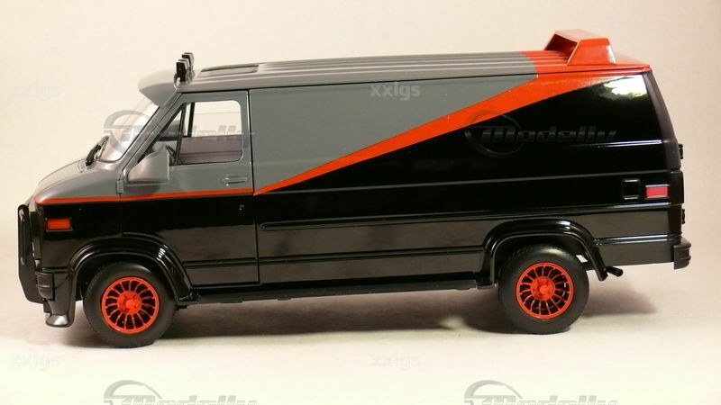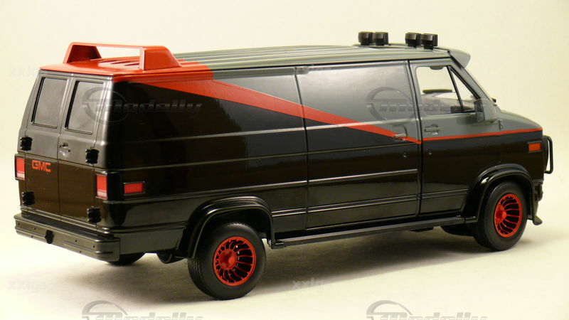The beauty of this 1/18 scale model lies in the eye of the beholder. From the sharp lines of the body to the intricate decals and realistic proportions, this model is a standout for any collector. Various elements like the side mirrors, front suspension, and even the small antenna on the roof are authentically replicated. The color combination of glossy black and bright red, along with the distinctive air intakes, give the model an authentic look. There are speculations that the inspiration for this model, given its specific paint job and red wheels, might be associated with a well-known film or TV series. The reliability and aesthetic appeal of the GMC Vandura in its miniature version are undeniably a highlight for model car enthusiasts and fans of unique vehicle designs.