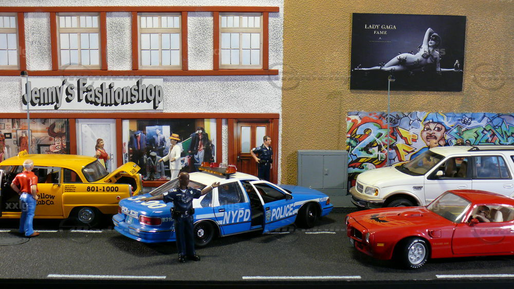Das Modell steht in einem Diorama "Straßenscene NY" und ist im Einsatz.