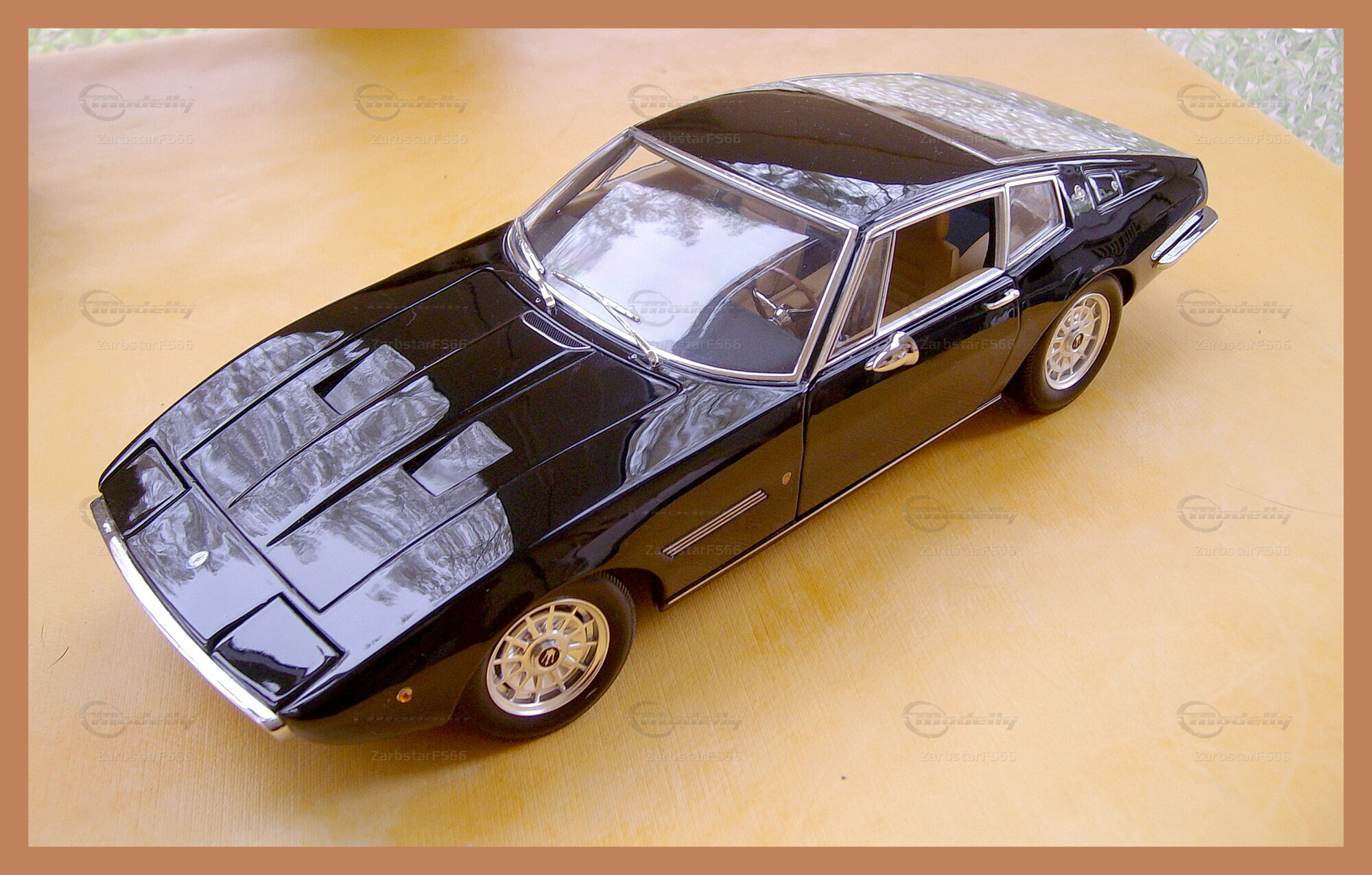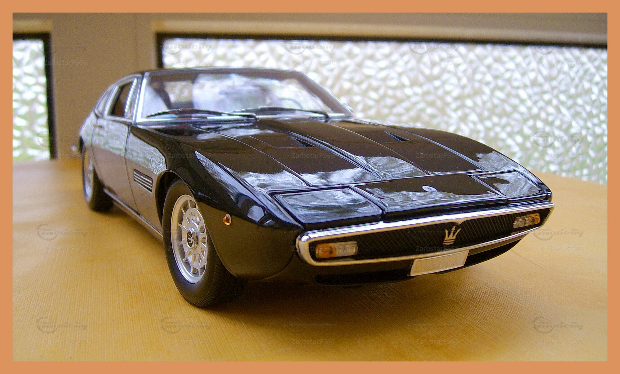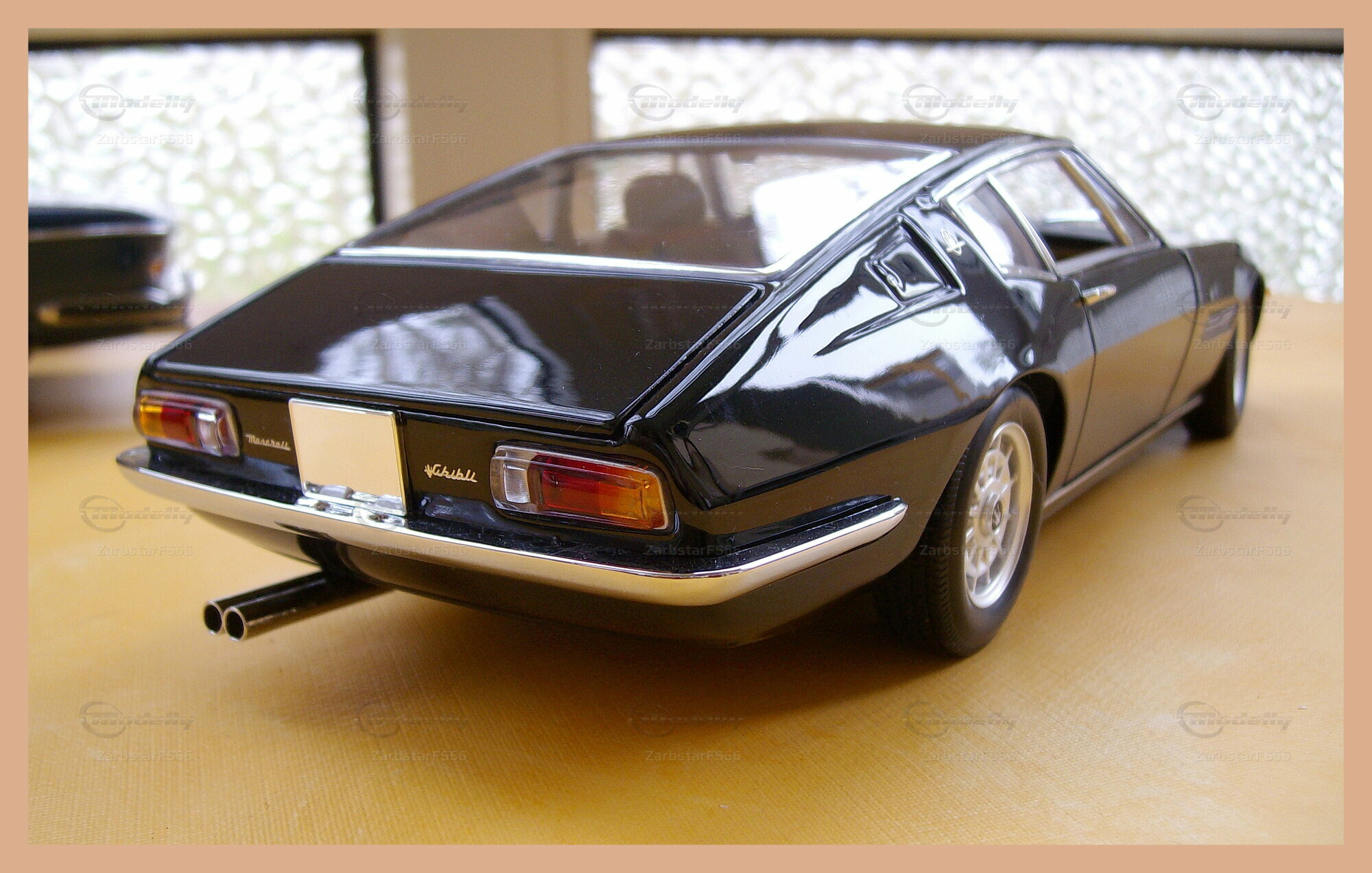 The model car shown is based on the Maserati Ghibli, a legendary sports car that first hit the market in the late 1960s. This 1/18 scale model was manufactured by AUTOart and is part of the collection of Modelly member "ZarbstarFS66". This miniature, made of high-quality diecast material, represents a detailed replica of an automotive classic.