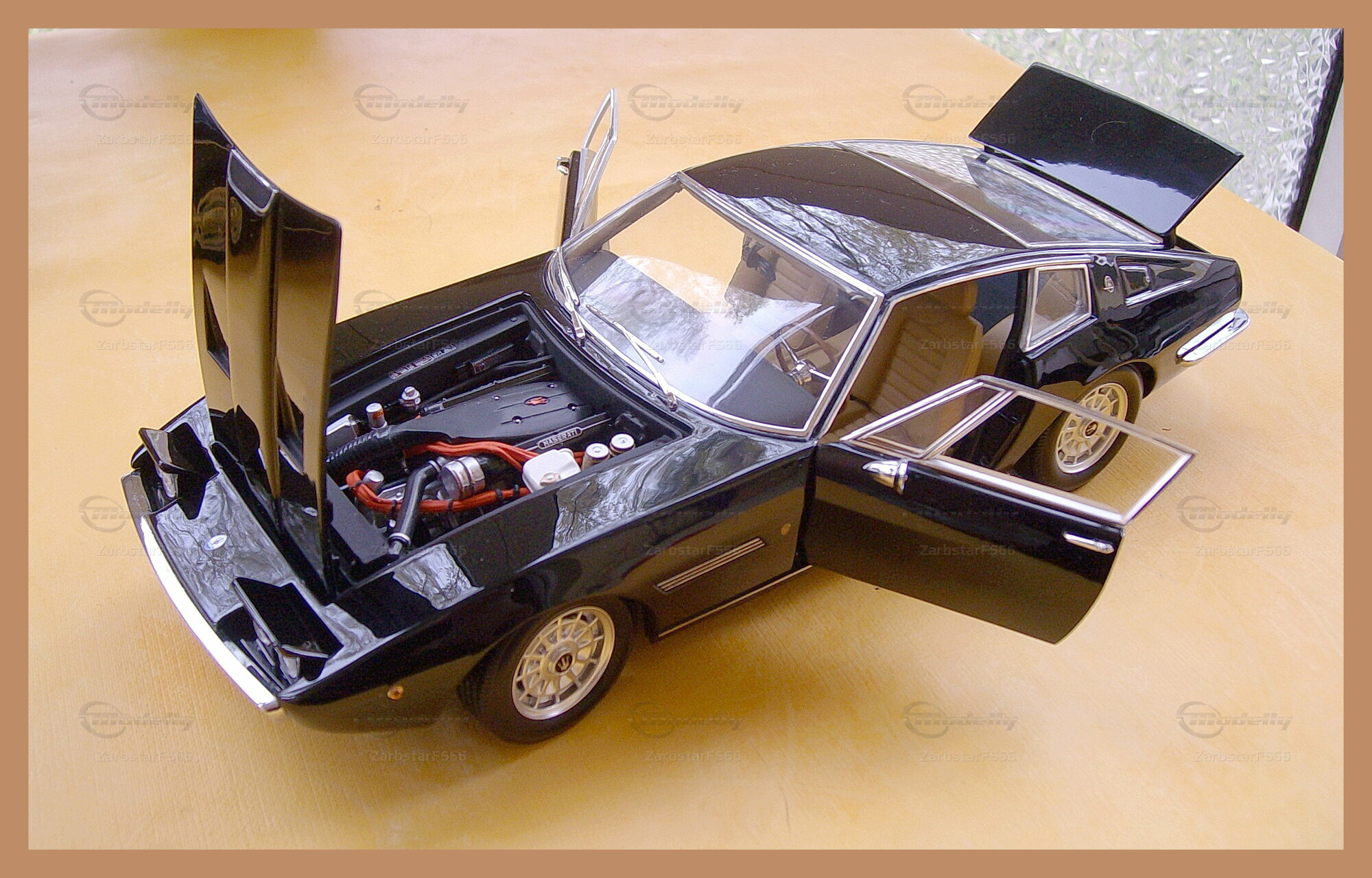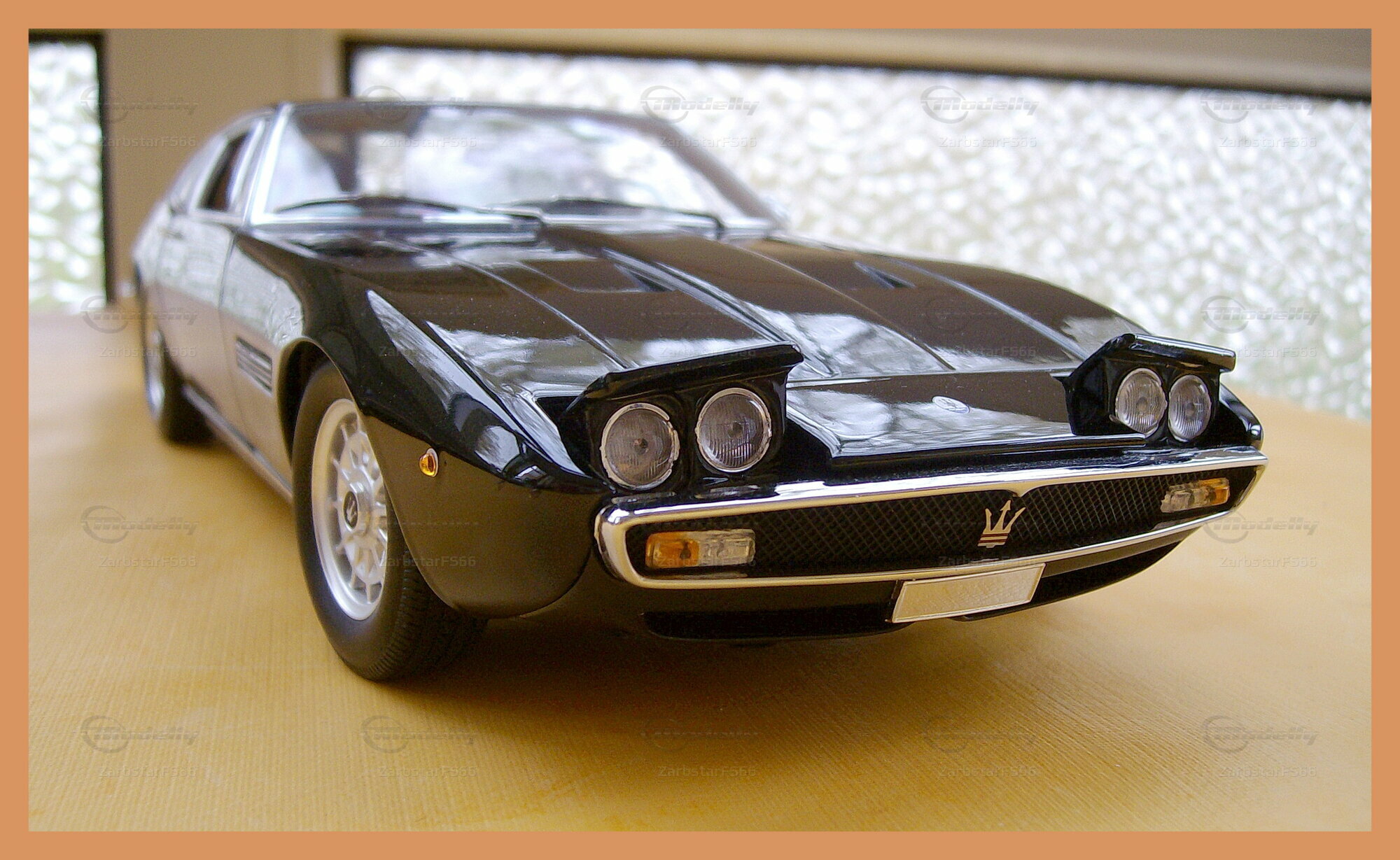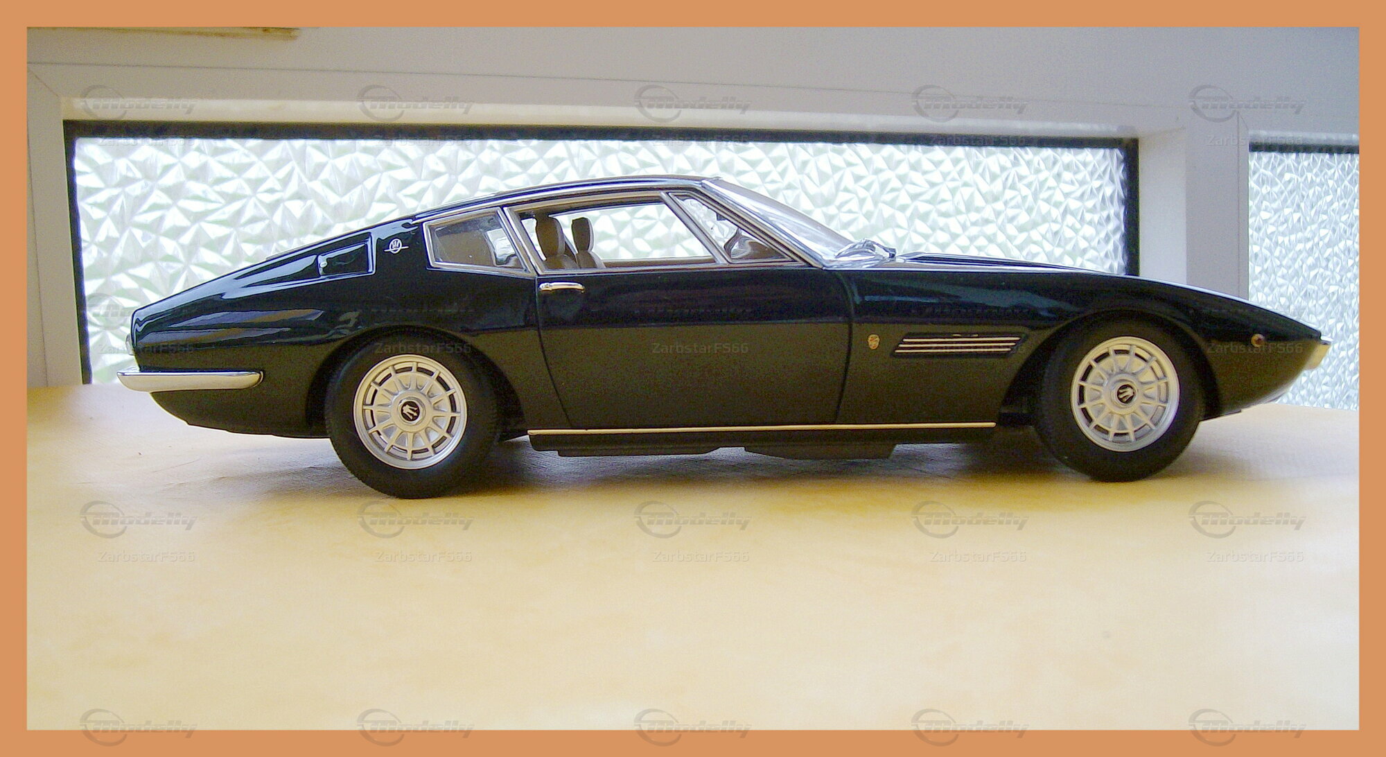 The model car shown is based on the Maserati Ghibli, a legendary sports car that first hit the market in the late 1960s. This 1/18 scale model was manufactured by AUTOart and is part of the collection of Modelly member "ZarbstarFS66". This miniature, made of high-quality diecast material, represents a detailed replica of an automotive classic.