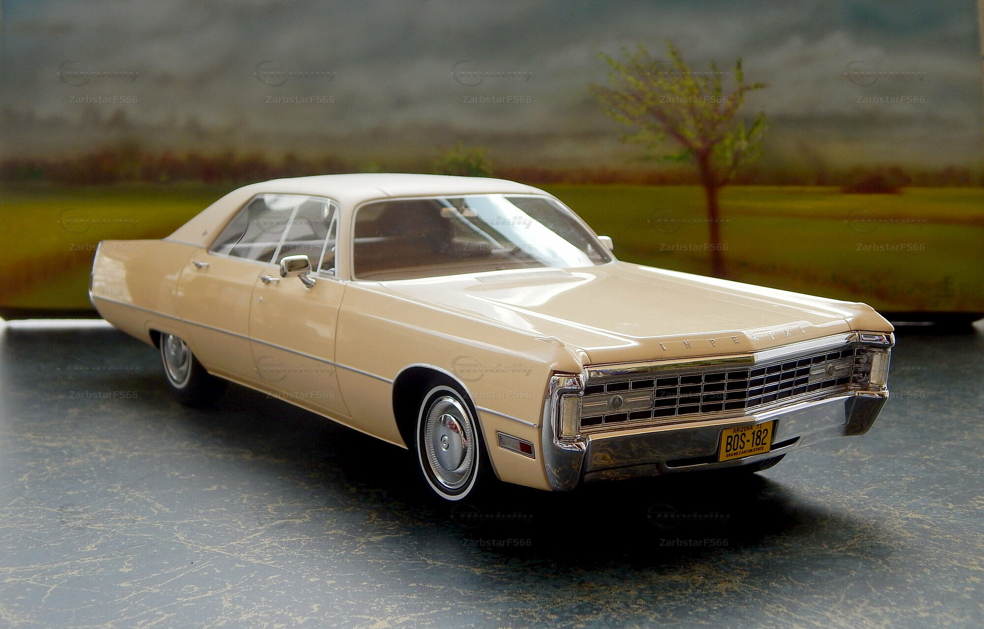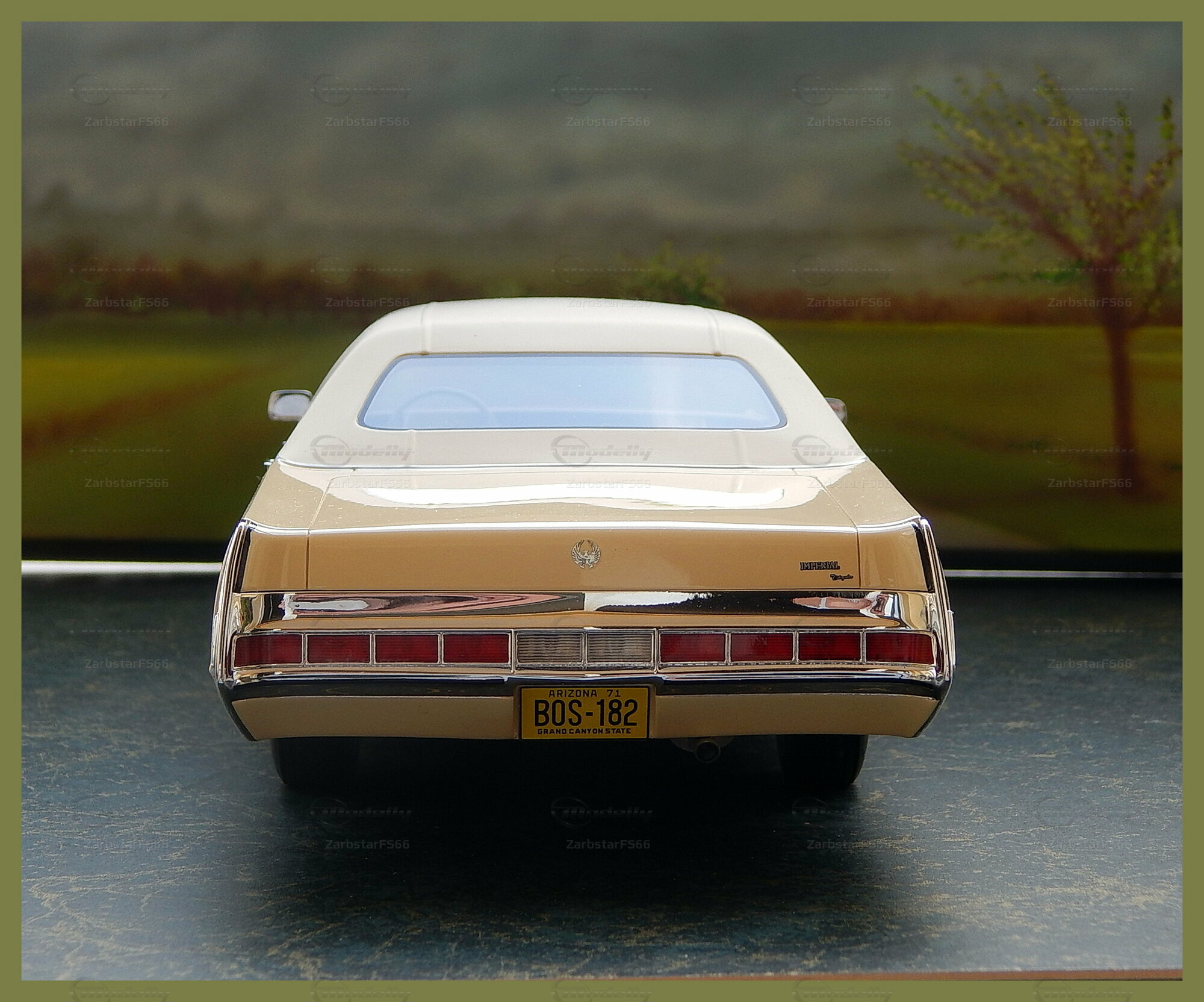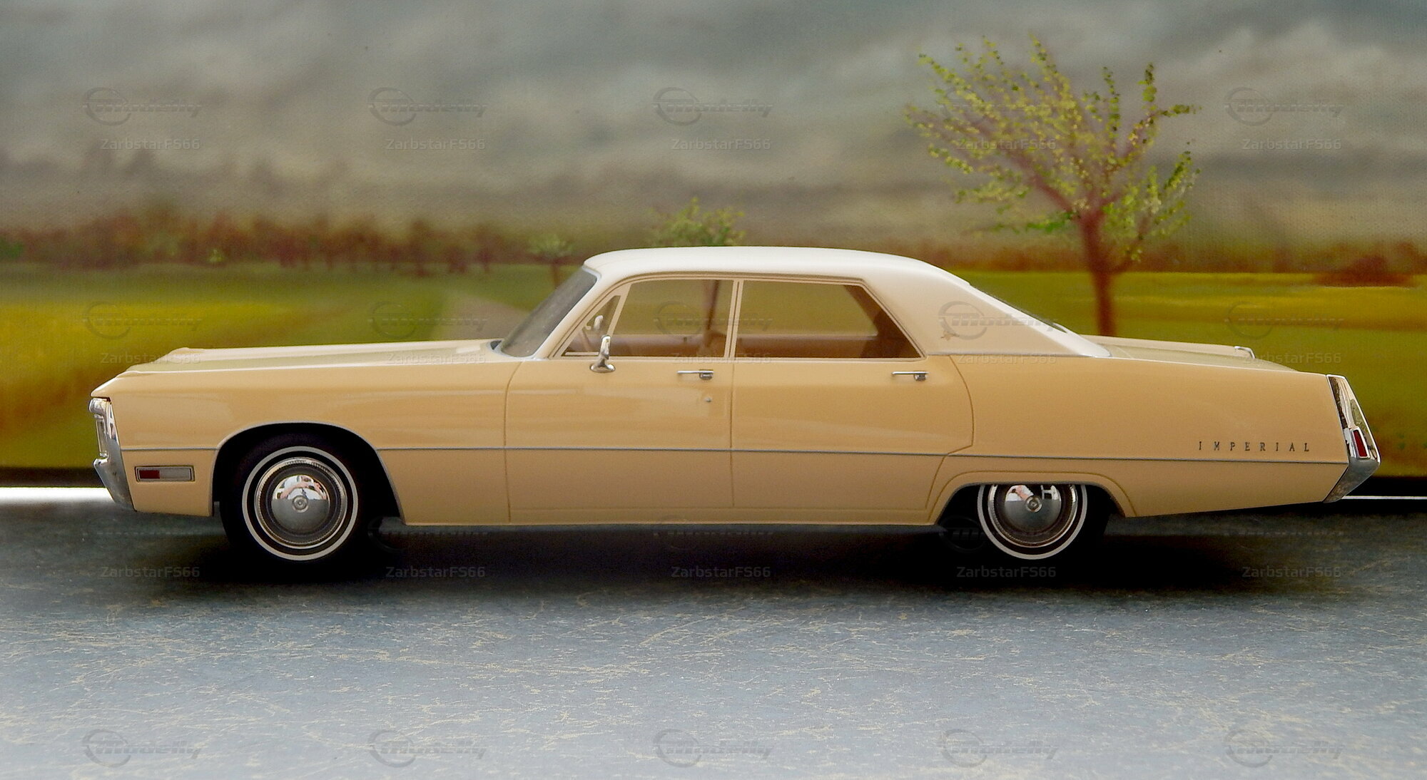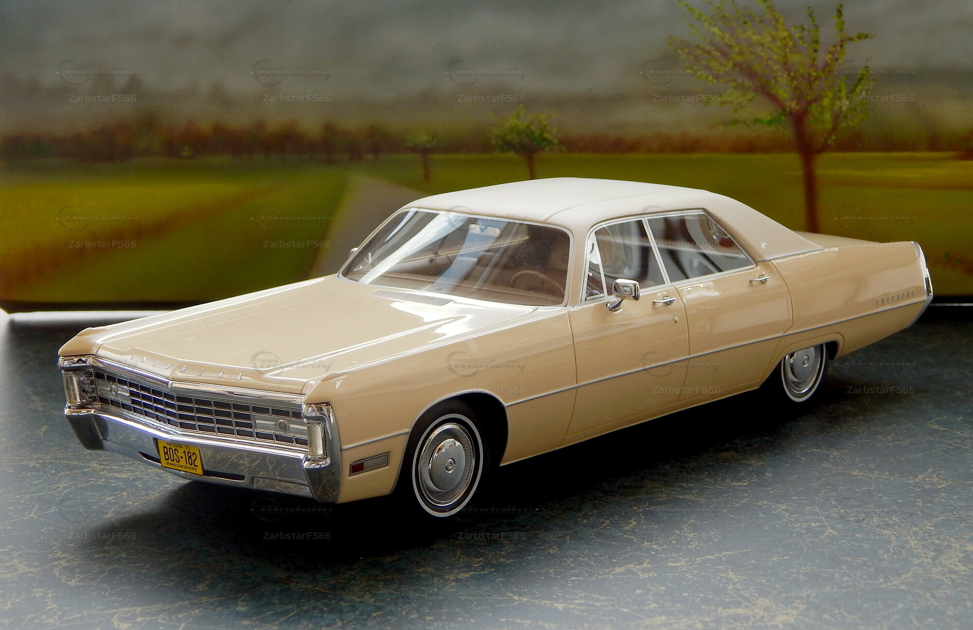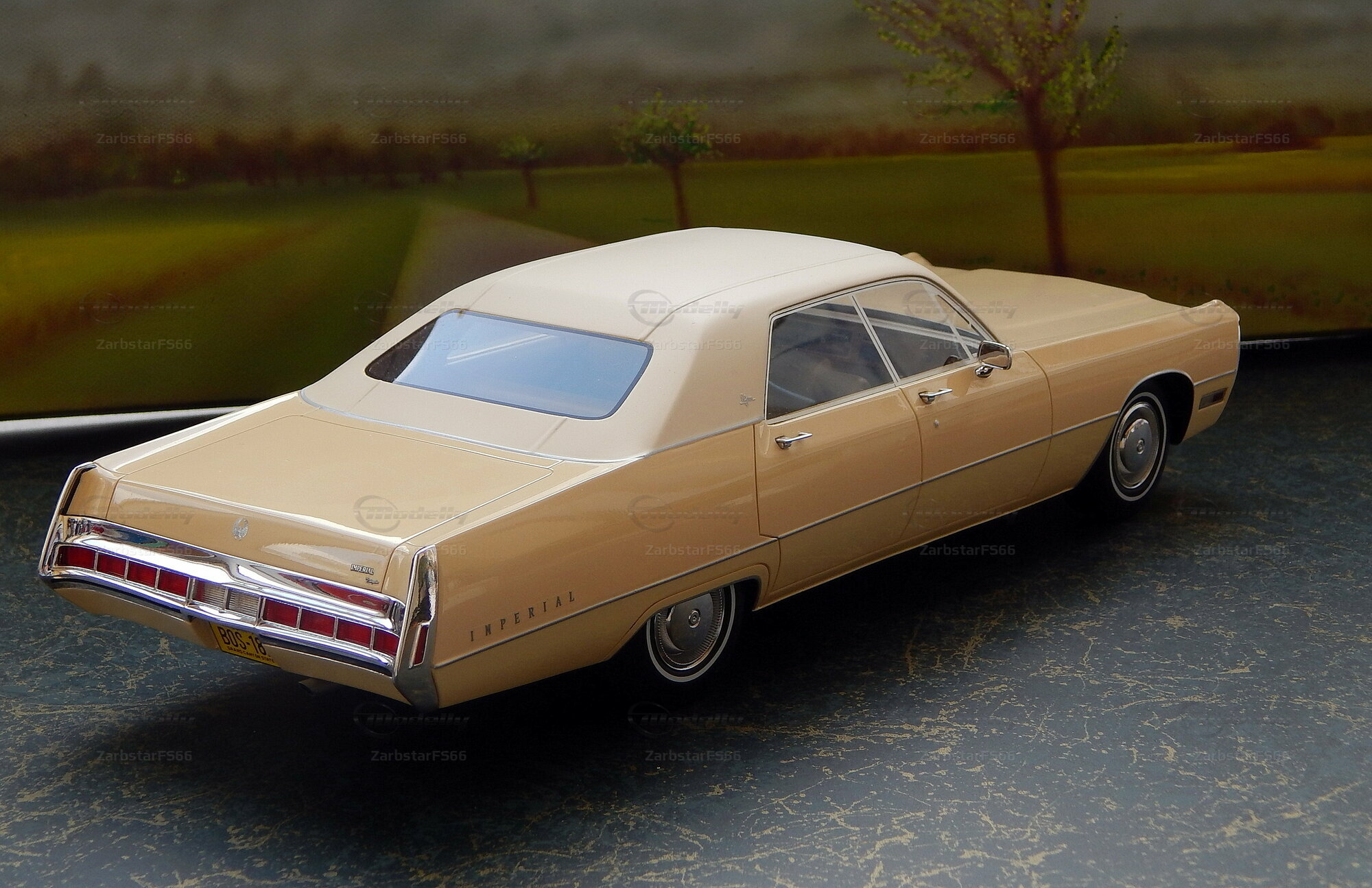 The collector-friendly miniature of the Imperial Le Baron Hardtop is a real eye-catcher. The paint in a subtle beige tone and the accurate reproduction of details like the distinctive chrome bumpers and the unmistakable front are particularly noteworthy. In the photos, you can see the detailed workmanship and high quality that BoS-Models puts into this miniature. The window frames, headlights, and mirrors are carefully modeled, giving the miniature an authentic look. The membership in Modelly by ZarbstarFS66 speaks to the seriousness and dedication of this collector.