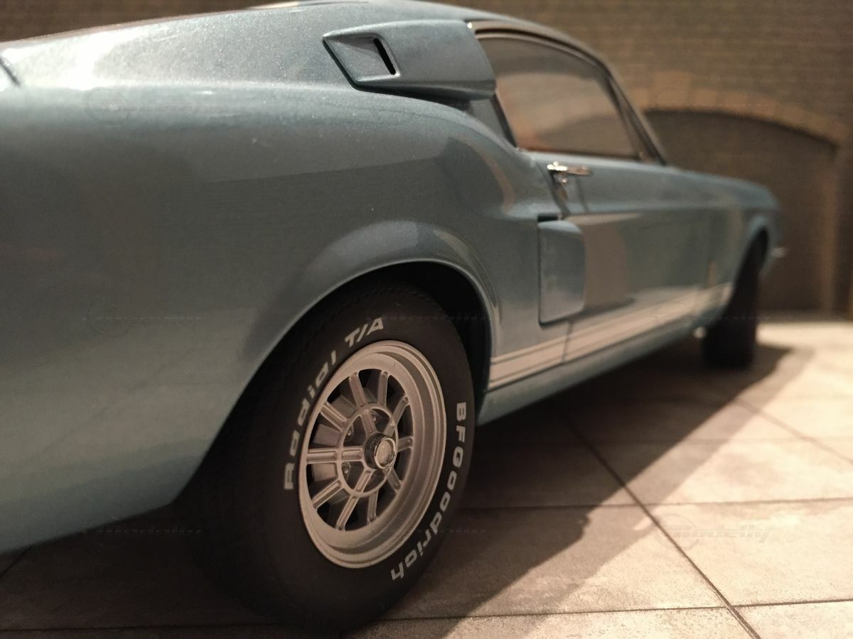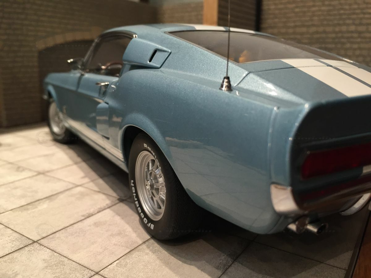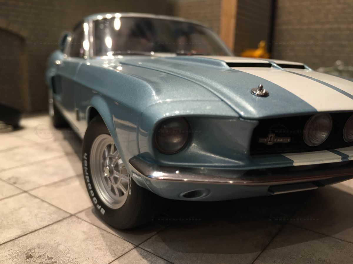 The scale model car in 1/18 scale by AUTOart Millennium is a true tribute to the classic Shelby GT500. With its meticulous craftsmanship, majestic paint finish, and finely crafted details, it is an essential piece for any model car collector. "Carjunky" showcases a true gem with this model, perfectly capturing the aesthetics and heritage of the original. A special Blue Metallic finish with dual white stripes across the body completes the picture of this masterpiece. The Shelby badges and lovingly replicated headlights enhance the authentic look of this model. For collectors worldwide, this model is not just a replica of a legendary car but also a work of art and a reminder of the golden era of muscle cars that captivated so many fans in the late 1960s.